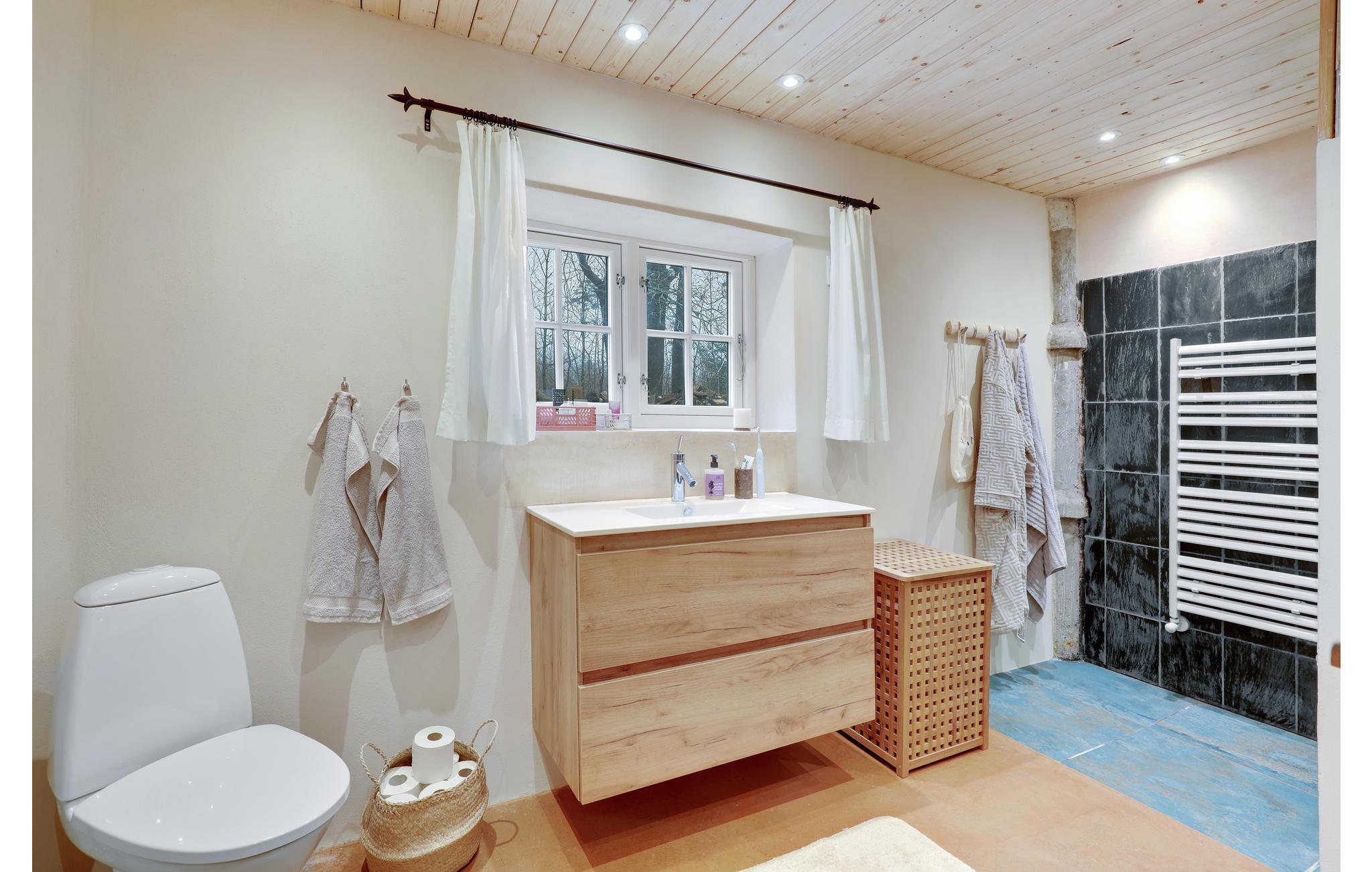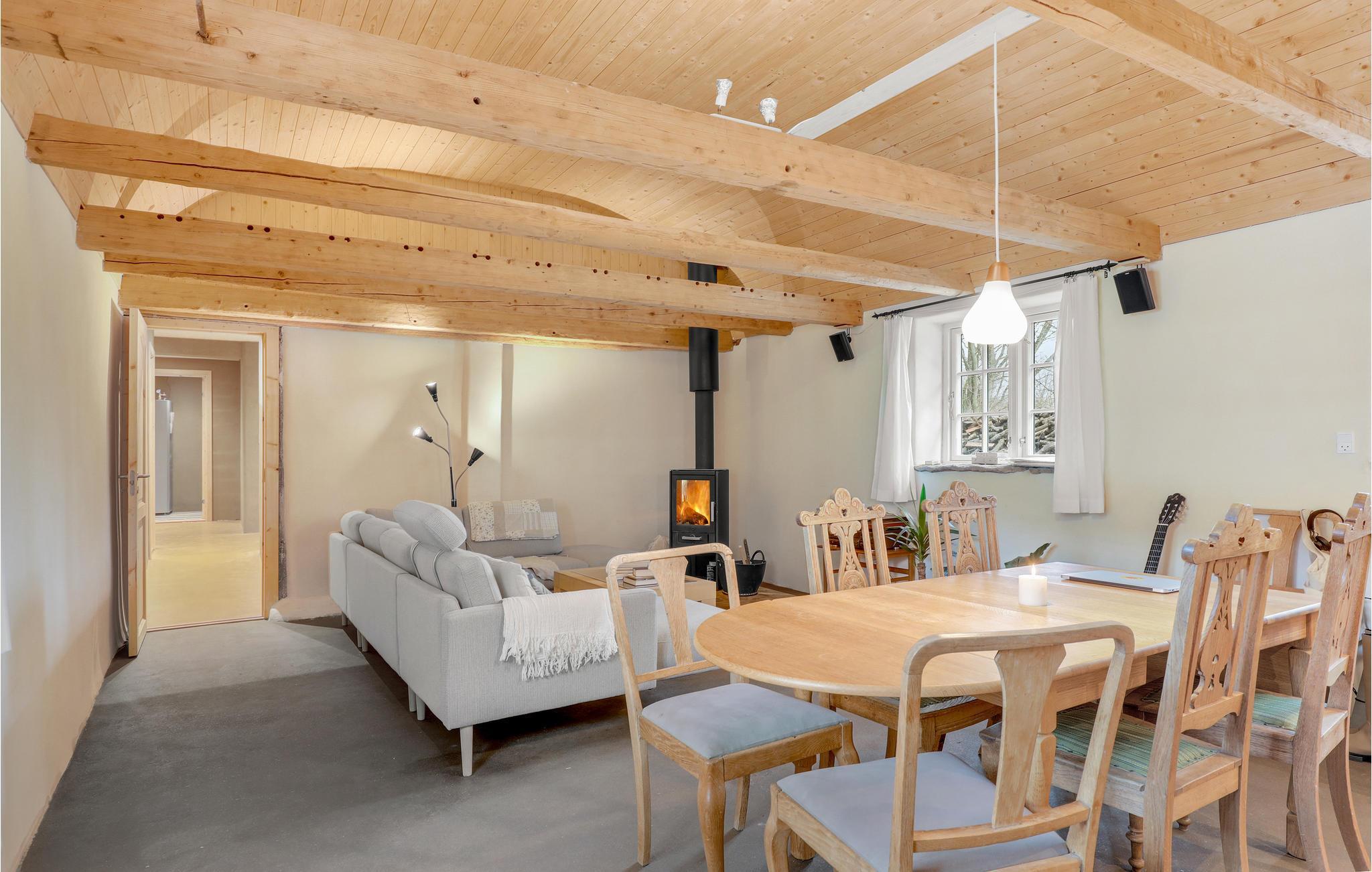 In einem ländlichen, naturschönen Gebiet finden Sie zwischen biologisch bewirtschafteten Feldern diese stimmnungsvolle Ferienwohnung. Beim Bau wurde nachhaltige Materialien von hoher Qualität verwendet. Diese rustikale, mit offener Sichtbalkendecke und Teppichboden ausgestattete Ferienwohnung bietet Ihnen eine gemütliche Atmosphäre für Ihren Urlaub auf Bornholm. Der Kaminofen und die Fußbodenheizung sorgen für eine wohlige Wärme, während Sie sich diversen Kartenspielen oder spannenden Unterhaltungen mit Ihren Liebsten widmen.