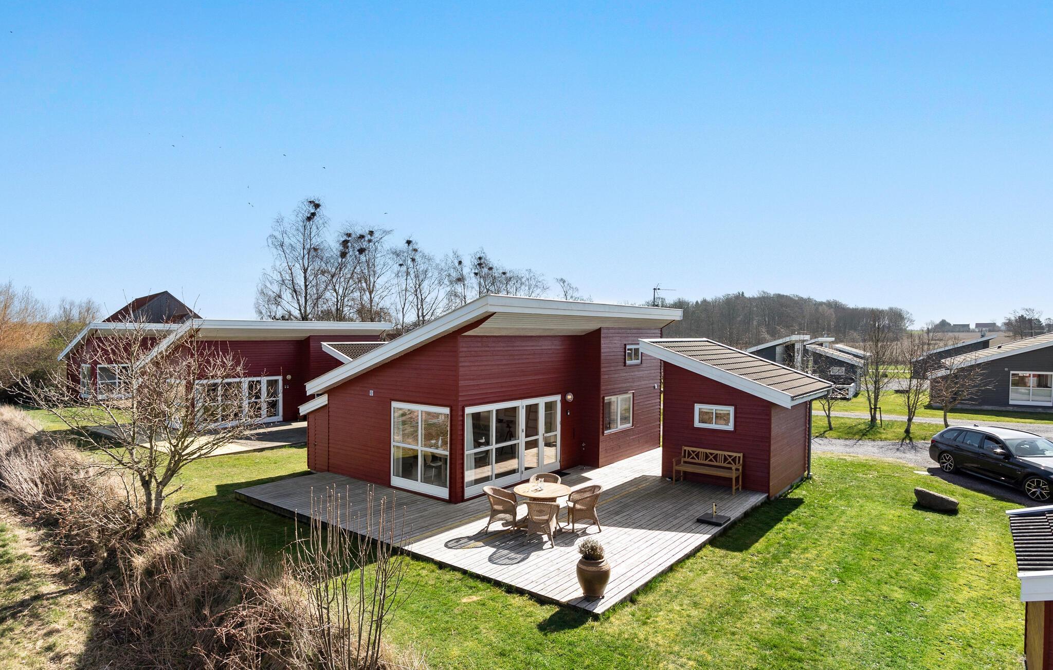 Modernes Ferienhaus in Rø mit direktem Zugang zu zwei Golfplätzen und schöner Terrasse mit grünem Blick.