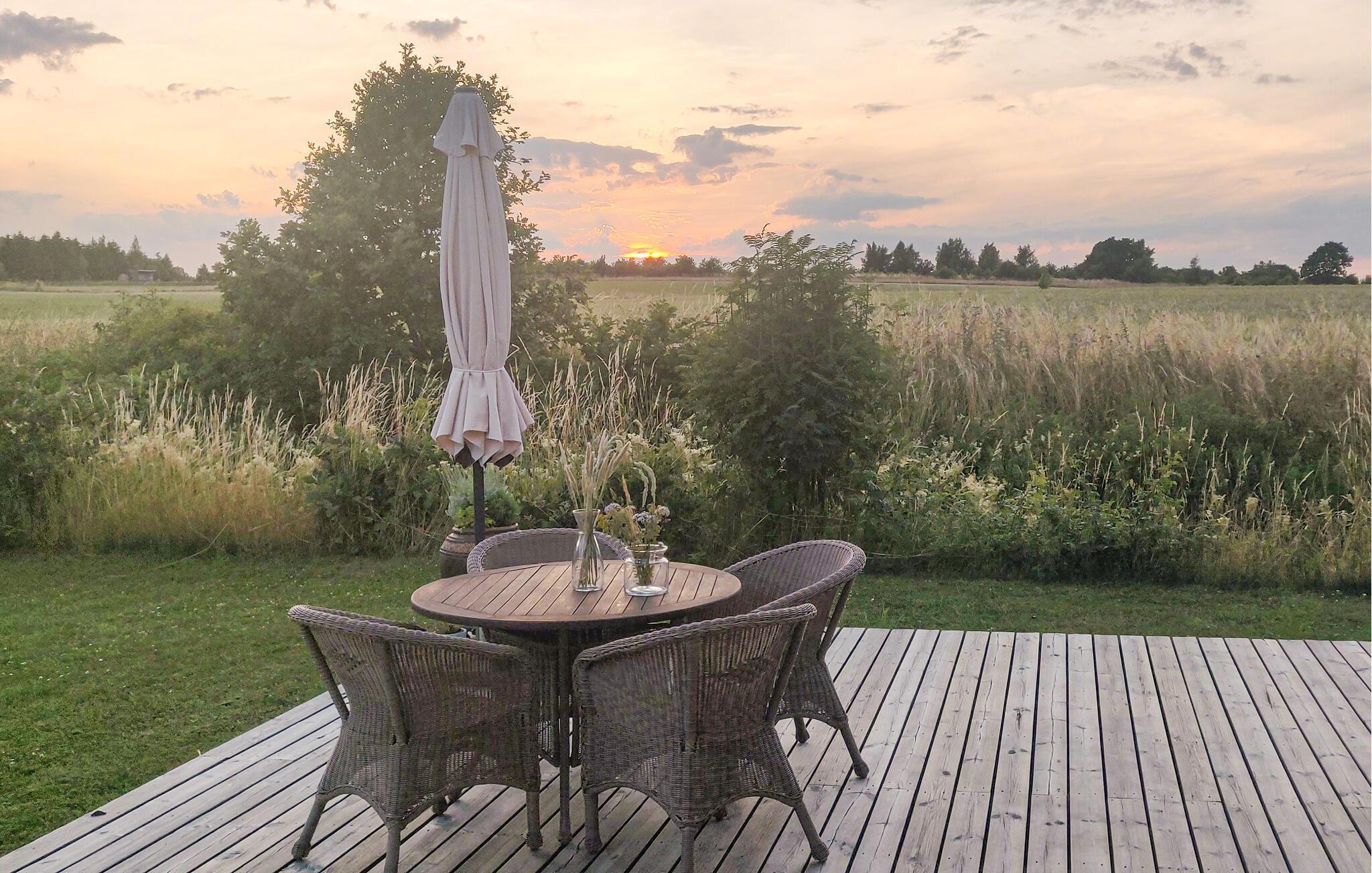 Nette und helle, skandinavische Einrichtung. Im Wohnzimmer können Sie Ihre Lieblingsserie per Chromecast streamen. Schöne und funktionelle kleine Küche. Nettes Badezimmer mit Fußbodenheizung. Der Schlafboden des Ferienhauses ist nur für Kinder berechnet. Schön große hölzerne Terrasse mit Blick auf grüne Gebiete und geeignet zum Sonnentanken und abends zur Gemütlichkeit. Separater Annex mit zwei Schlafplätzen.