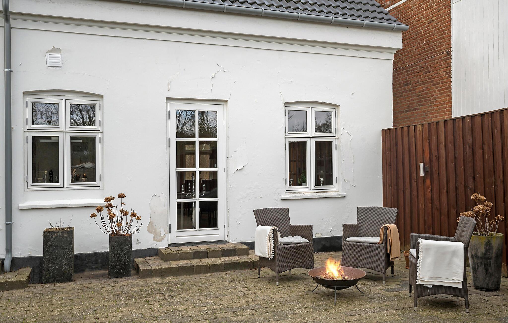 Der Außenbereich des Hauses ist ein echtes Highlight. Der geschlossene Innenhof mit gemütlichen Sitzgelegenheiten und einer Feuerstelle lädt zu entspannten Abenden ein. Ein überdachter Bereich bietet Schutz bei jedem Wetter, während der gepflegte Garten viel Platz für Kinder zum Spielen oder für ein gemütliches Frühstück im Freien bietet.