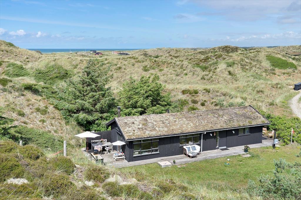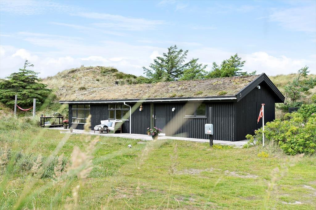 Mit seinem begrünten Dach verschmilzt das Urlaubsdomizil nahezu mit der Umgebung. Dies unterstreicht das wunderbare Gefühl, in und an diesem Haus eins mit der Natur zu sein. Vom Haus aus blicken Sie direkt auf den abwechslungsreichen Bewuchs der Dünen. Selbst wenn Sie es sich mit einem Gesellschaftsspiel am Esstisch gemütlich machen oder einen warmen Kakao vor dem Kaminofen genießen, stehen Sie in direktem Kontakt zur ganz besonderen Landschaft. Der stimmungsvolle Wohnraum ist offen mit der gut ausgestattete Küche verbunden. Zur Wohnfläche zählen darüber hinaus ein Badezimmer und drei Schlafräume, die allesamt ein Doppelbett beinhalten.