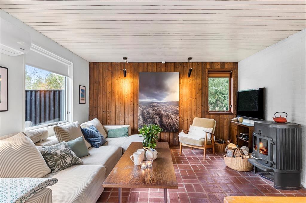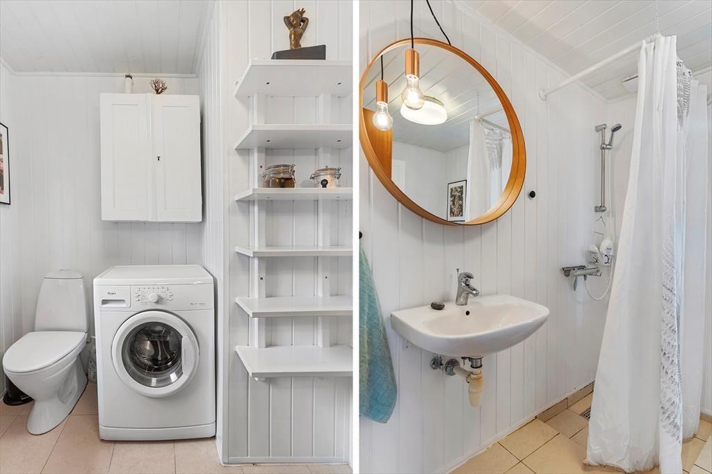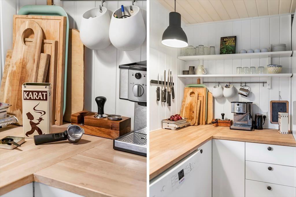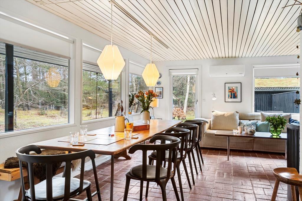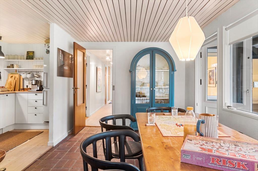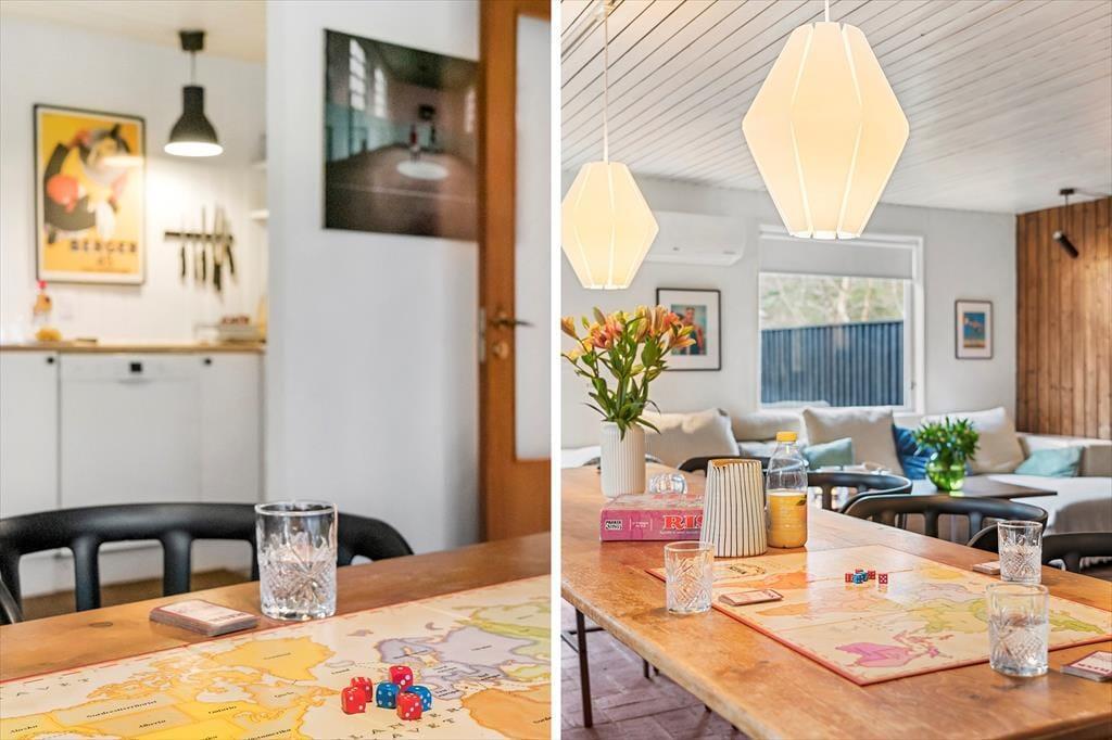 Das Haus ist in einem leicht romantischen Stil eingerichtet, enthält viele charmante Details und einen durchweg hohen Grad an Gemütlichkeit. Die Zimmer liegen praktisch in einem Hausteil, wo bis zu sieben Gäste schlafen können. Im selben Hausteil befinden sich das Badezimmer mit Dusche und Waschmaschine. Die Küche ist Mittelpunkt des Hauses und hat angrenzend einen langen Esstisch mit Stühlen und Bänken entlang der Fensterreihe . Dieser kann auch für Brettspiele, zum Malen und andere entspannende Aktivitäten im Haus genutzt werden. Etwas weiter von der Küche befindet sich das Wohnzimmer mit Couch, Kamin und Fernseher. Ein richtig gemütlicher Bereich zum gemeinsamen Erholen für die ganze Familie. Im Haus ist drahtloses Internet installiert, falls Sie einen Laptop oder das Tablet mitbringen wollen.