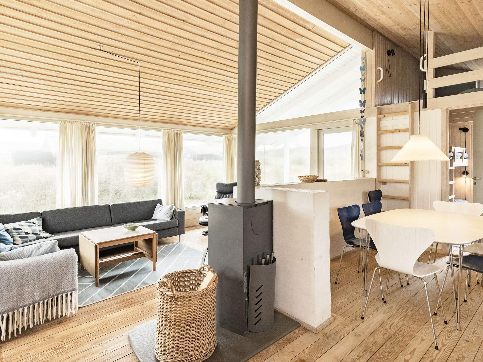 Hell und freundlich eingerichtetes Ferienhaus mit Whirlpool und Sauna im Bad. Liegt im beliebten Ferienhausgebiet Rødhus, nur 150 m vom Nordseestrand entfernt. Vom großen Dünengrundstück hat man Ausblick zur reizvollen Küstenlandschaft. Unweit liegt eine Plantage mit Wanderpfaden durch die grüne Natur.