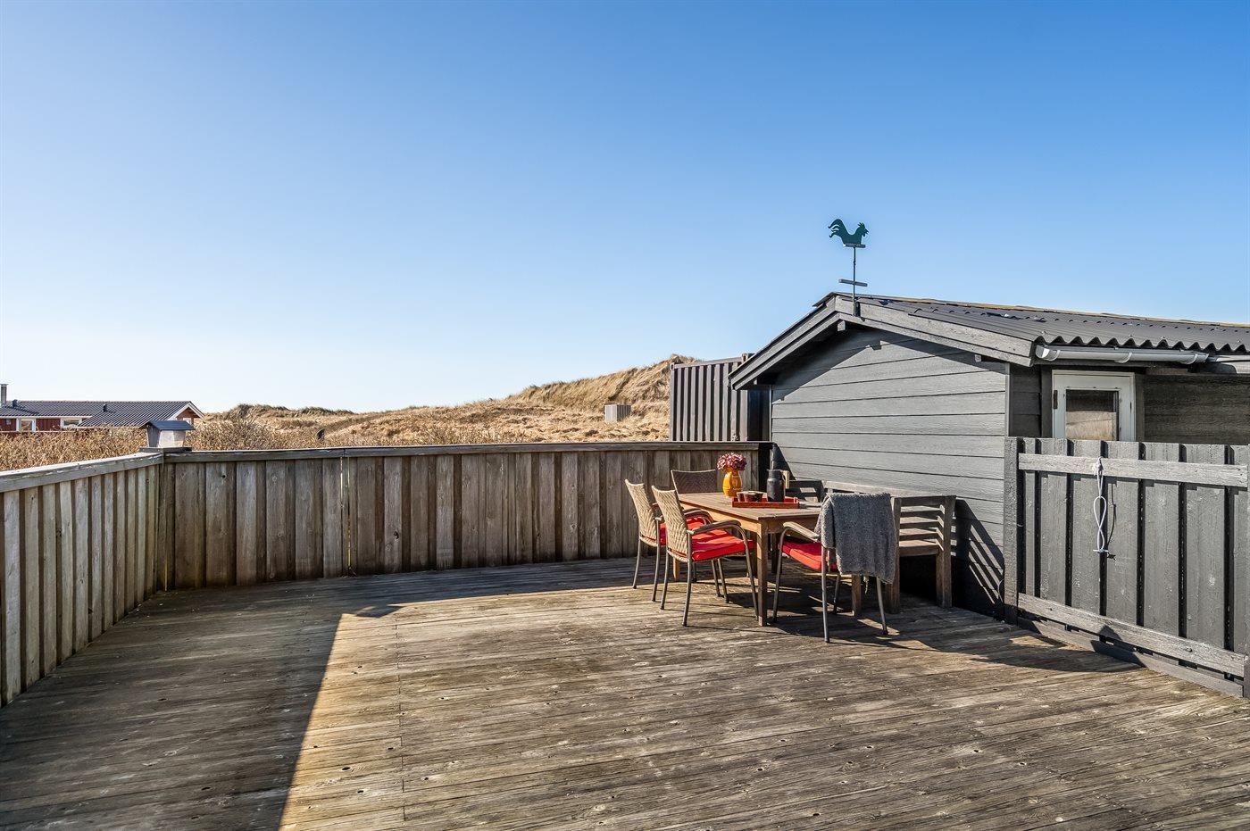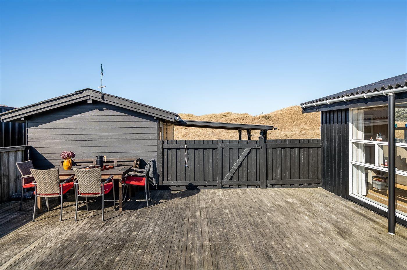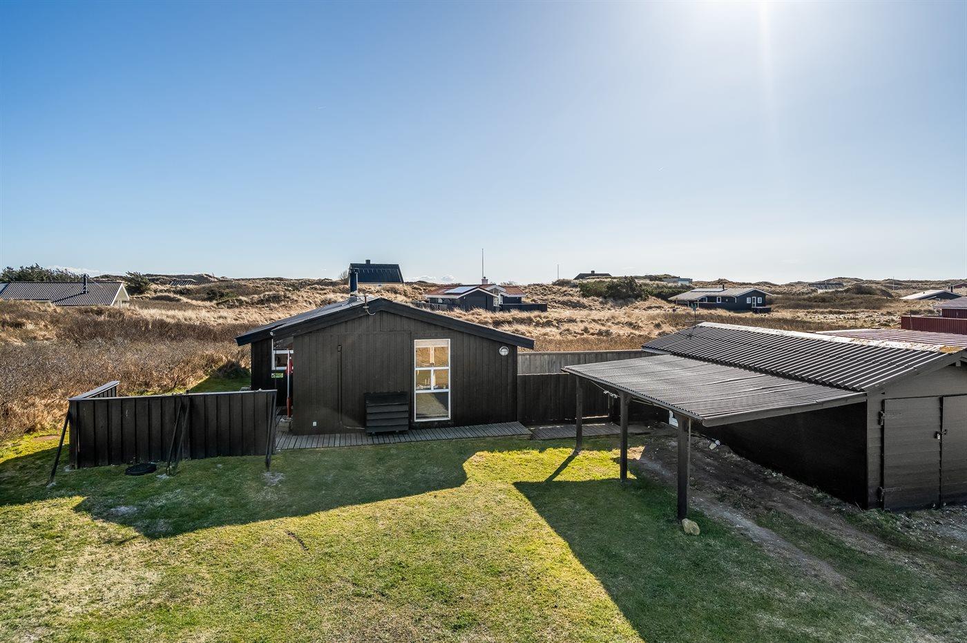 Die Ferienunterkunft liegt auf einem 2500 m² großen Dünengrundstück. Die Entfernung zum Meer beträgt 150 m. Die nächste Einkaufsmöglichkeit liegt 6000 m entfernt. In einem Abstand von 6000 m gibt es einen Golfplatz. Es steht ein offenes Terrassenareal zur Verfügung. Außendusche. Parkplatz auf dem Grundstück.