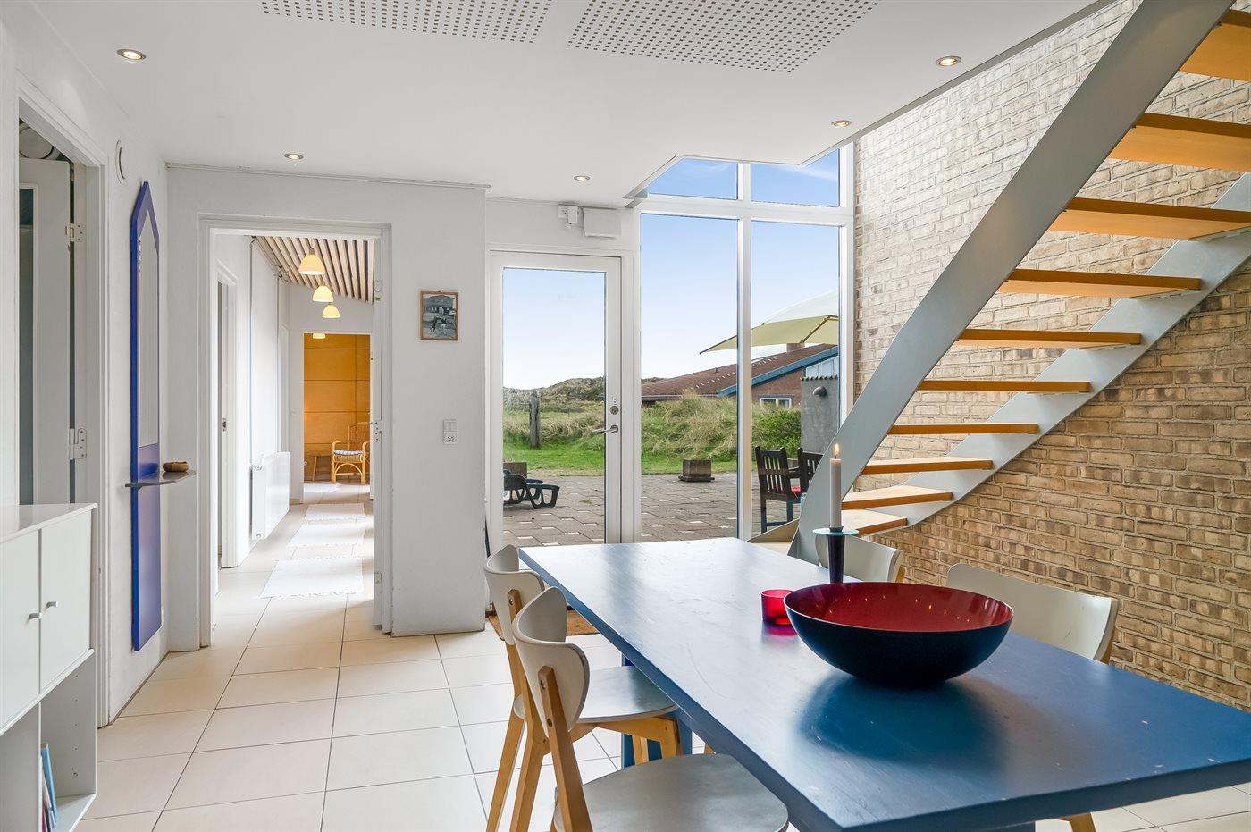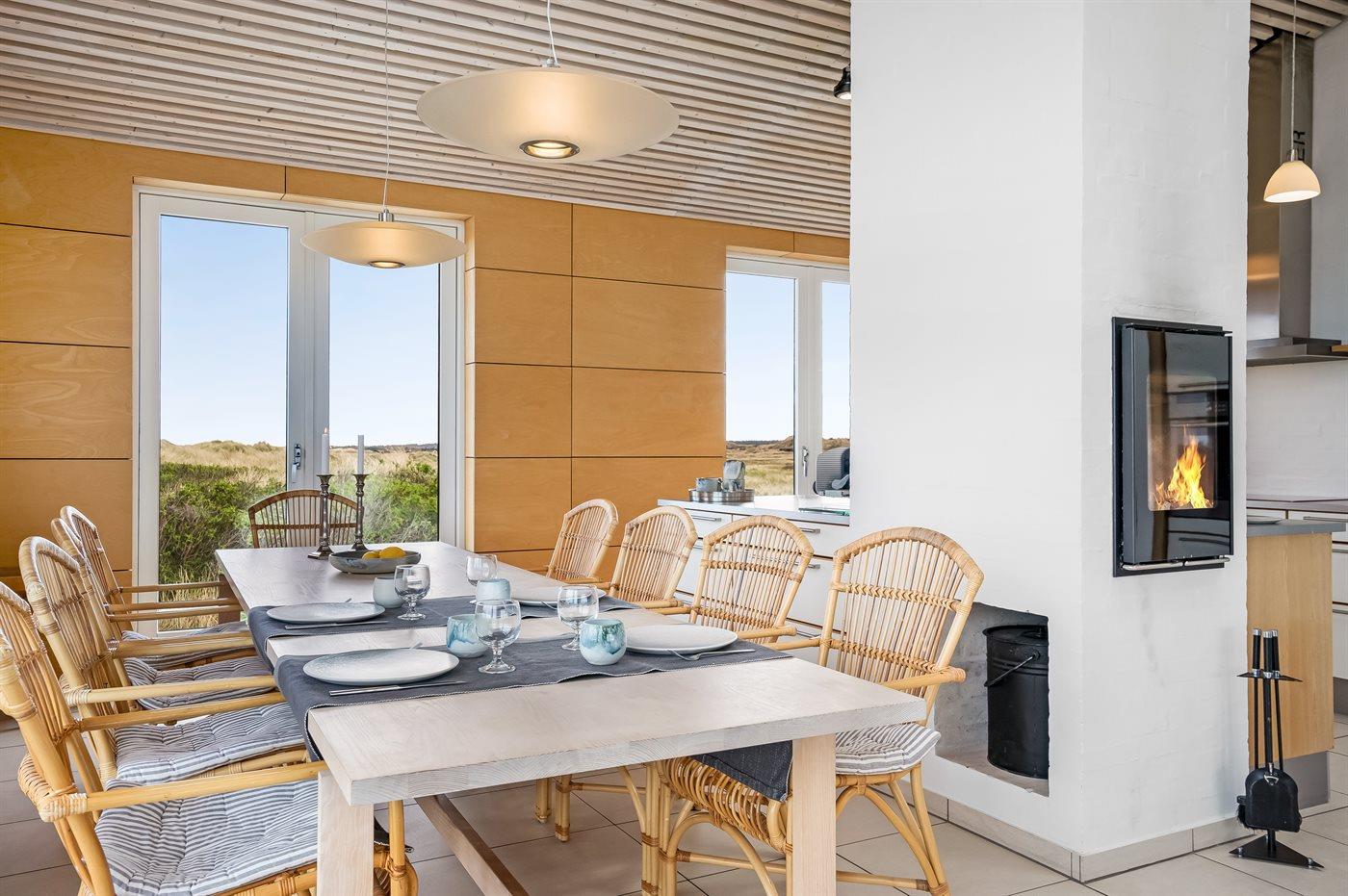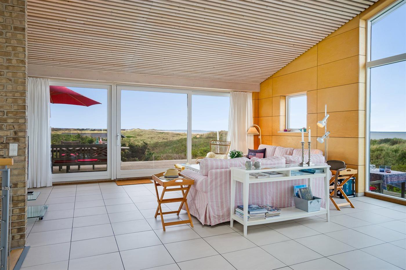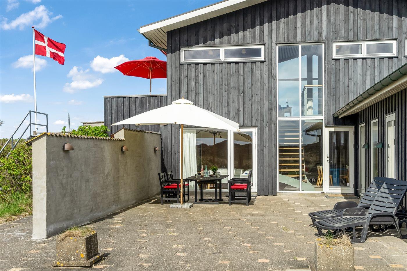 Dieses herrliche Ferienhaus in 2 Etagen gebaut liegt auf einem sehr großen Dünengrundstück nur 50 m vom Strand entfernt und mit einer einmaligen Panoramaaussicht auf Rubjerg Knude Richtung Norden und Bulbjerg Richtung Süden. Das Haus ist 2009 völlig renoviert und erscheint wie neu. Zum Haus gehört eine großes Terrassenareal mit Gartenmöbeln von hier können Sie die herrliche Aussicht in vollen Zügen genießen. Innen gibt es beheizbare Klinkerböden. 2 schöne Badezimmer, beide mit Duschnische. Im Obergeschoss finden Sie die herrliche Küche, die u. a. mit Geschirrspüler, amerikanischen Kühlschrank mit Eiswürfelmaschine und Tiefkühlgerät sowie Umluftofen und Herd mit Ceran-Feld ausgestattet ist. Das geschmackvoll eingerichtete Wohnzimmer mit Kaminofen, Stereoanlage mit CD-Spieler, DVD-Spieler und TV sowie 1 Schlafzimmer mit Doppelbett. Im Erdgeschoss gibt es ein Wohnzimmer/Aktivitätsraum mit Kaminofen und mehrere Spiele sowie 3 Schlafzimmer, alle mit Doppelbett. An weiterer Ausstattung können Waschmaschine, Wäschetrockner, extra Kühlschrank und Tiefkühlgerät, Kinderbett und Kinderhochstuhl erwähnt werden. Es steht kabellose Internetverbindung zur Verfügung. Das Haus ist gut isoliert und es ist eine Wärmezurückgewinnungs-Anlage installiert. Ein herrliches Ferienhaus mit einer phantastischen und ganz einmaligen Lage für einen schönen und entspannenden Urlaub zu jeder Jahreszeit geeignet. Das Haus liegt ca. 8 km von einem 18-Loch Golfplatz entfernt.