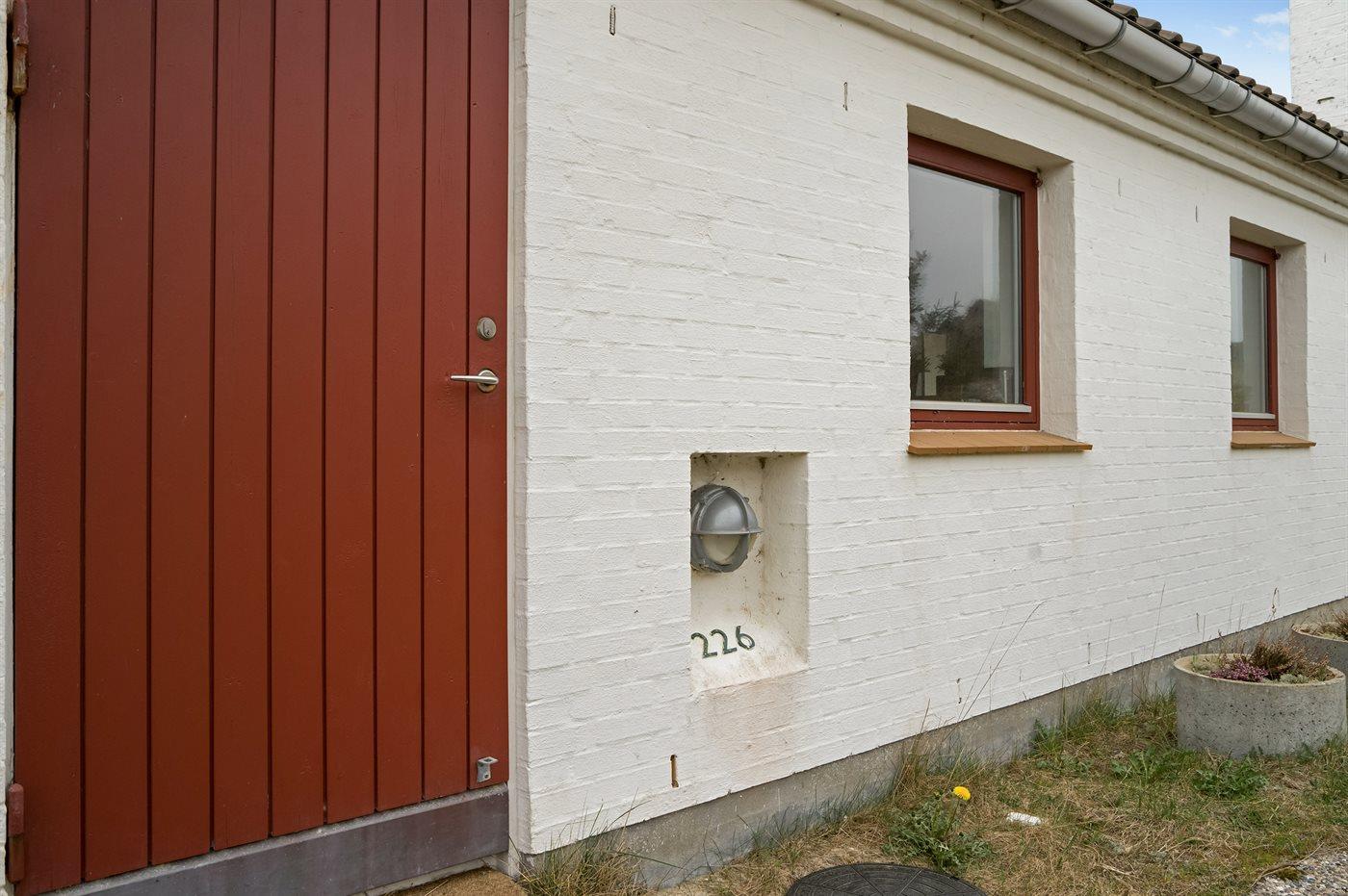 Die Ferienunterkunft liegt auf einem 130 m² großen Dünengrundstück.Naturgrundstück. Das Grundstück ist eingezäunt. Die Entfernung zum Meer beträgt 400 m. Die nächste Einkaufsmöglichkeit liegt 7000 m entfernt. Es steht ein 45 m² Terrassenareal zur Verfügung. Davon insgesamt 45 m² geschlossene Terrasse. Parkplatz auf dem Grundstück.