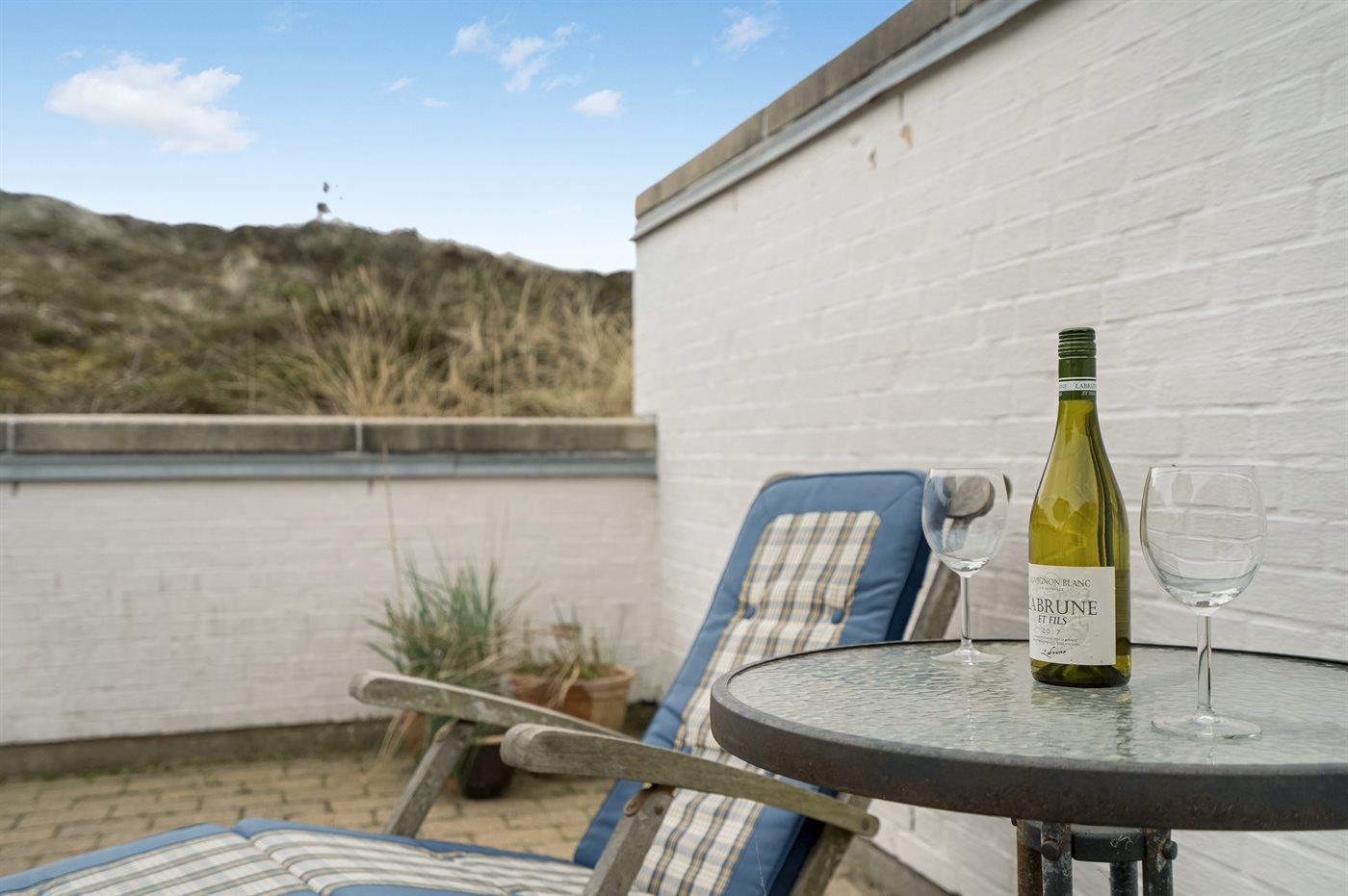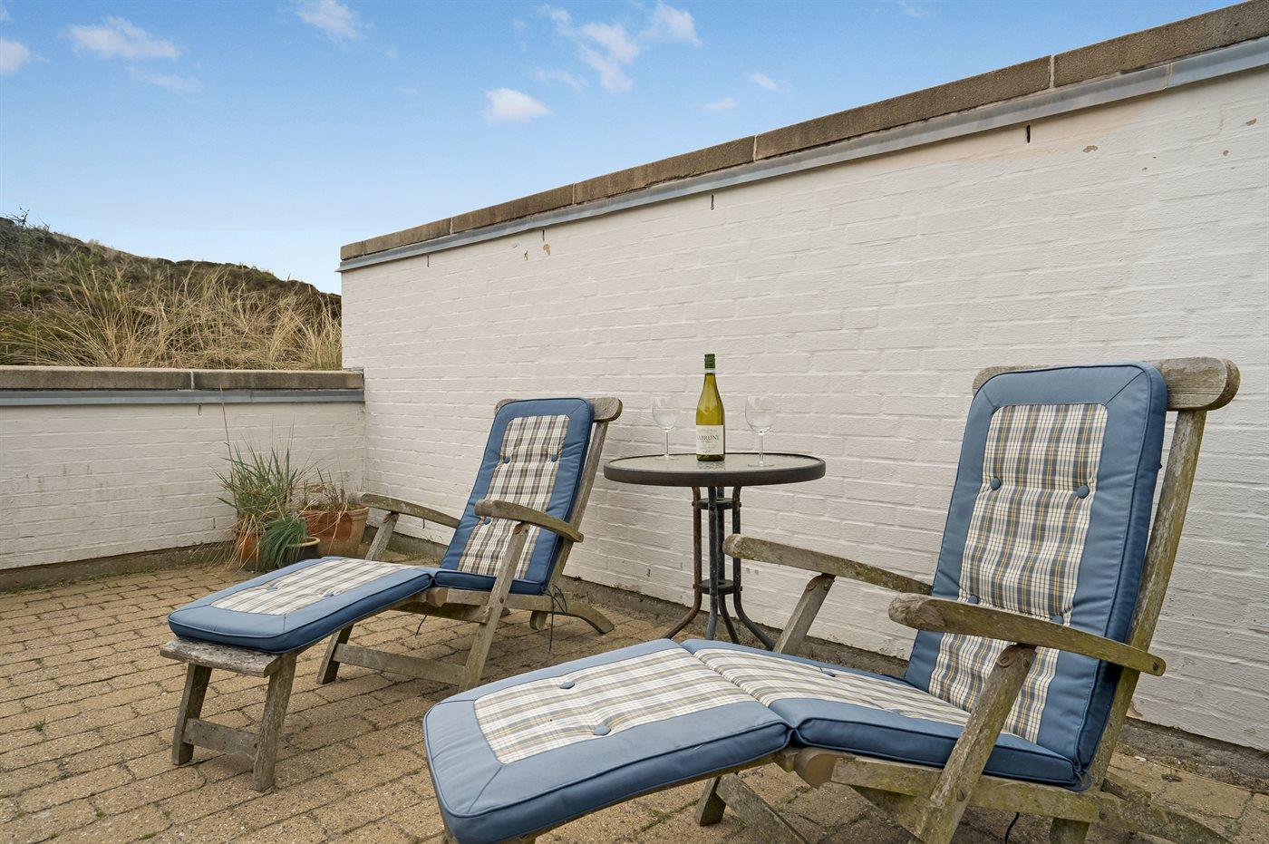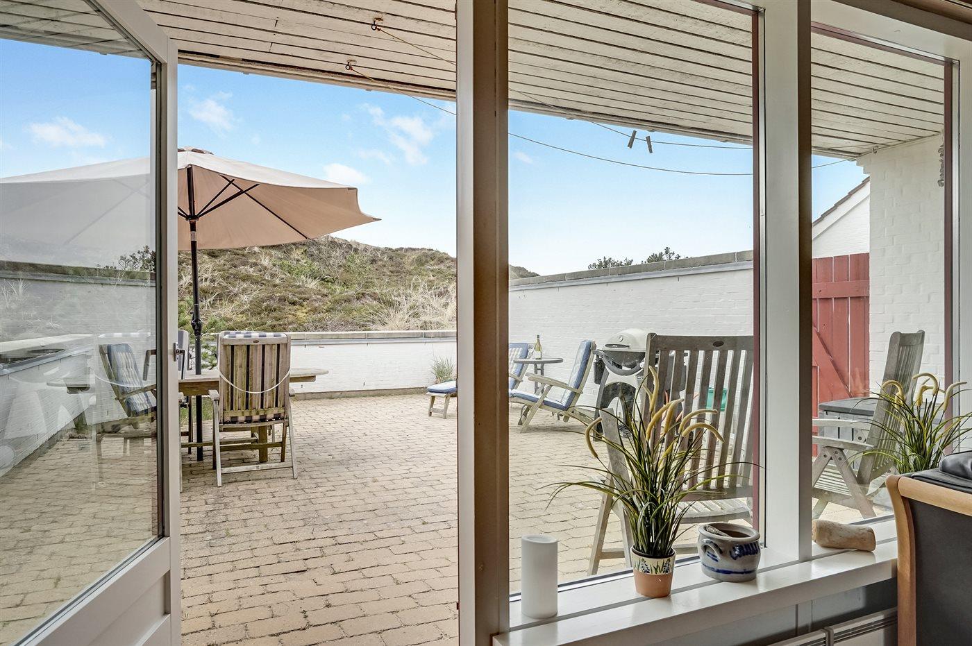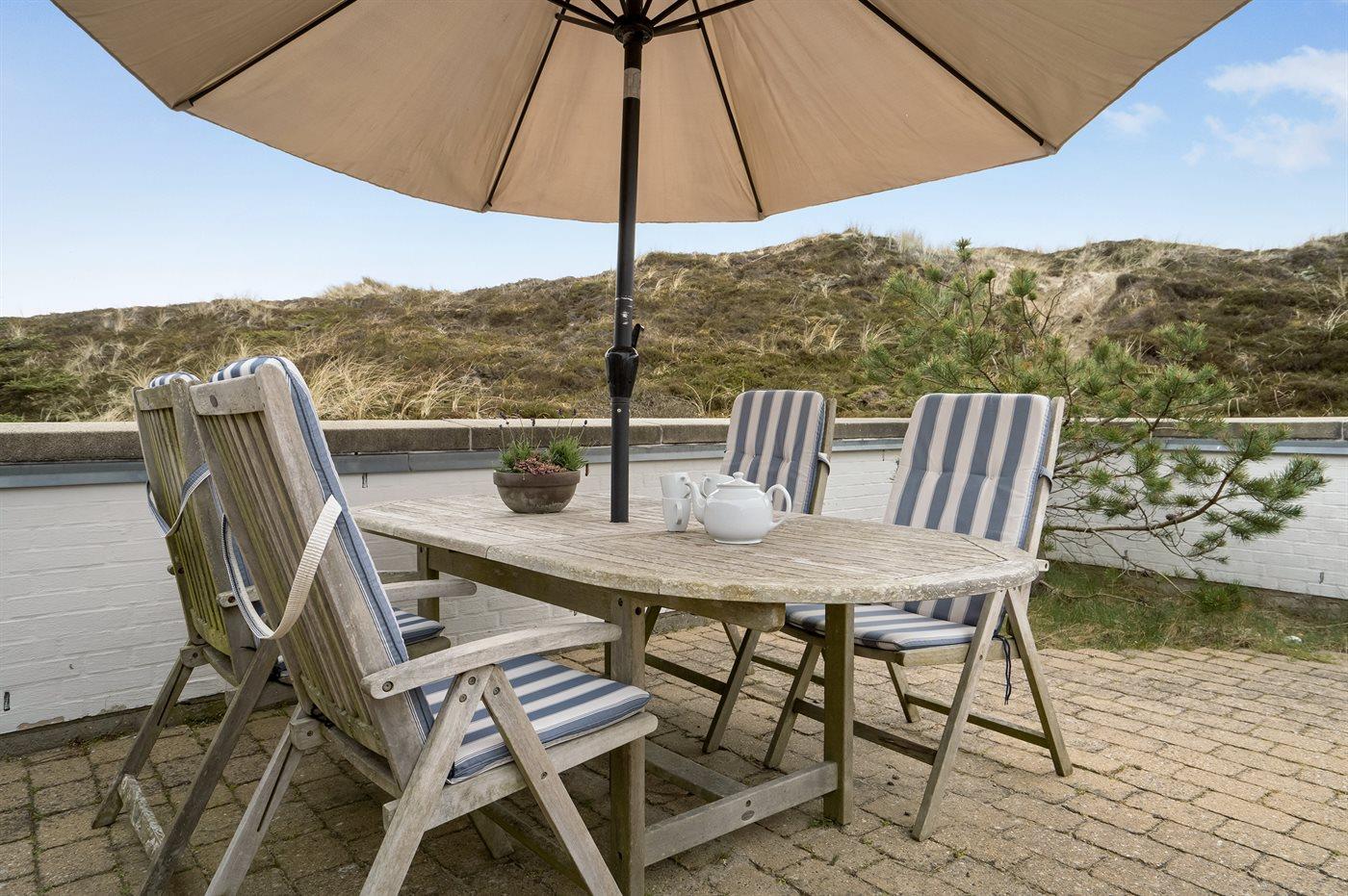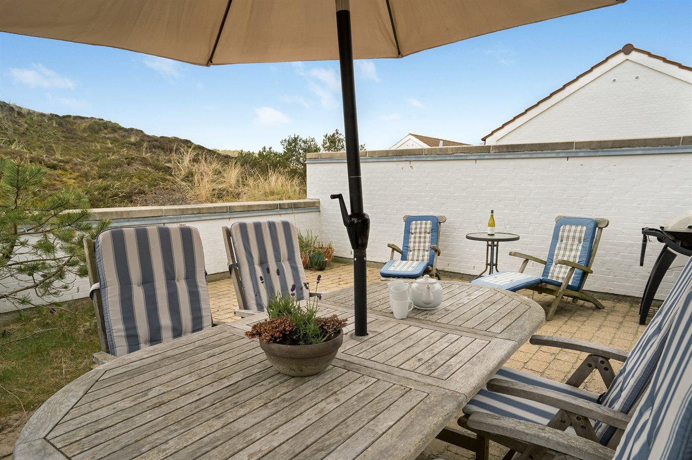 Diese geräumige Ferienwohnung liegt in einem Ferienresort, welches in naturschöner Umgebung, direkt hinter den Dünen an der Nordsee liegt. Da die Wohnung am Rande des Ferienresorts liegt, haben Sie einen schönen Ausblick auf die umliegenden hohen Dünen von sowohl der Wohnung als auch der Terrasse aus. Vom höchsten Punkt der Düne die nah an der Wohnung liegt haben Sie Aussicht auf das Meer. Im Resort steht ein gemeinsamer Spielplatz zur Verfügung.