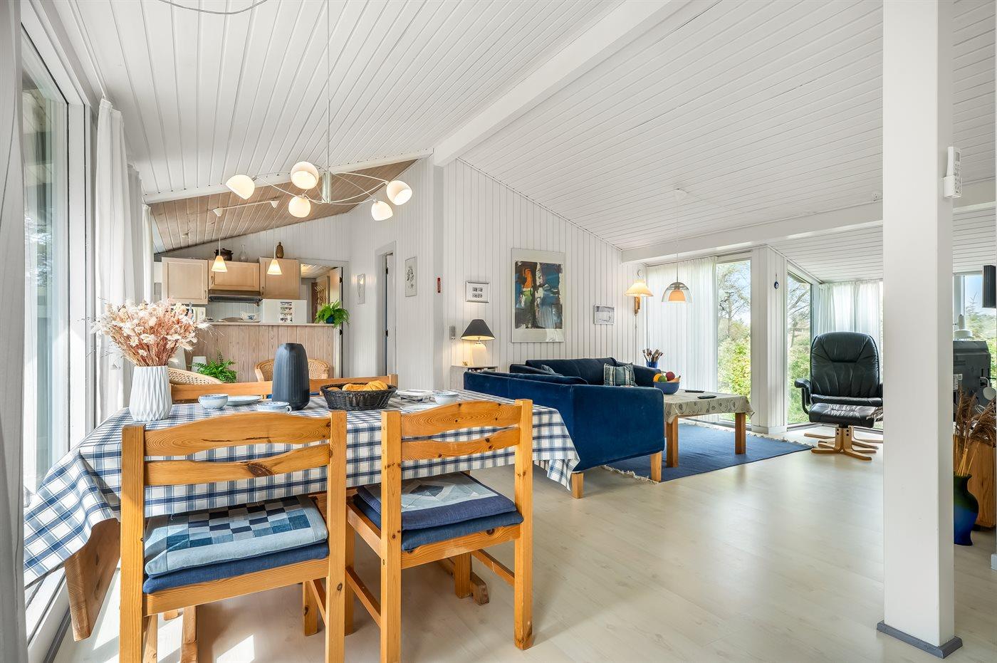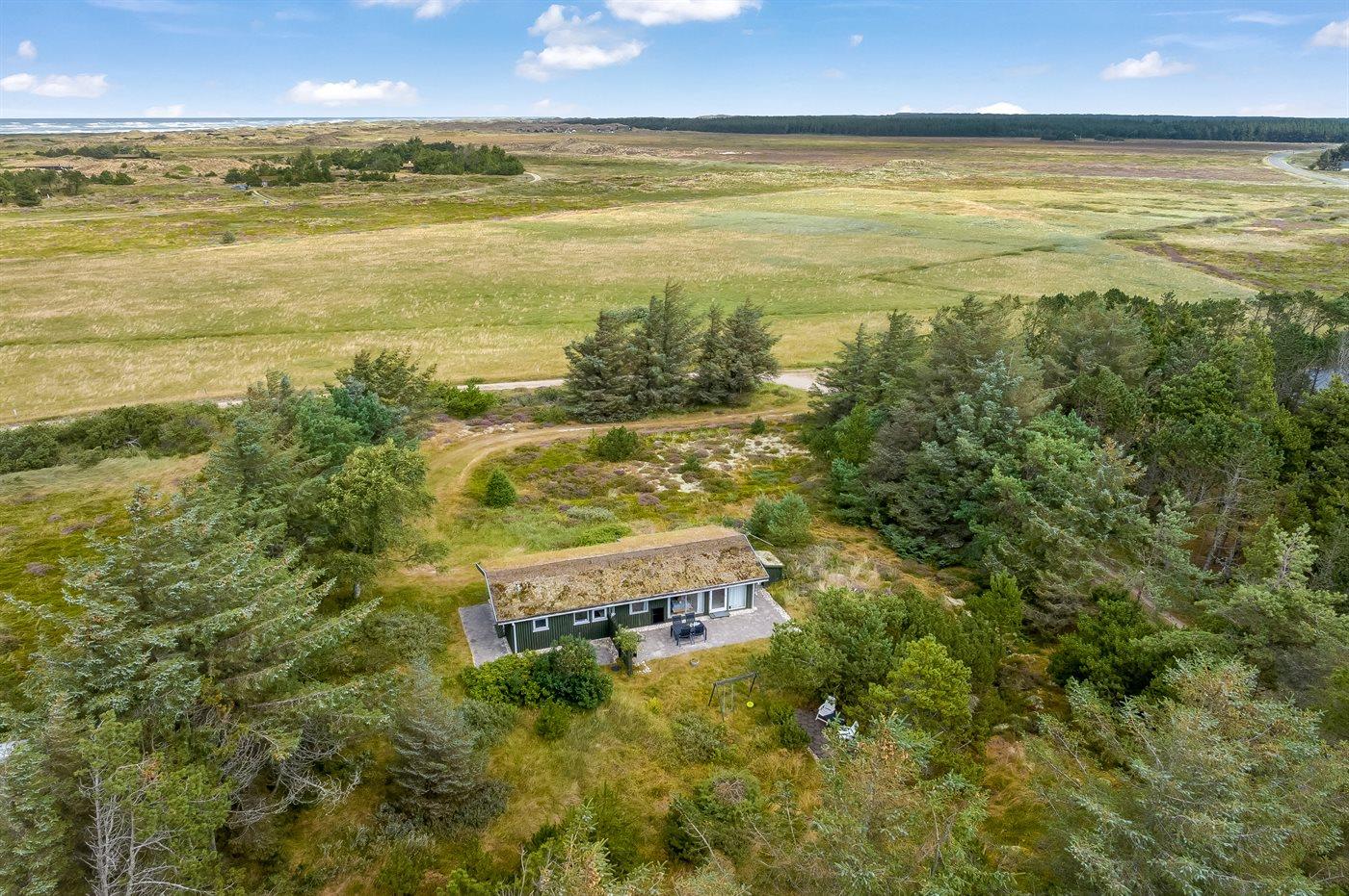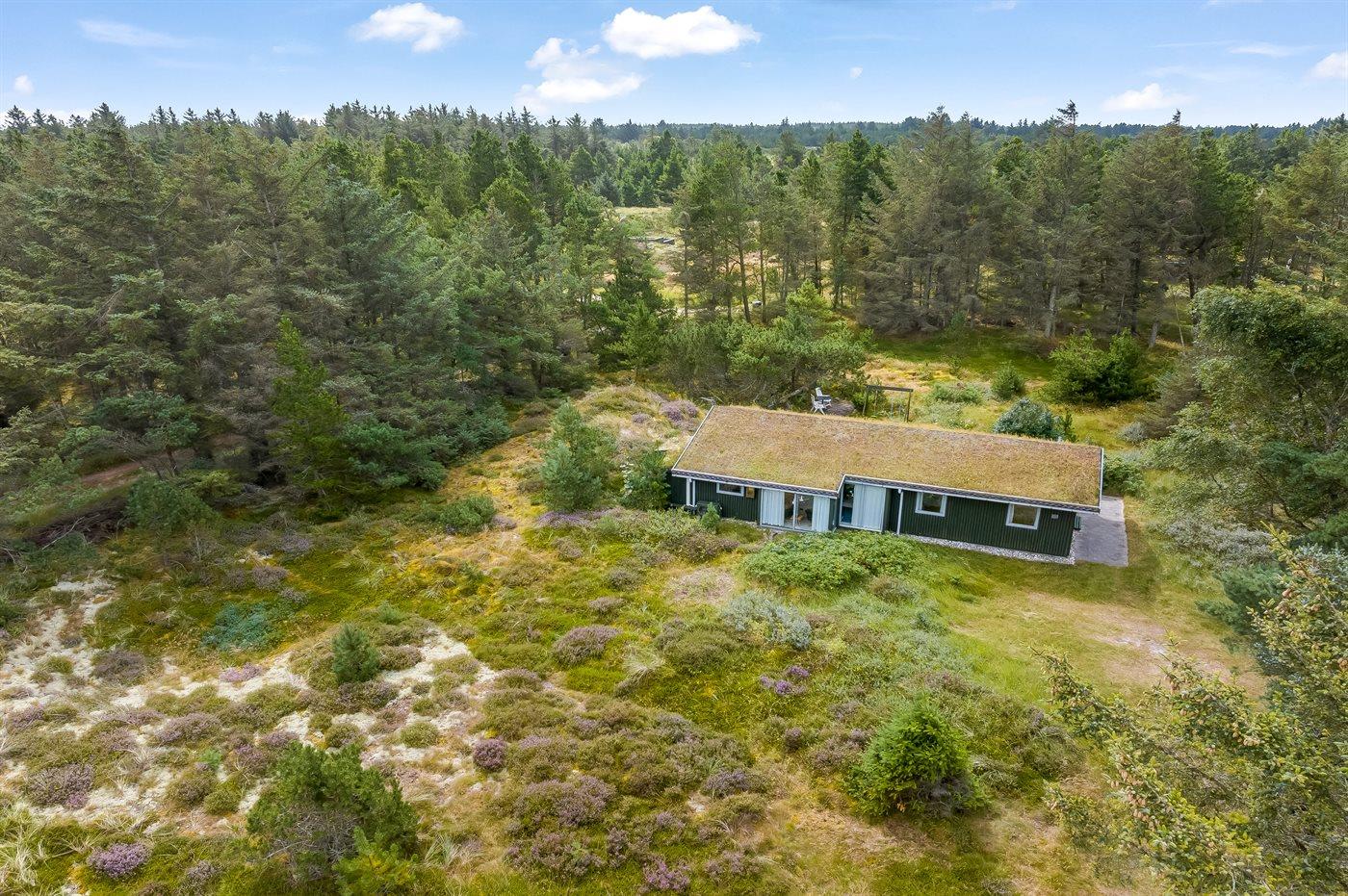 Träumst du von Frieden, Ruhe und echter Naturidylle, ist dieses charmante Ferienhaus die perfekte Wahl. Das Haus liegt völlig ungestört auf einem großen Naturgrundstück, wo du die Stille und das Wildleben direkt vor der Tür genießen kannst. Hier hast du reichlich Gelegenheit, dich zu entspannen, dem Vogelgesang zu lauschen und die Natur aus nächster Nähe zu erleben.