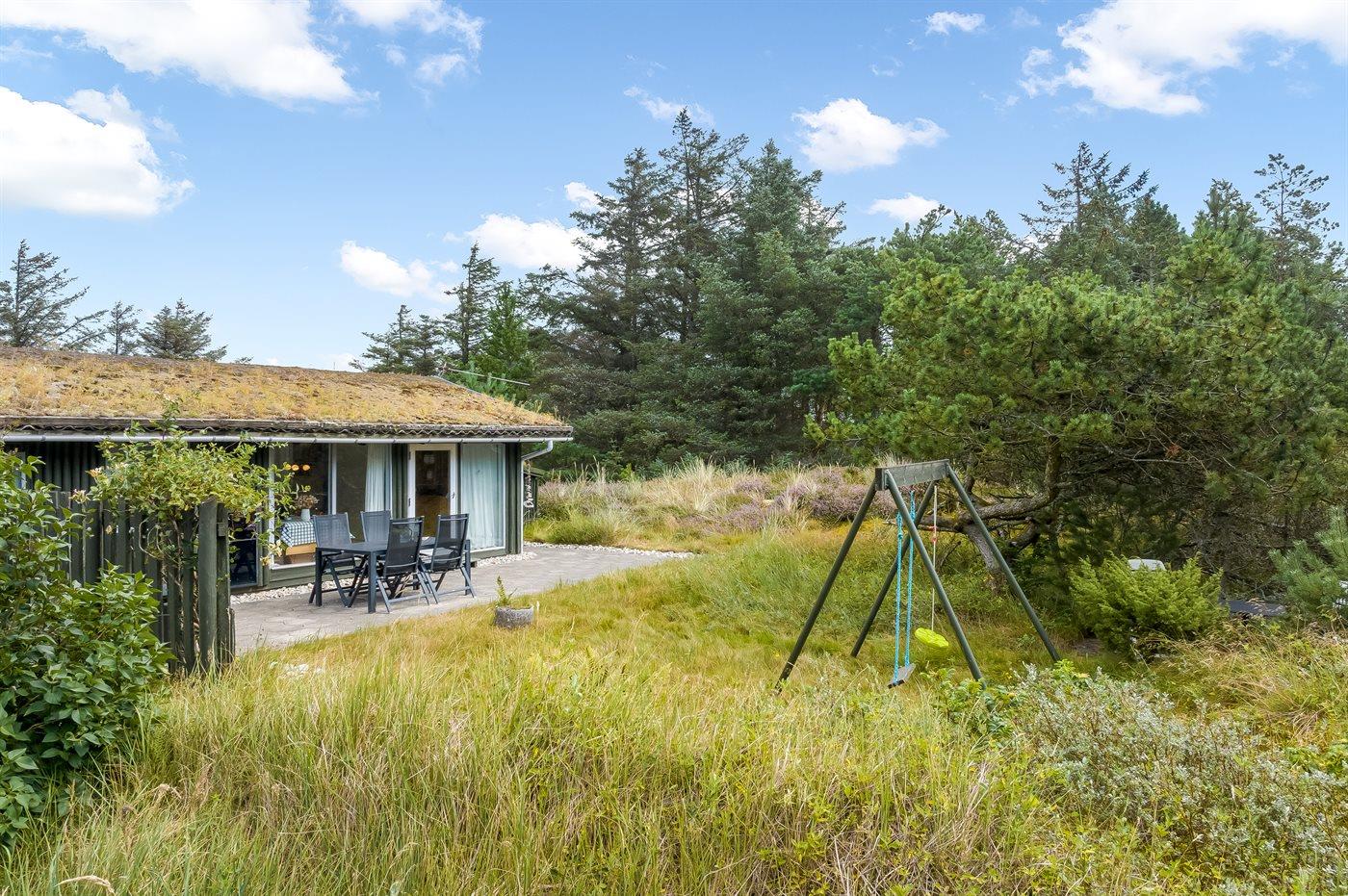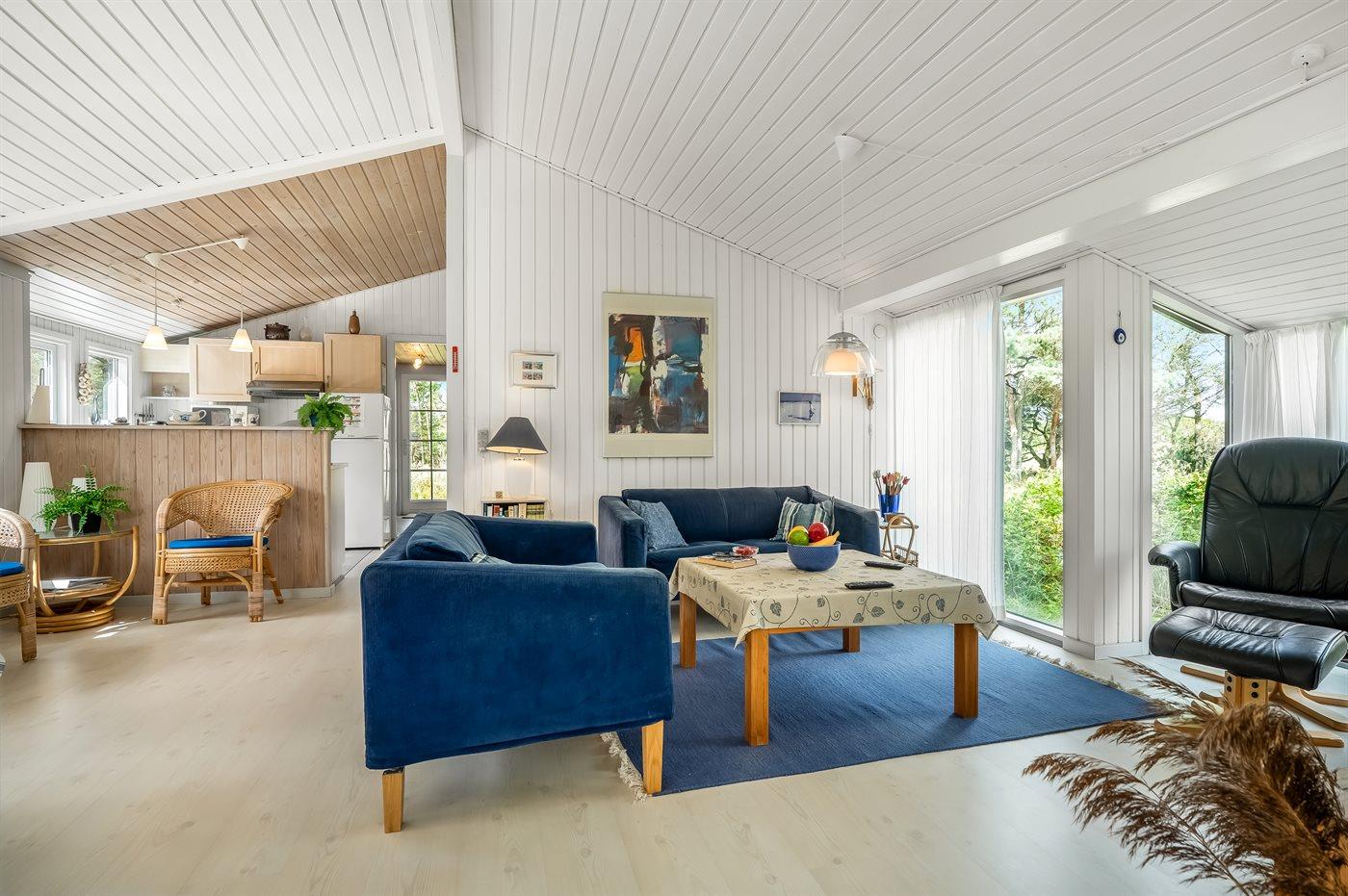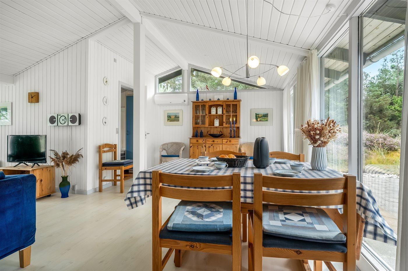 Träumst du von Frieden, Ruhe und echter Naturidylle, ist dieses charmante Ferienhaus die perfekte Wahl. Das Haus liegt völlig ungestört auf einem großen Naturgrundstück, wo du die Stille und das Wildleben direkt vor der Tür genießen kannst. Hier hast du reichlich Gelegenheit, dich zu entspannen, dem Vogelgesang zu lauschen und die Natur aus nächster Nähe zu erleben.