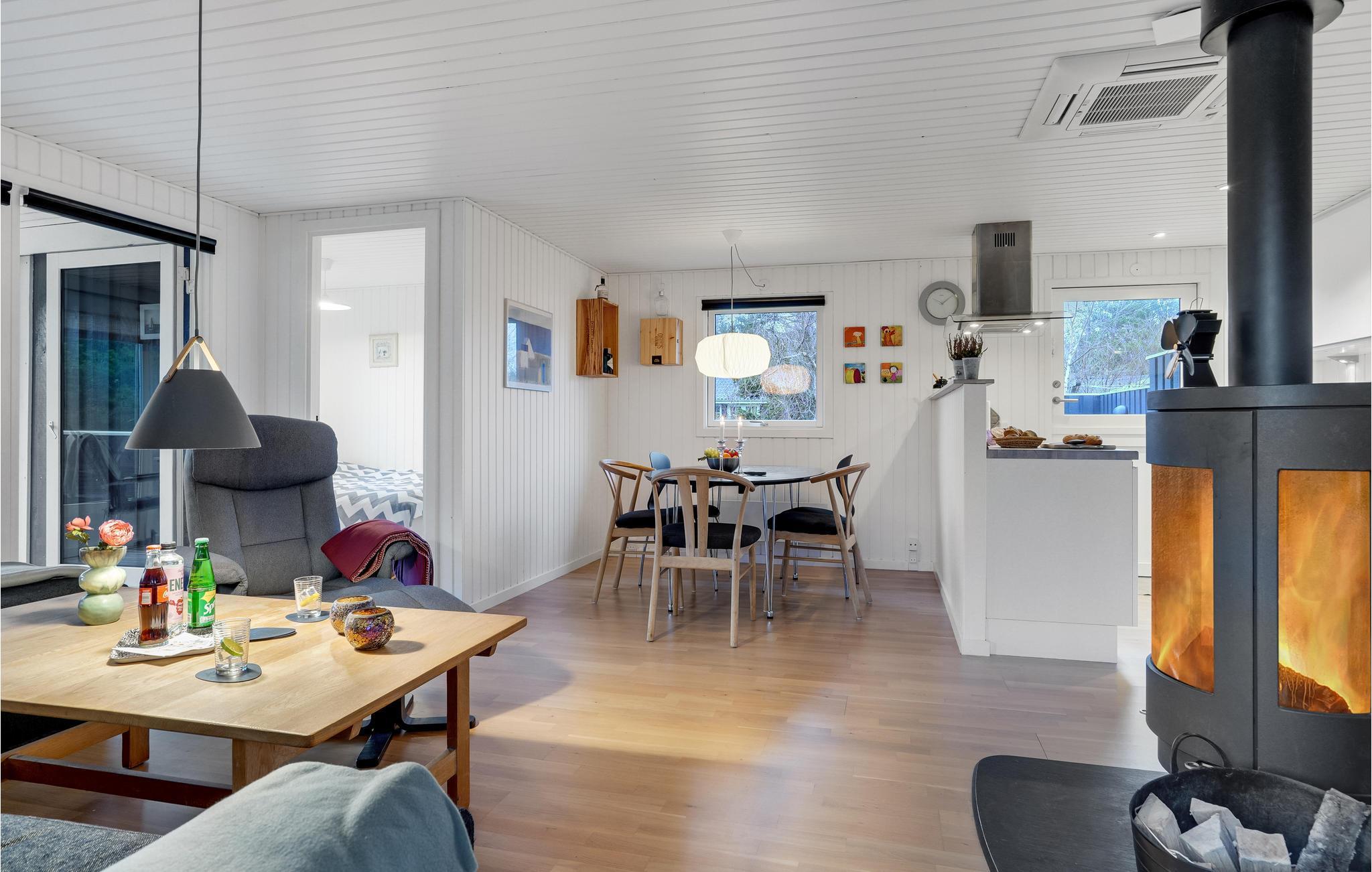 Das gemütliche Ferienhaus empfängt Sie in Rødhus und ist für Sie das ideale zuhause für Ihren entspannten Urlaub in der Nähe der dänischen Nordseeküste. Machen Sie es sich hier nach aktiven Tagen am Meer oder Radtouren auf dem Land im offenen und hellen Wohnraum gemütlich. Lauschen Sie dem Knistern des Kaminfeuers und legen Sie die Beine hoch. Sie können auch im Sommer und an sonnigen Tagen, die rund ums Haus laufende Terrasse genießen, sodass Sie immer Sonne oder Schatten finden. Sollte es etwas kühler werden können Sie sich in den Wintergarten zurückziehen, dessen Schiebetüren entweder komplett geöffnet oder auch geschlossen werden können.