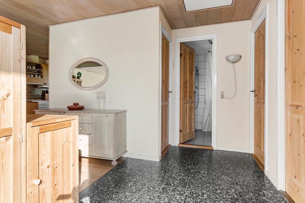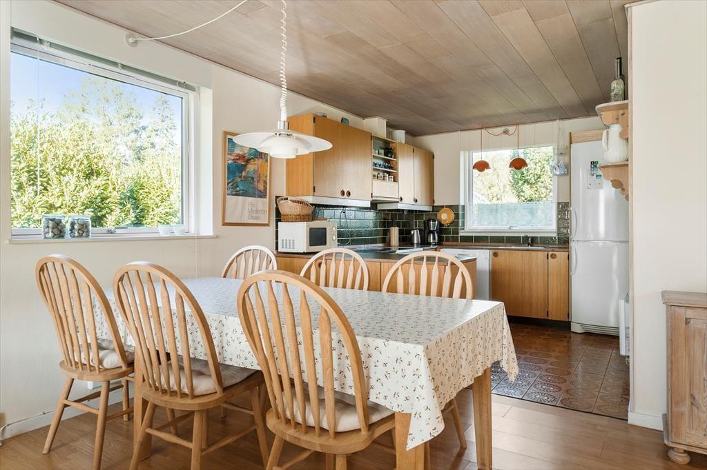 Schönes Ferienhaus in Ziegelstein. Liegt friedlich nah an Rødvigs schönem Badestrand. Gemütlicher Garten mit abgeschirmter Terrasse. Offener Kamin draußen. Flur, Grosse helle Stube mit Essplatz. Offene Küche. Badezimmer. 3 Zimmer:1 Doppelbett, 2Einzelbett eins mit 2 Etagenbett. TV Mit Deutsche Kanale