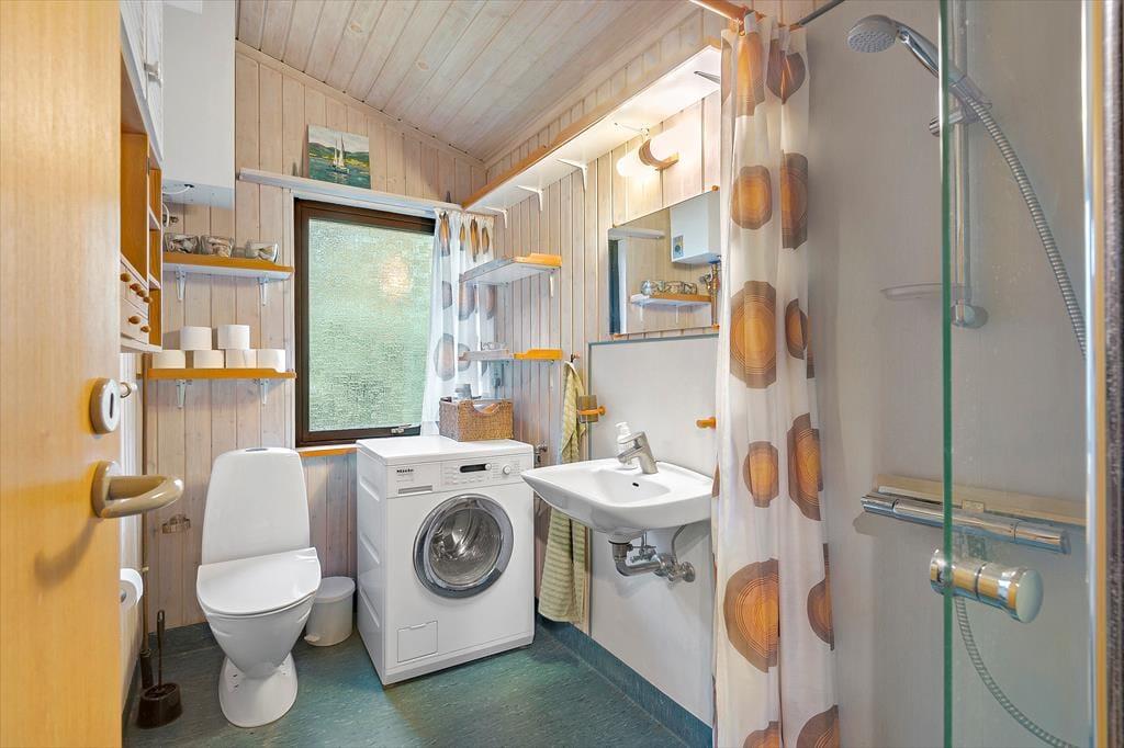 Hier betreten Sie eine kleine Eingangshalle mit Fliesenboden und dann beginnt der Urlaub in diesem schönen Sommerhaus aus den 70er Jahren. Das Haus verfügt über eine offene Küche in Verbindung mit dem Wohnzimmer und einen schönen Essbereich in einem gemütlichen kleinen Gartenzimmer mit viel Licht. Hier ist für Sie alle Platz und auch der Vierbeiner der Familie darf nicht fehlen. Im Wohnzimmer können Sie es sich gemeinsam gemütlich machen und hier können Sie TV streamen. Oder Sie genießen ein Glas Wein und hören dem Knistern des Holzes im Holzofen zu. Vom Wohnzimmer aus hat man Zugang zur Terrasse und zum Garten. Das Haus ist mit 4 Schlafzimmern und 2 Badezimmern ausgestattet, sodass Sie nicht warten müssen, bis der Teenager sein Bad für den Tag beendet hat, und eine gute Gelegenheit besteht, sich mitten am Tag zurückzuziehen und ein Nickerchen zu machen.
