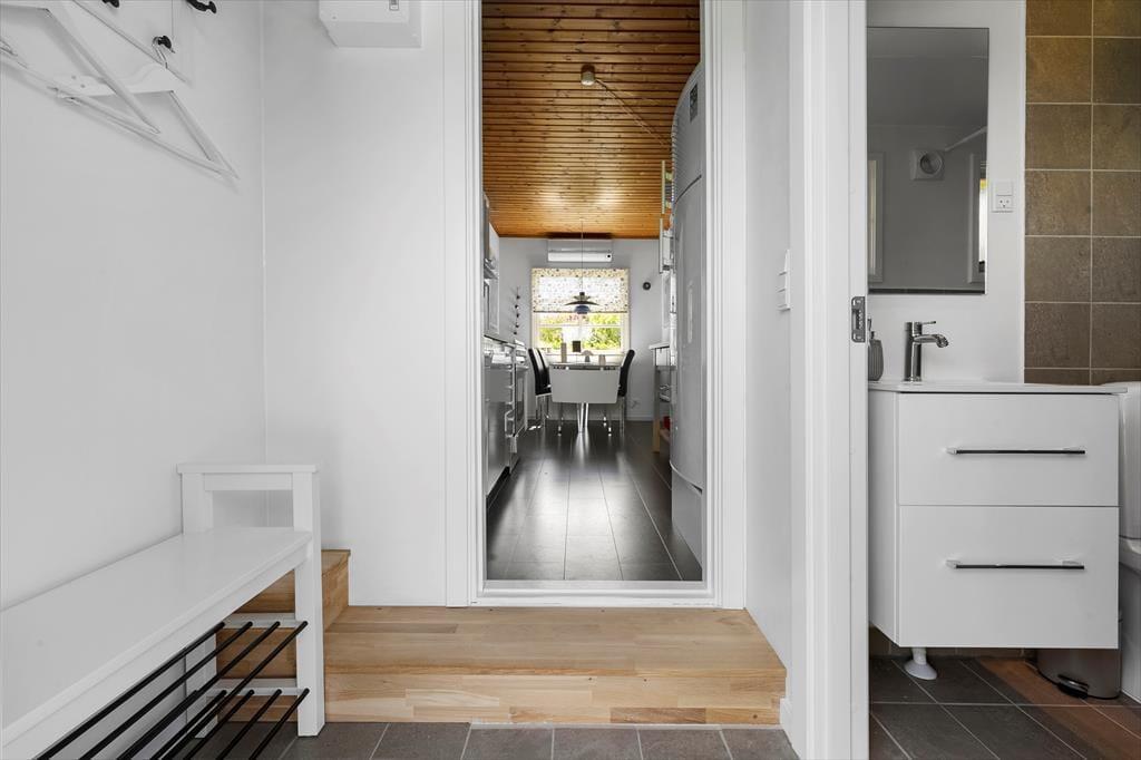 Du betrittst das gepflegte und gemütliche Ferienhaus über den Flur. Im Anschluss daran öffnet sich eine schöne einladende Küche mit Essbereich, wo ihr gemeinsam die Mahlzeiten des Tages zubereiten könnt. Im Wohnzimmer kannst du es dir abends oder an kalten Tagen mit Feuer im Ofen bei einem Glas Wein auf dem Sofa gemütlich machen, während die Kinder am Esstisch malen oder spielen. Das Haus hat ein schönes Schlafzimmer und einen tollen Anbau mit 2 Etagenbetten und einem Schlafsofa, sodass die Kinder wählen können, wo sie schlafen wollen.