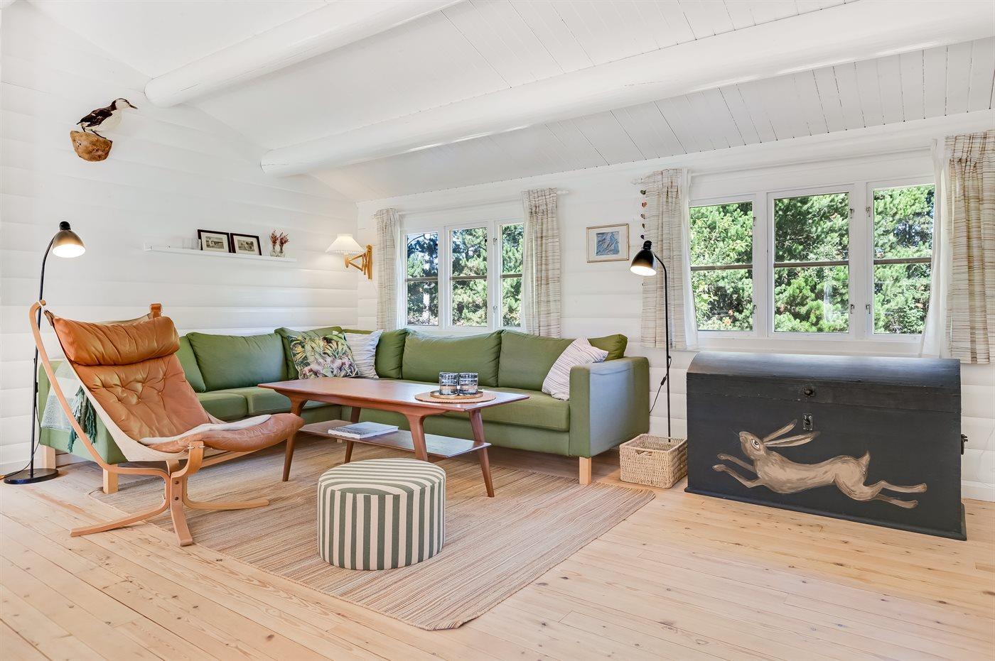 Das Ferienhaus eignet sich für 5 Personen sowie 1 Kleinkind bis zu 3 Jahren. Die Ferienunterkunft hat eine Wohnfläche von 68 m² und wurde 1974 gebaut. 2021 wurde die Ferienunterkunft teilweise renoviert. Haustiere dürfen nicht mitgebracht werden. In der Ferienunterkunft ist eine energiesparende Luft zu Luft Wärmepumpe installiert. Tiefkühlmöglichkeit mit 20 Liter Nutzinhalt. Es gibt außerdem einen Kaminofen. Für die jüngsten Feriengäste ist 1 Kinderhochstuhl vorhanden.