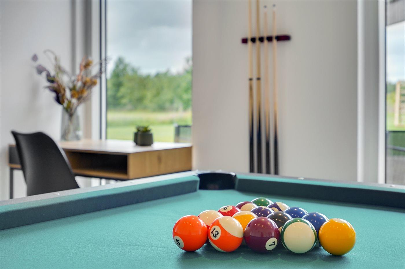 Wie bereits erwähnt, gelangt man von der Wohnküche in den Aktivitätsraum des Hauses, der mit reichlich Möglichkeiten aufwartet, um sich beim Billard oder Dart mit Freunden oder Familienmitgliedern zu messen. Auch ein Schreibtisch ist vorhanden, der zum Zeichnen, Puzzeln, Gaming oder Arbeiten am Laptop einlädt.