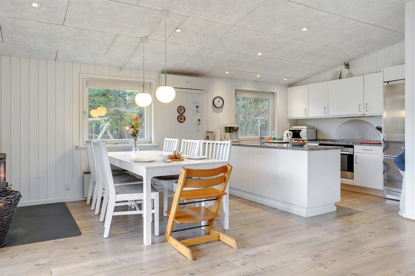 Auf einem 2500 m2 großen Naturgrundstück, nicht weit vom schönen Sønderstrand entfernt, liegt dieses schöne Ferienhaus. Zum Haus gehört ein schöne, ungestörte und teils überdachte Terrasse, die von Bäumen umgeben ist. Das Haus eignet sich für bis zu 8 Personen, hat eine Wohnfläche von 121 m2 und ist 1971 gebaut. Es wurde 2004 und 2008 renoviert. Das Haus ist mit Kaminofen ausgestattet und es ist eine energiesparende Wärmepumpe installiert. Es stehen Waschmaschine, Wäschetrockner und Tiefkühlmöglichkeit mit 60 Liter Nutzinhalt zur Verfügung. Für die jüngsten Feriengäste ist ein Kinderhochstuhl vorhanden. Die Entfernung zum Meer beträgt 1000 m, die nächste Einkaufsmöglichkeit liegt 2900 m entfernt und im Abstand von 1200 m gibt es einen Golfplatz. Für die Kinder gibt es Nintendo Wii, Schaukel, Sandkasten und Spielhaus. Die Schlafplätze verteilen sich auf 4 Schlafzimmer; 2 mit Doppelbett und 2 mit je 2 Einzelbetten. Die Küche ist mit u. a. Kühlschrank, E-Herd mit Backofen, Mikrowelle und Geschirrspüler ausgestattet. Es gibt 2 Badezimmer, beide mit Fußbodenheizung, Duschnische und Toilette. Ferner stehen eine Sauna und ein 2-Pers.-Whirlpool zur Verfügung – hier können Sie sich so richtig entspannen. Es steht ein neuer Fernseher (mit deutschen und dänischen Fernsehsendern), DVD-Spieler, Stereoanlage, CD-Spieler sowie kostenlose Internetverbindung zur Verfügung. Außerdem ist eine Safety-Box vorhanden. Parkplatz auf dem Grundstück. Es ist erlaubt 3 Haustiere mitzubringen.