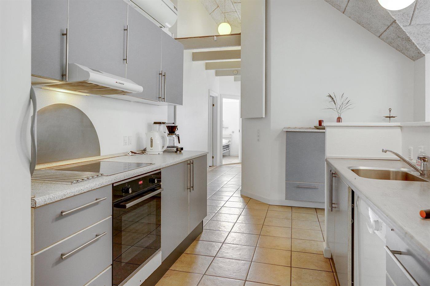 Die Küche ist mit Kühlschrank ausgestattet. Außerdem gibt es 4 Keramik-Kochfelder, Umluftofen, Mikrowelle sowie Geschirrspüler. Fußbodenheizung in der Küche.