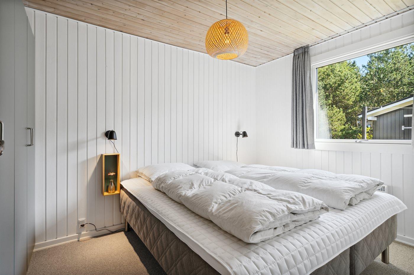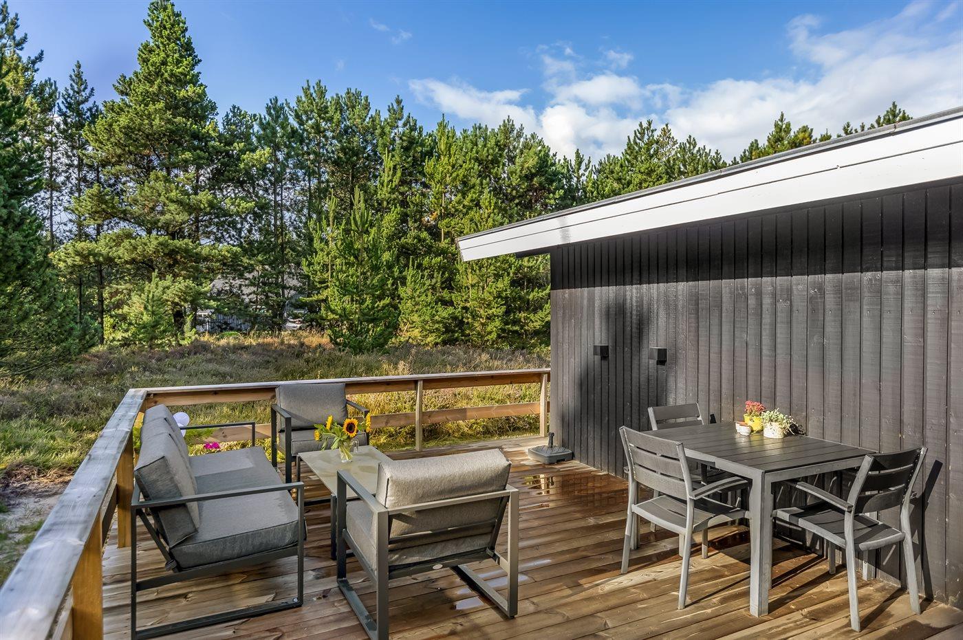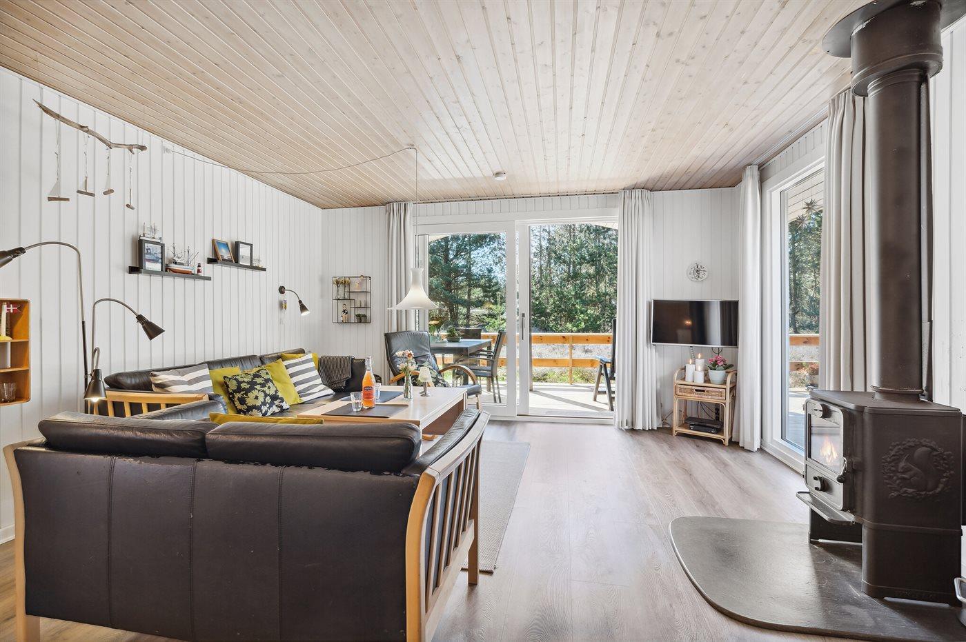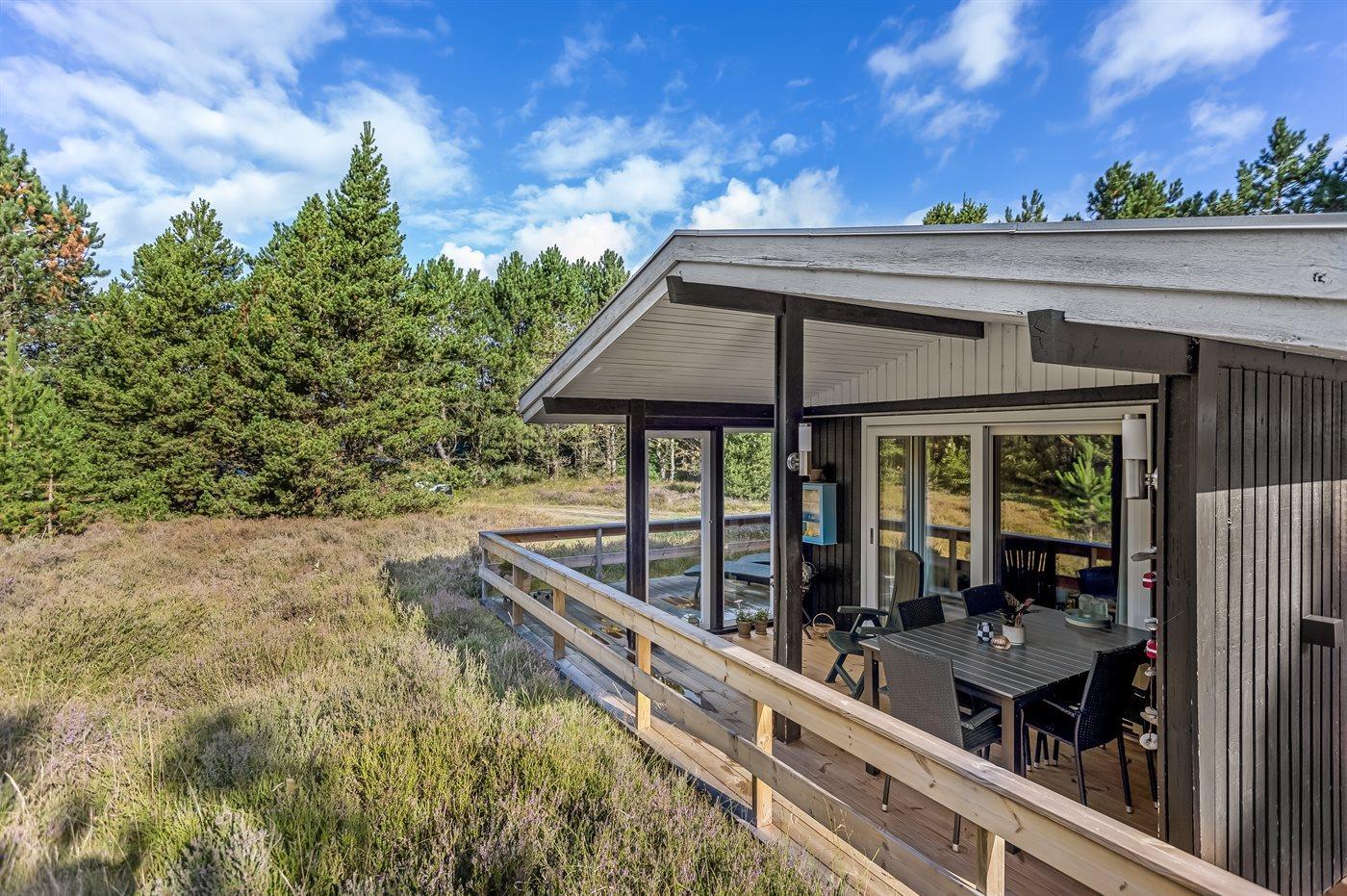 Dieses Ferienhaus aus Holz liegt auf einem großen, mit Heidekraut bewachsenen Naturgrundstück in einer schönen Gegend in der Nähe der Nordsee. Das Haus wurde 1984 erbaut und wurde sowohl außen als auch innen laufend renoviert – zuletzt 2023.
