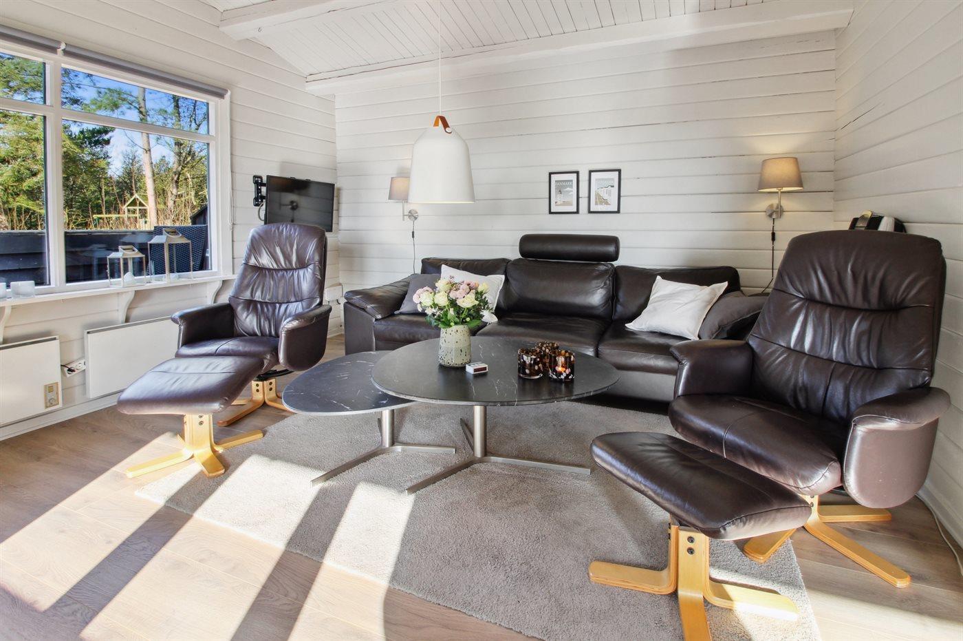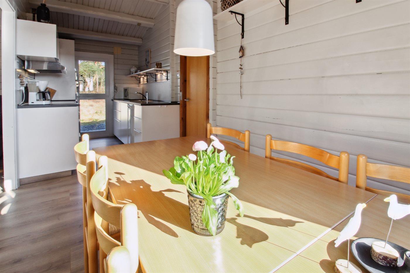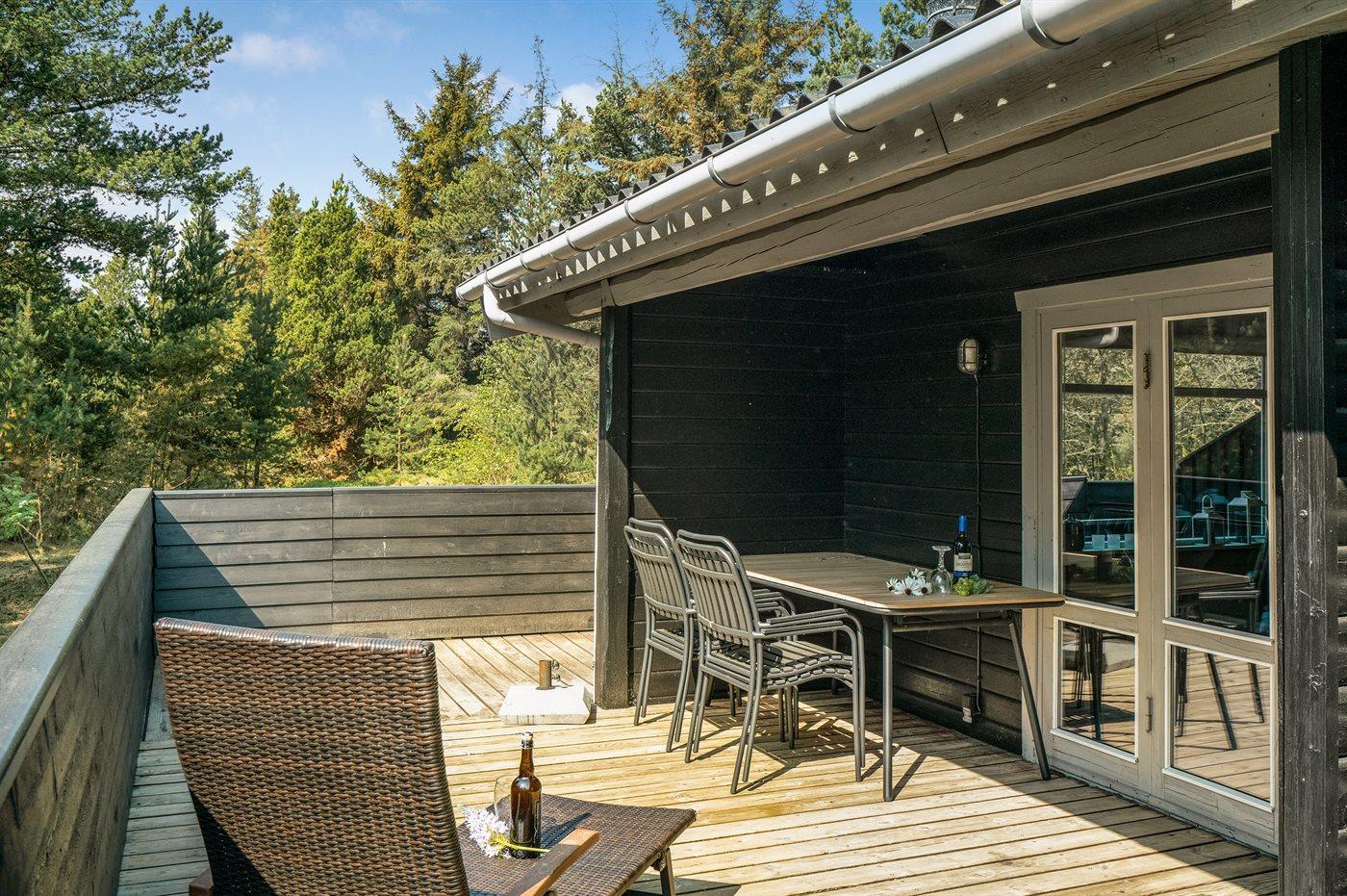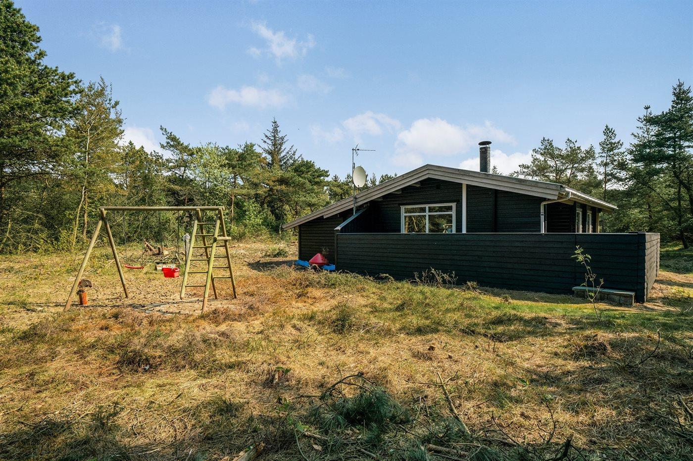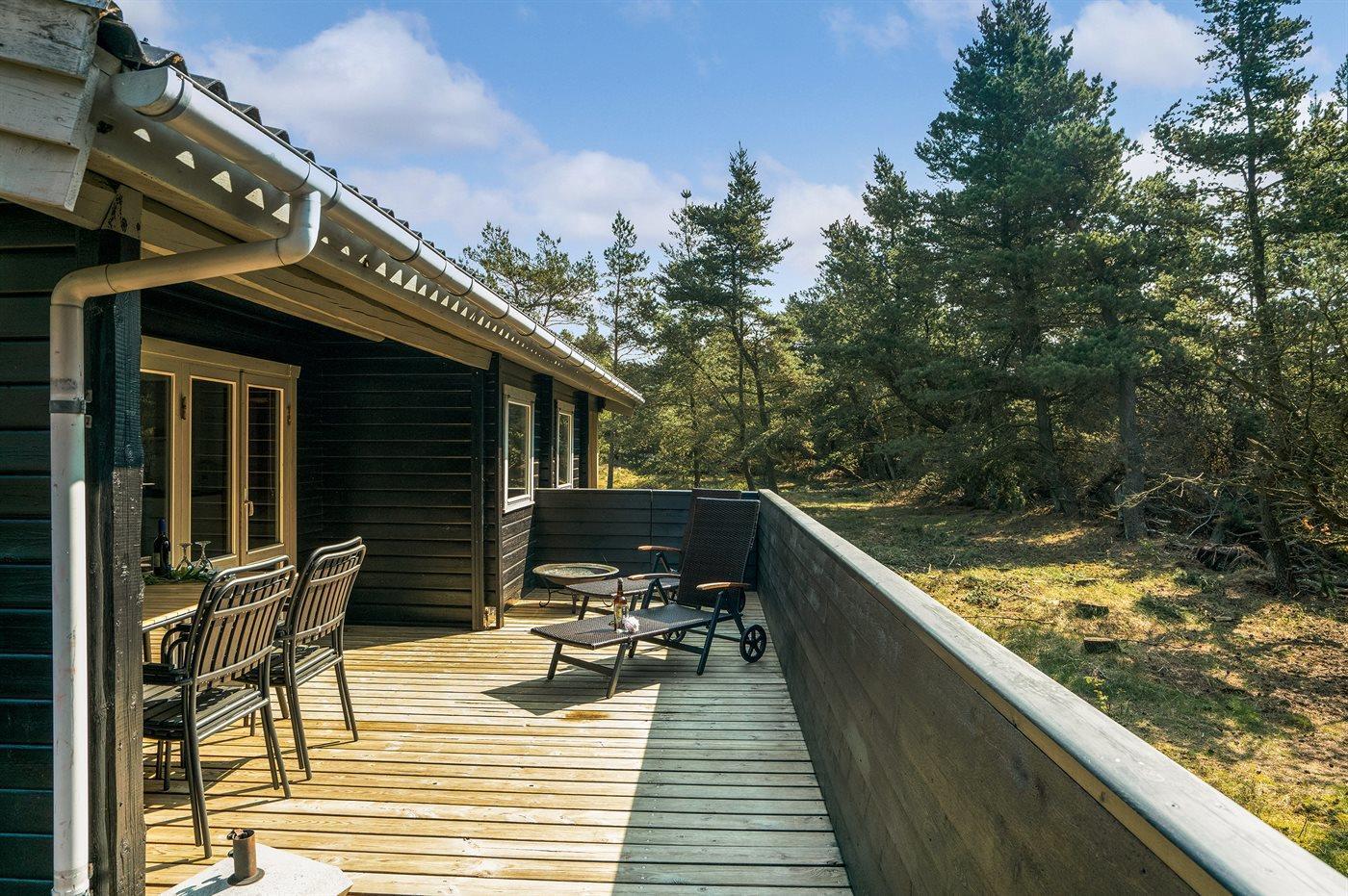 Dieses schöne Ferienhaus aus Holz, 1973 gebaut unf 2004 modernisiert, liegt auf einem großen, ungestörten Naturgrundstück mit Bäumen am Ende einer Sackgasse. Schöne, große, teils überdachte Terrasse mit Gartenmöbeln. Badezimmer mit Fußbodenheizung und Dusche. Sauna. Die helle, moderne Küche ist mit u. a. Geschirrspüler, Mikrowelle und Tiefkühlgerät ausgestattet. Schönes Wohnzimmer mit Ledermöbeln, Kaminofen, TV mit Satellitenanschluss, DVD-Spieler sowie Stereoanlage mit CD-Spieler. Ferner kostenlose, kabellose Internetverbindung vorhanden (Computer ist mitzubringen). Die Schlafplätze verteilen sich auf 2 Schlafzimmer; 1 mit Doppelbett und 1 mit 2 Einzelbetten. Für die kleinen Feriengäste stehen Kinderbett, Kinderhochstuhl, Sandkasten und Schaukel zur Verfügung. Es sind Waschmaschine sowie Wäschetrockner vorhanden und es ist eine Energiegerechte Wärmepumpe installiert. Strandkorb auf dem Grundstück.