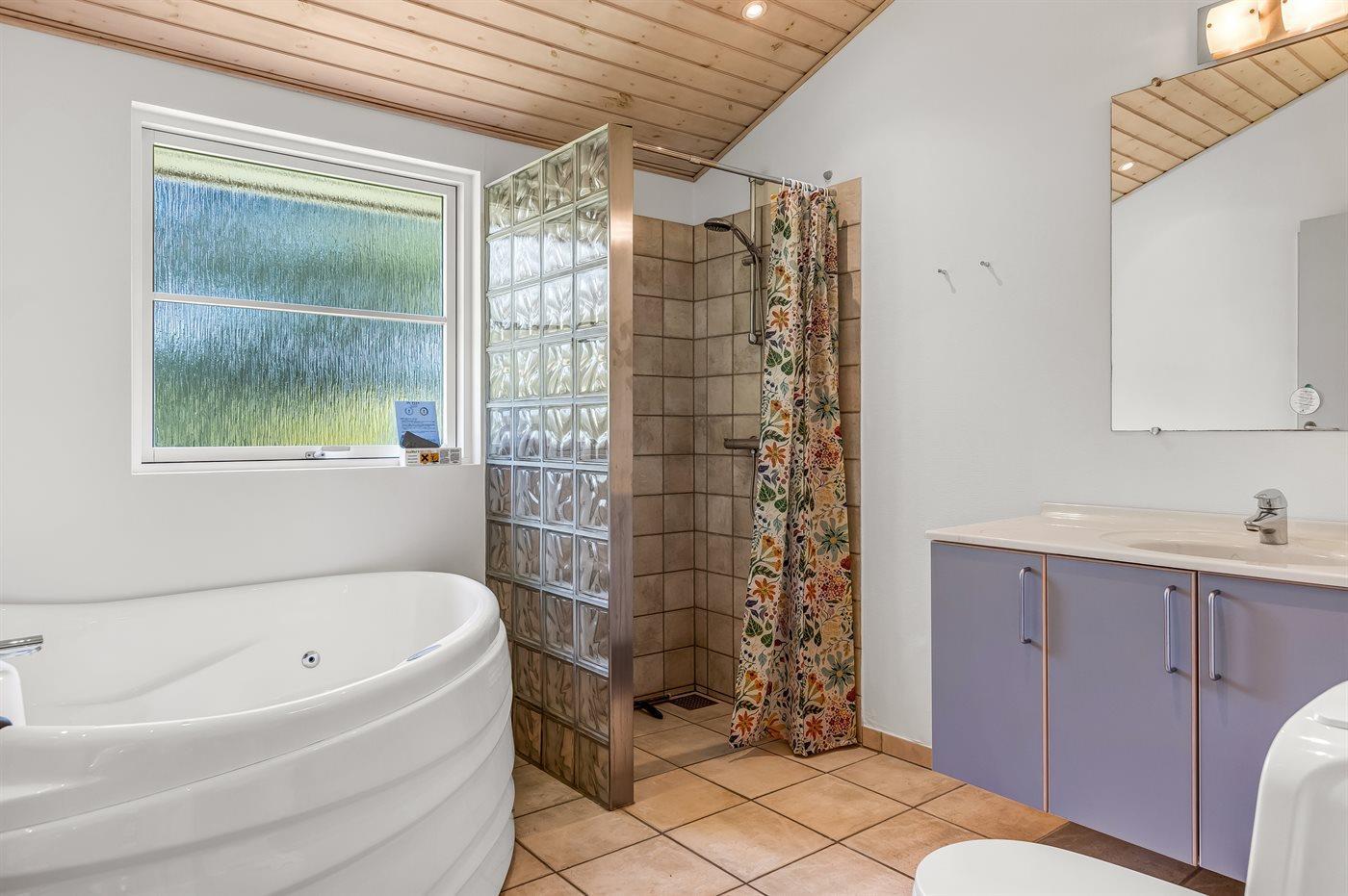 Es gibt 2 Badezimmer mit Dusche und 2 Toiletten. Fußbodenheizung in 1 Badezimmer. Es steht eine Sauna zur Verfügung in der Sie sich so richtig entspannen können.