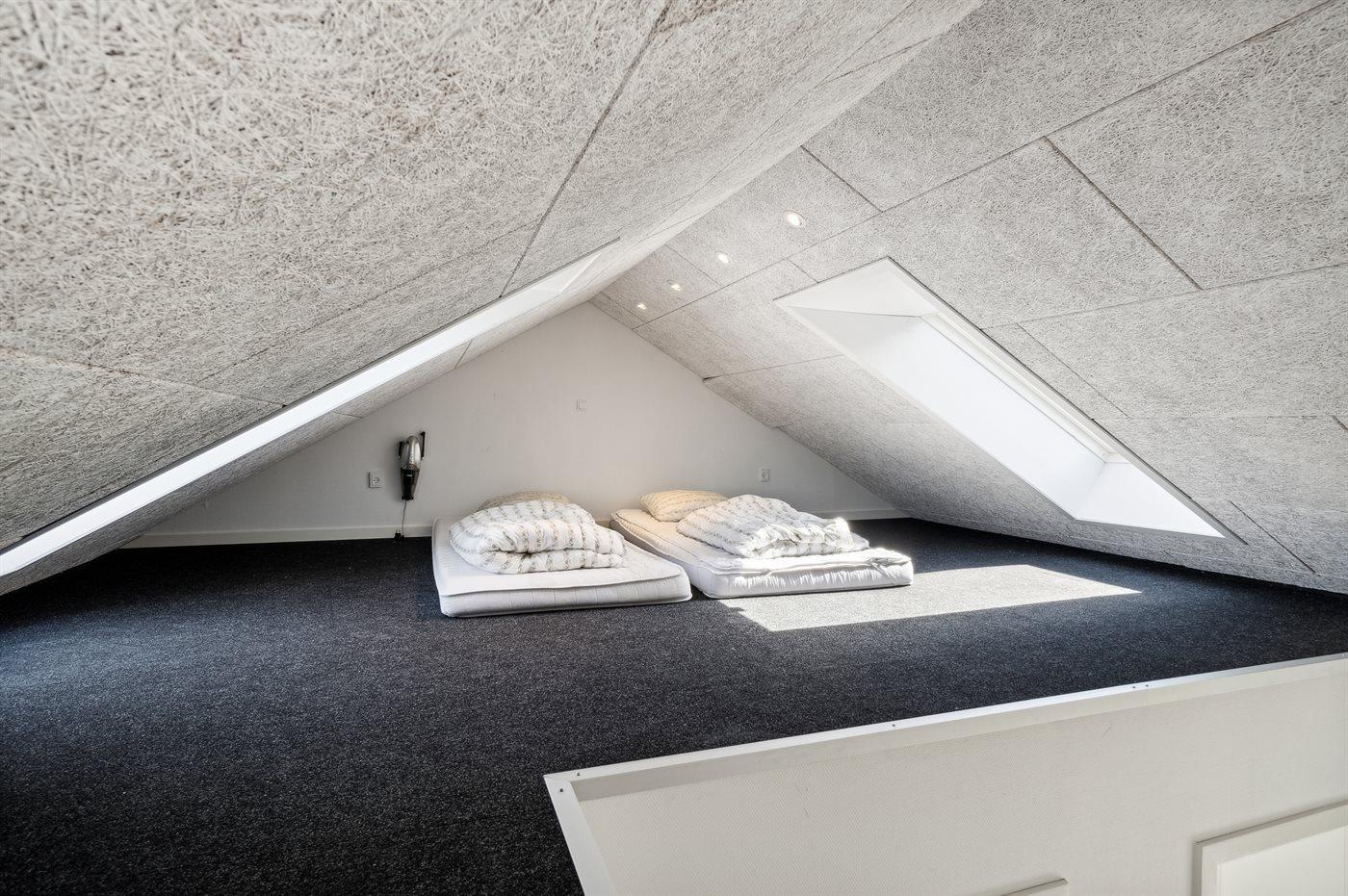 Die Schlafplätze verteilen sich auf 4 Schlafräume. 8 Schlafplätze in Doppelbetten. 4 Schlafplätze auf Matratzen. 4 von diesen Schlafplätzen verteilen sich auf 2 offene Obergeschosse.
