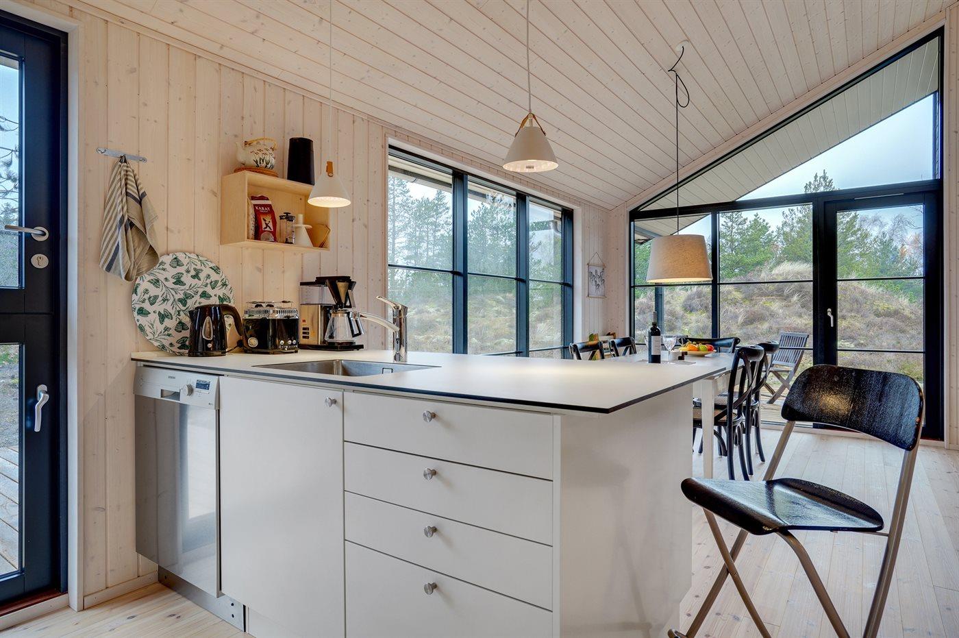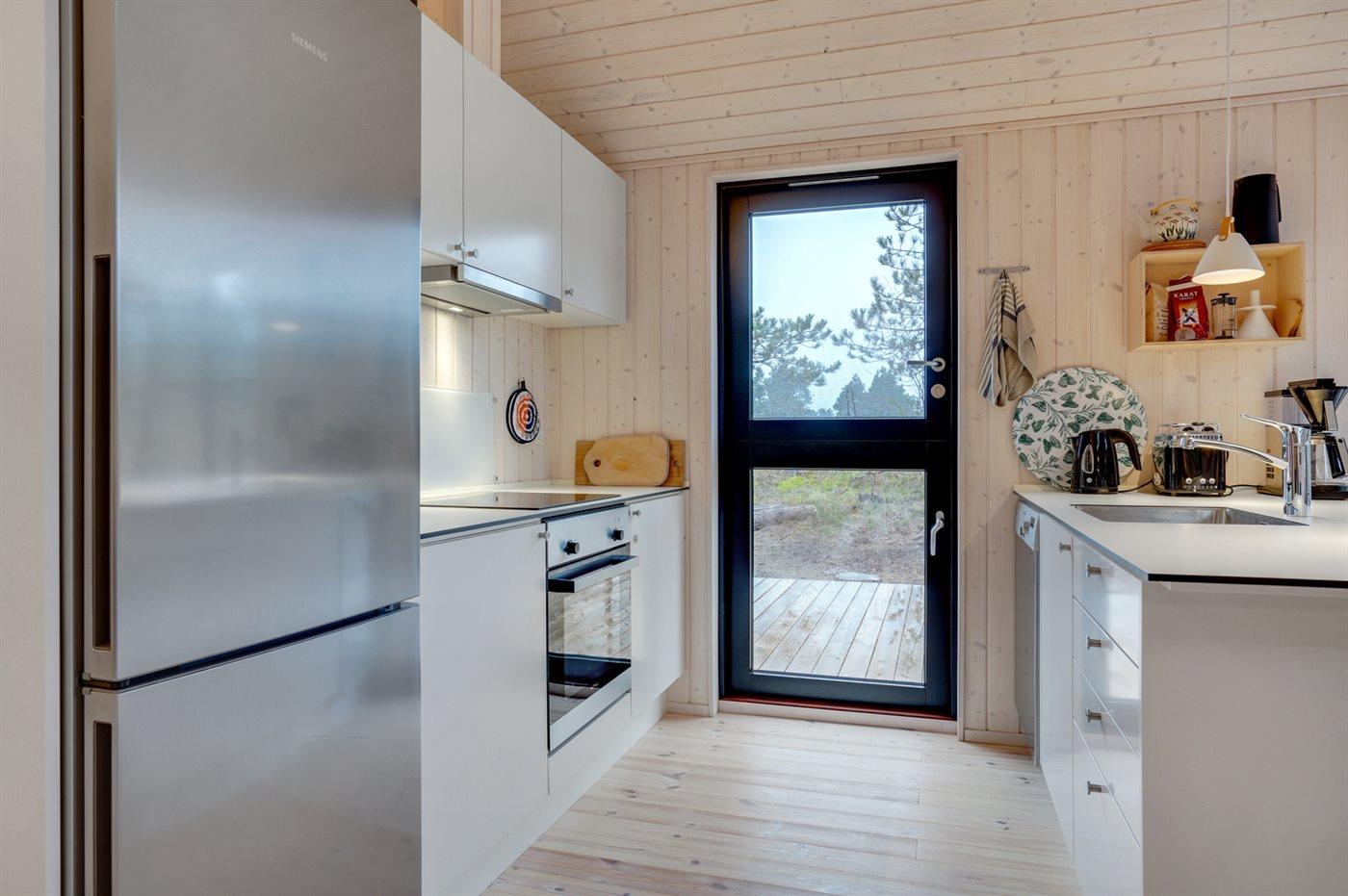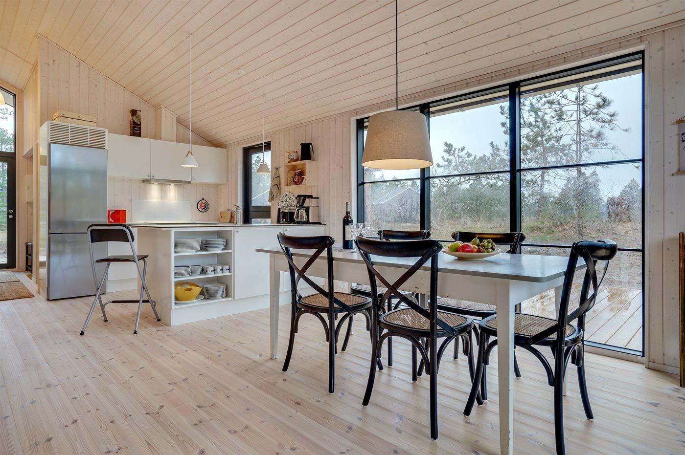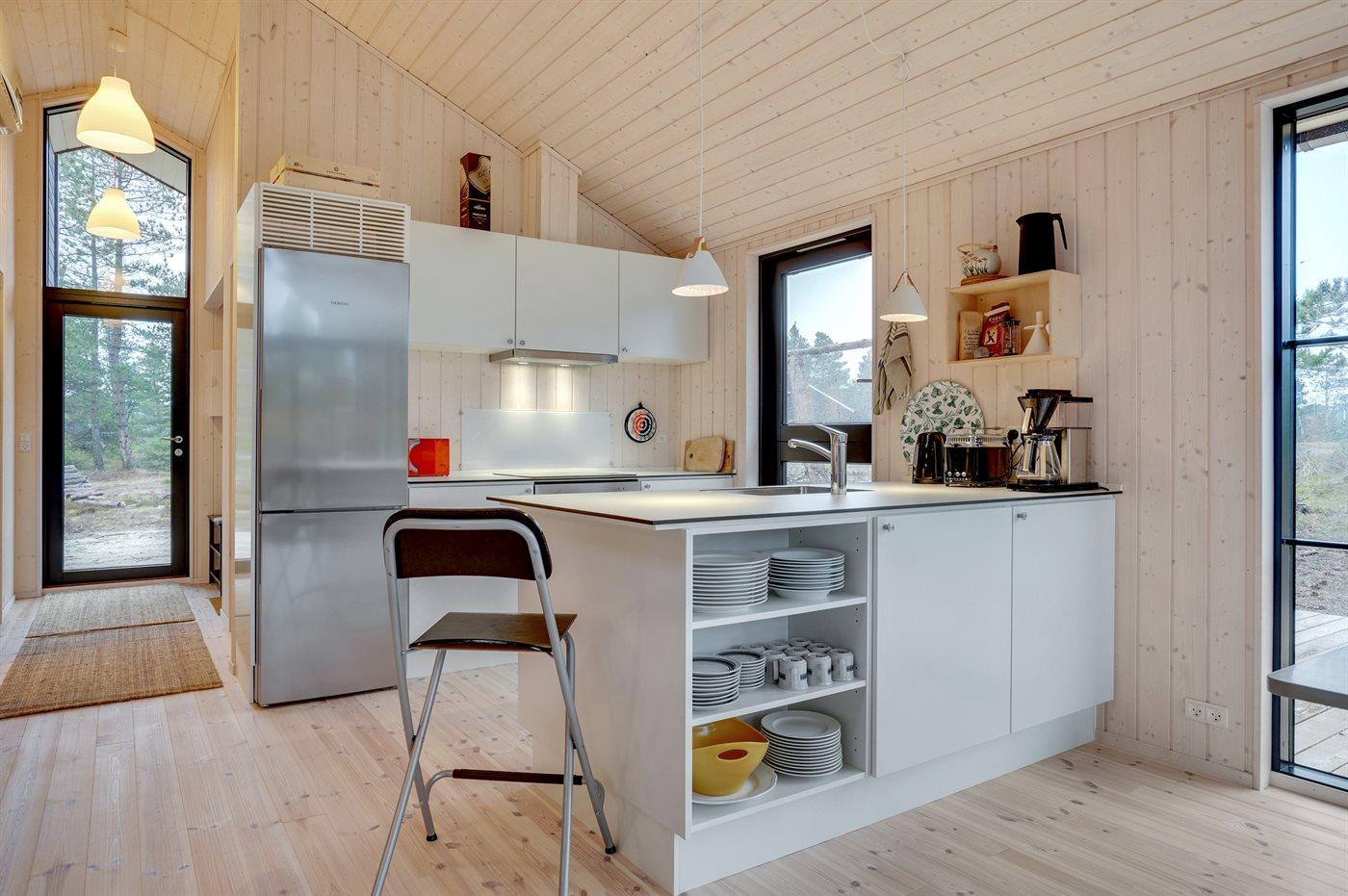 Einkaufsmöglichkeiten und ein Bäcker liegen 1900 m entfernt Richtung Süden und sind schnell mit dem Fahrrad zu erreichen. In 2000 m Richtung Norden befindet sich ein großer Naturspielplatz. Rømøs bekannter, kilometerbreite Nordsee-Badestrand liegt 4000 m entfernt. Das Ferienhaus wird mit einer energiesparenden Wärmepumpe beheizt. An heißen Tagen kann die Pumpe die Temperatur im Haus auch herunterkühlen. Das Haus hat insgesamt 3 Schlafzimmer. Die Schlafplätze verteilen sich auf 2 Zimmer mit Doppelbett (4 Schlafplätze) und ein Zimmer mit einem kleinen Doppelbett und einem einzelnen Etagenbett darüber (3 Schlafplätze). Dazu kommt ein offenes Obergeschoss mit 2–3 möglichen Schlafplätzen. Die Küche ist mit einem großen Kühl-/Gefrierschrank, einem Induktionsherd, einem Backofen, einer Mikrowelle, einem Toaster, einer Kaffeemaschine und Spülmaschine ausgestattet. Im Badezimmer mit Fußbodenheizung steht neben der großen Duschnische eine Waschmaschine zur Verfügung. Auch ein Wäscheständer ist vorhanden. Das 50 Zoll große Smart-TV verfügt über eine Internetverbindung und empfängt mindestens 4 dänische, 4 deutsche, 3 schwedische und 3 norwegische Sender. Außerdem steht selbstverständlich WLAN mit schneller Breitbandverbindung zur Verfügung. Willkommen im J. Tagholmsvej 14!
