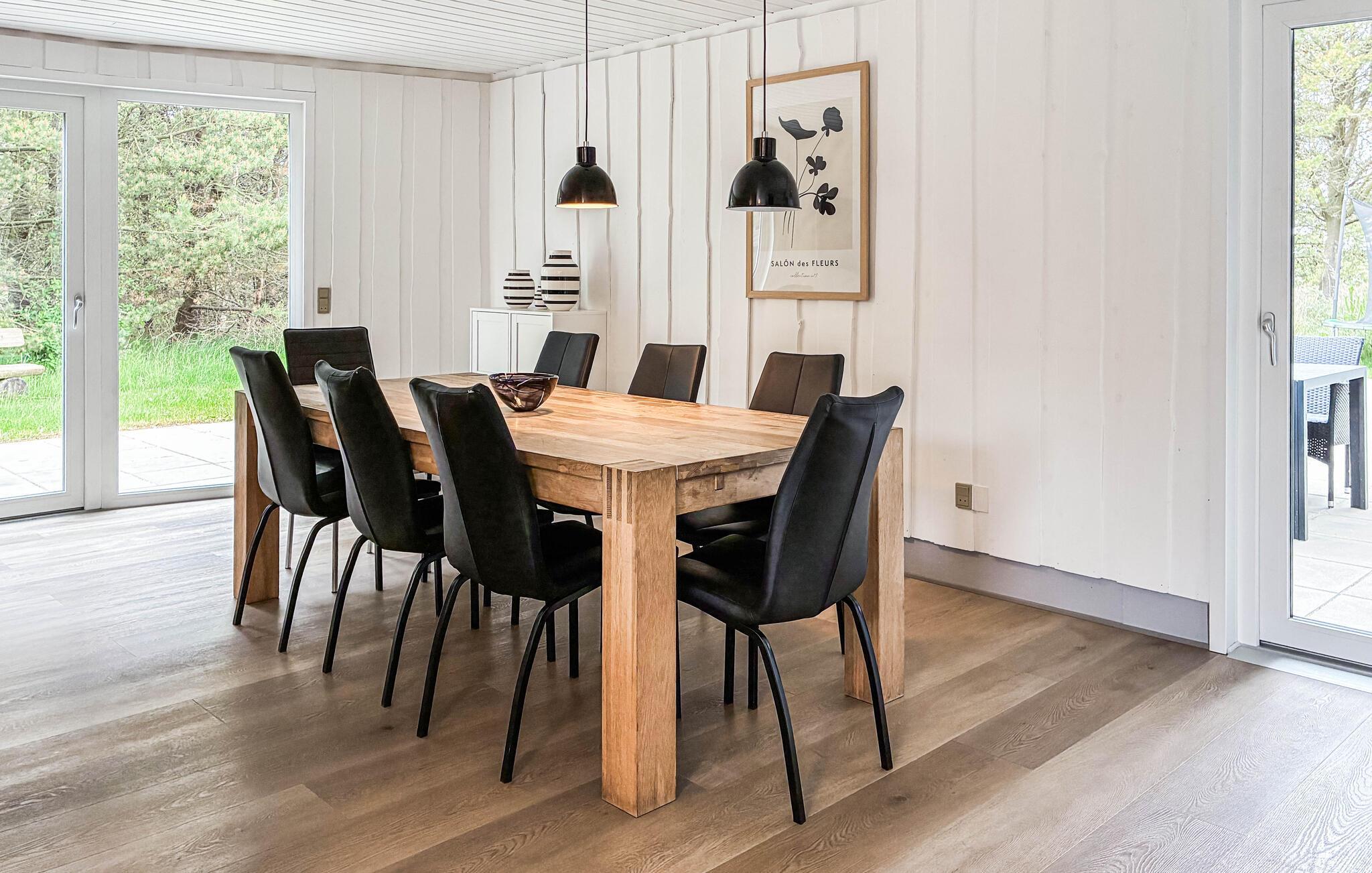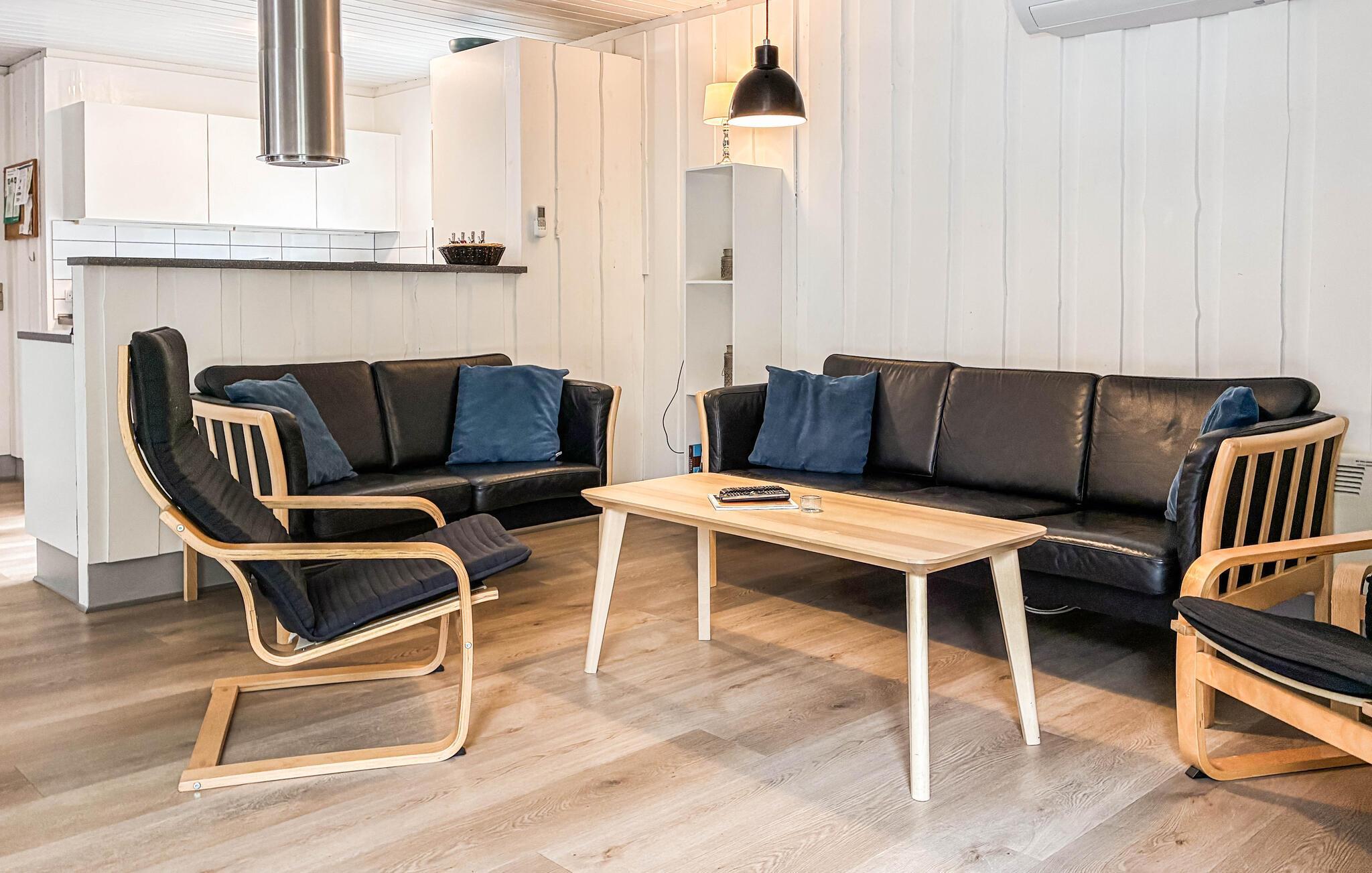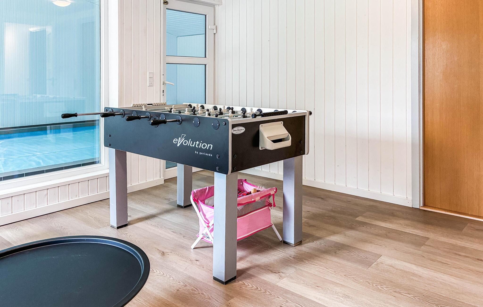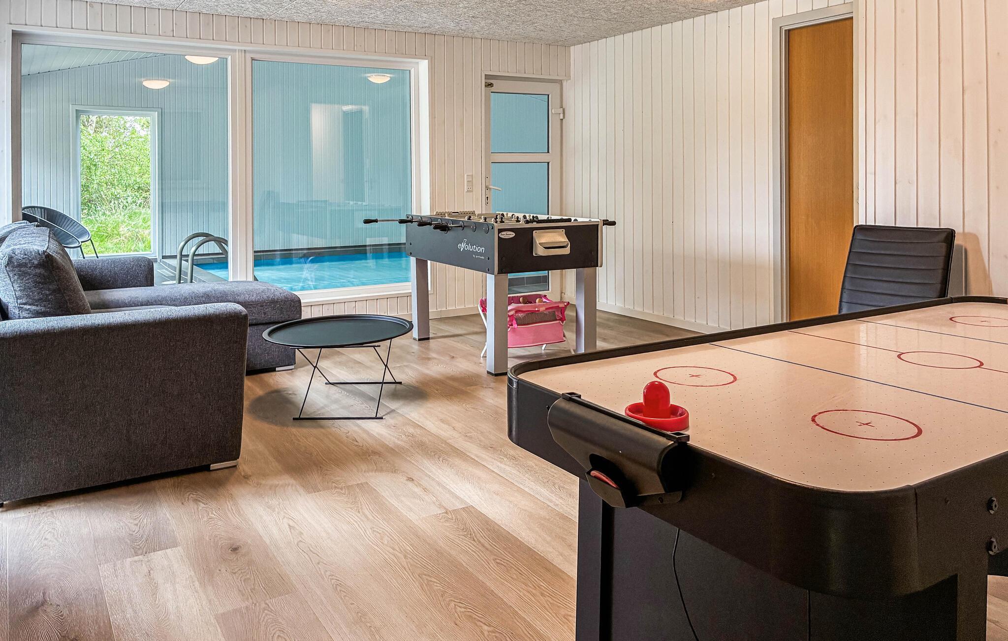 Genießen Sie einen entspannten Aufenthalt in diesem einladenden Ferienhaus im Norden der süddänischen Insel Rømø, das ideal für einen Familienurlaub geeignet ist. Starten Sie den Tag nach dem gemeinsamen Frühstück mit einem Bad im Pool und entspannen Sie auch im Finnischen Holzbad und in der Sauna des Hauses. Das schön eingerichtete Haus bietet einen großzügigen Wohnbereich, in dem Sie sich vor und nach Ihren ereignisreichen Urlaubstagen entspannen können. Machen Sie es sich auf den bequemen Sofas gemütlich, spielen Sie lustige Gesellschaftsspiele am Esstisch und genießen Sie die Wärme des Kaminofens. In der offenen Küche können Hobbyköche Ihre Qualitäten unter Beweis stellen. Und vergessen Sie nicht, den Familienmeister im Airhockey zu ermitteln.