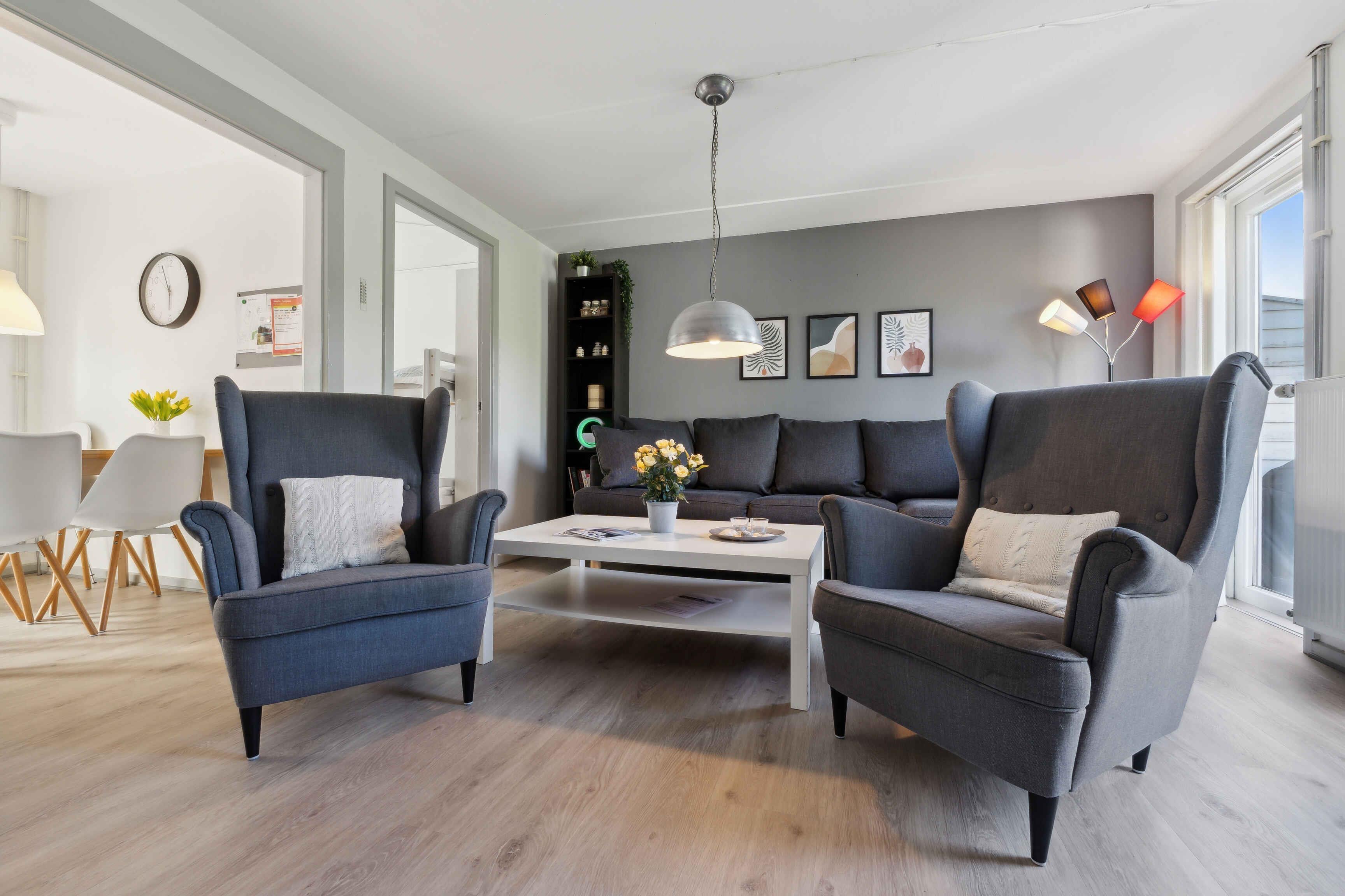 Gemütliches Reihenhaus auf Rømø mit moderner Ausstattung, Terrasse und Nähe zu Strand und Wasserpark für erholsamen Urlaub.