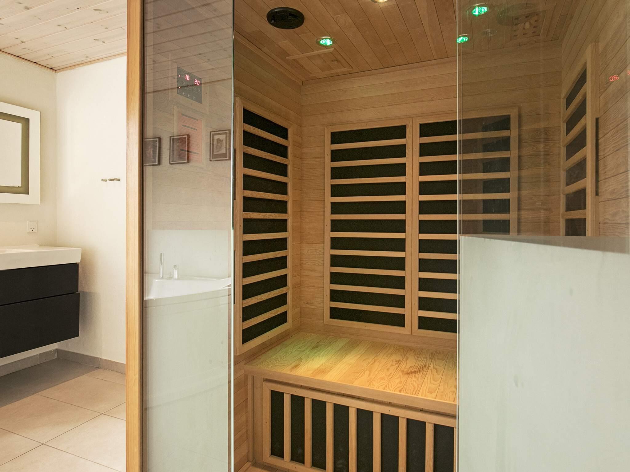 Die beiden Badezimmer sind beide mit Dusche ausgestattet, eines verfügt zudem über eine Infrarotsauna und einen Whirlpool. Zusätzlich gibt es eine Waschmaschine und einen Wäschetrockner. Zwei der Schlafzimmer verfügen über zwei Einzelbetten, die verschoben und so auch als Doppelbetten genutzt werden könnten. Für die jüngsten Gäste gibt es ein Kinderbett und einen Hochstuhl im Haus.