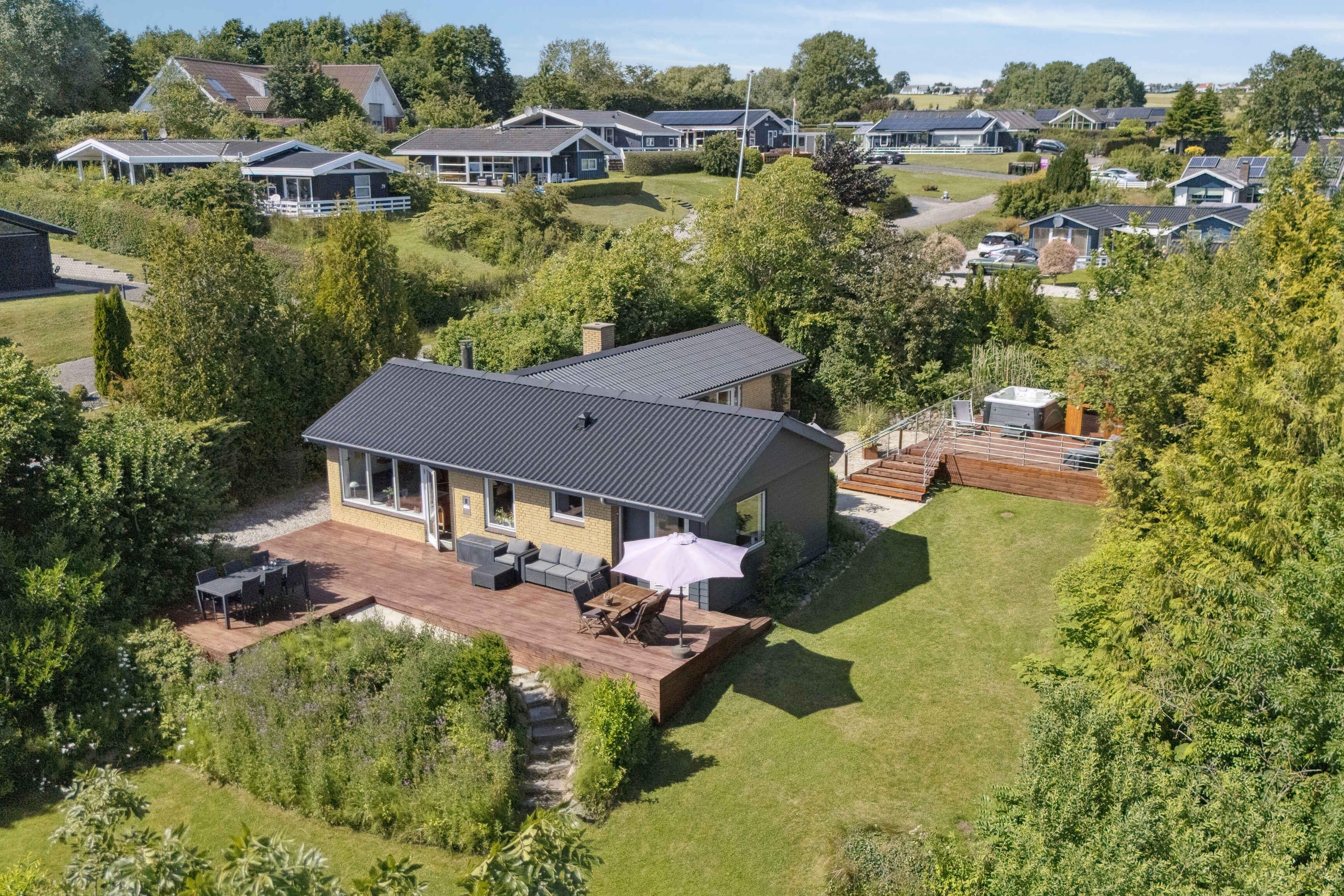 Genießen Sie einen erholsamen Urlaub in einem geräumigen Ferienhaus von 111 m², ideal für Familien oder Freunde. Mit drei Schlafzimmern und acht Schlafplätzen ist genug Platz für alle. Nur 300 Meter vom Wasser entfernt, erreichen Sie leicht die familienfreundlichen Strände von Følle. Die Umgebung bietet wunderschöne Naturerlebnisse, darunter Spaziergänge entlang der Küste und einen Blick über die Aarhus-Bucht, der von der Terrasse aus genossen werden kann. Die nahegelegene Stadt Rønde und der Nationalpark Mols Bjerge laden zu besonderen Erlebnissen und herrlichen Wanderungen ein. Mit einem Außen-Whirlpool und einer Sauna können Sie in privater Atmosphäre entspannen. Der Aktivitätsraum ist mit Billard, Darts, Projektor und Leinwand ausgestattet – perfekt für Unterhaltung für die ganze Familie. Das Haus bietet alle modernen Annehmlichkeiten wie Internet, Geschirrspüler, Waschmaschine und Trockner, um einen sorgenfreien Aufenthalt zu gewährleisten. Die Umgebung bietet spannende Natur, historische Sehenswürdigkeiten und charmante Städte. Erkunden Sie die Dünen an der Küste, die Tierwelt und Wanderwege, oder besuchen Sie die örtlichen Restaurants und Cafés. Keine Vermietung an Jugendgruppen. Achtung: Wird nicht für gewerbliche Nutzung vermietet.