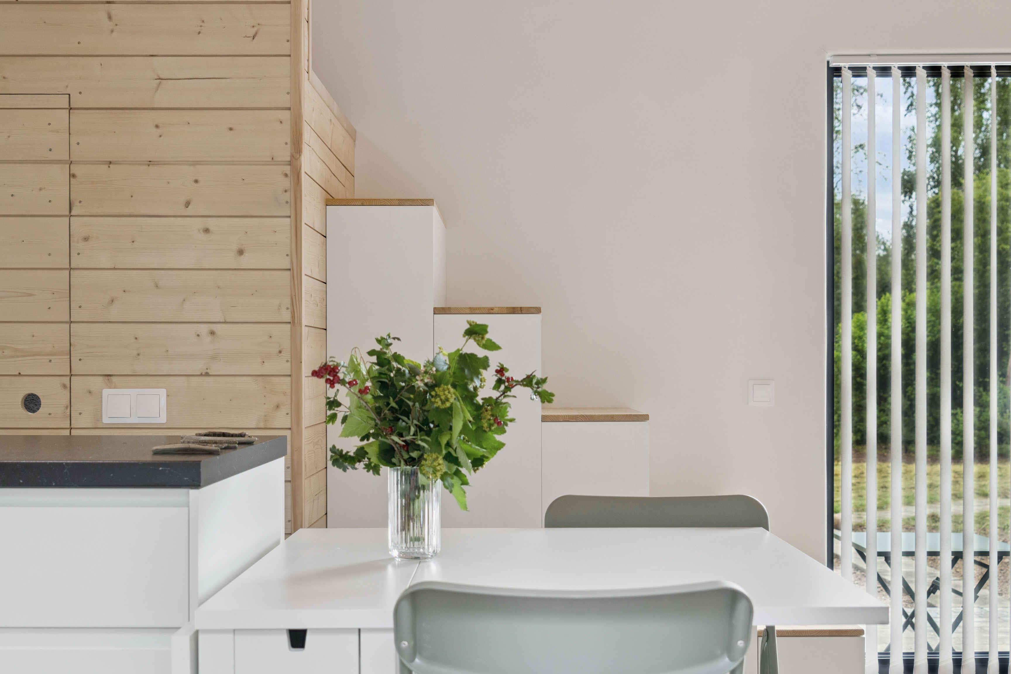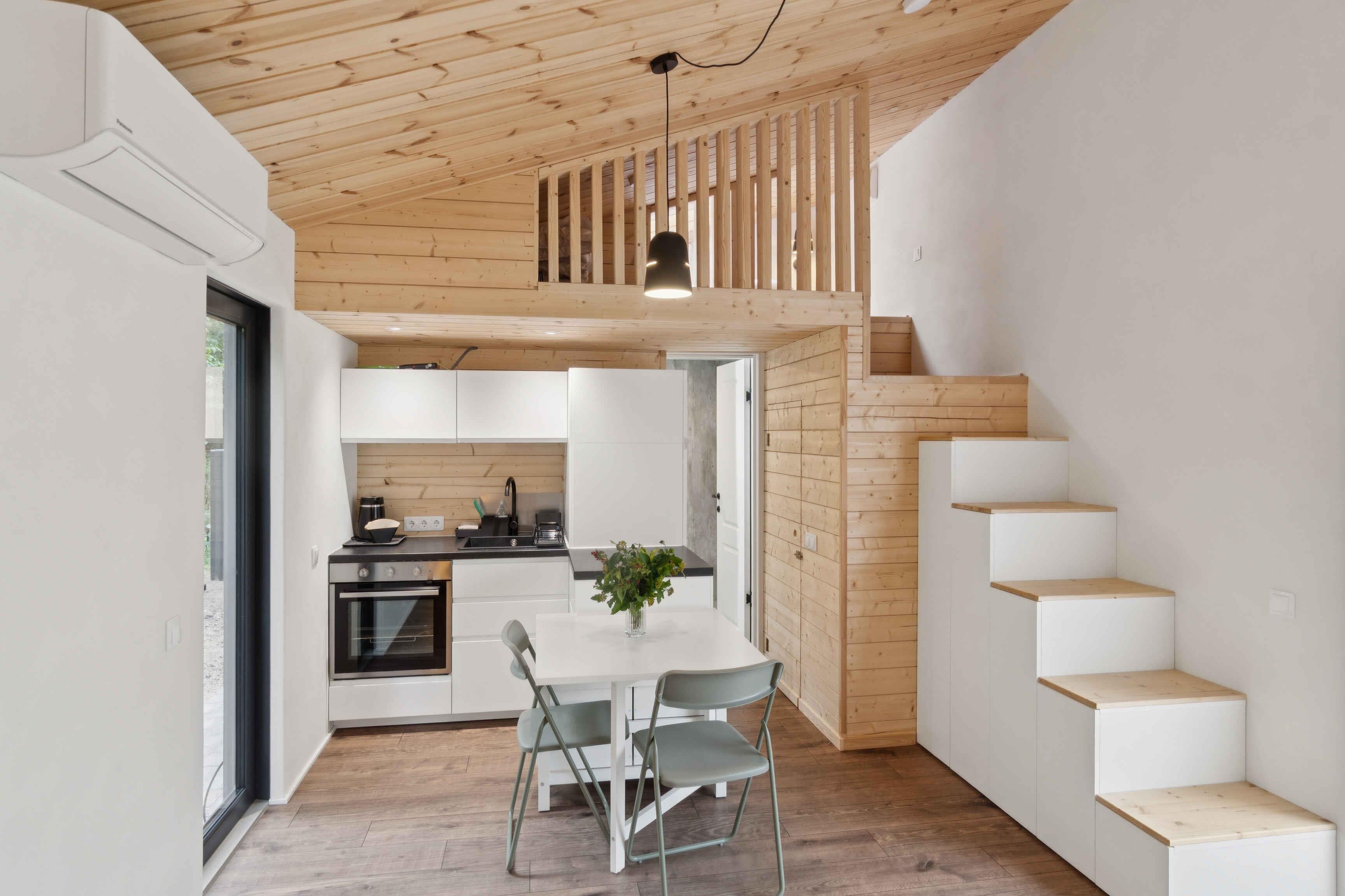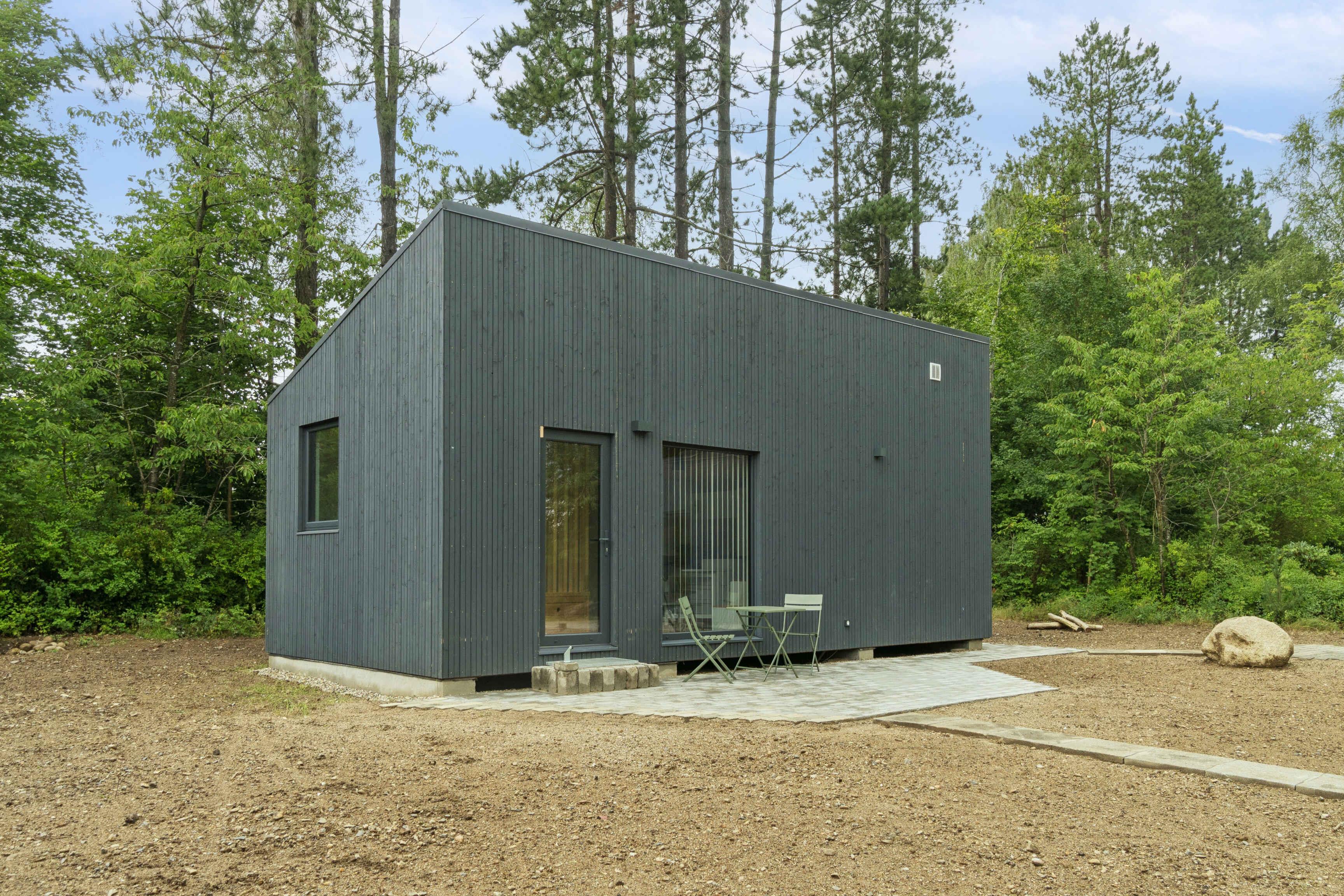 Modernes Tiny House auf Djursland mit Panoramablick, ideal für Naturfreunde und aktive Erholung nahe Wasser und Mols Bjerge.