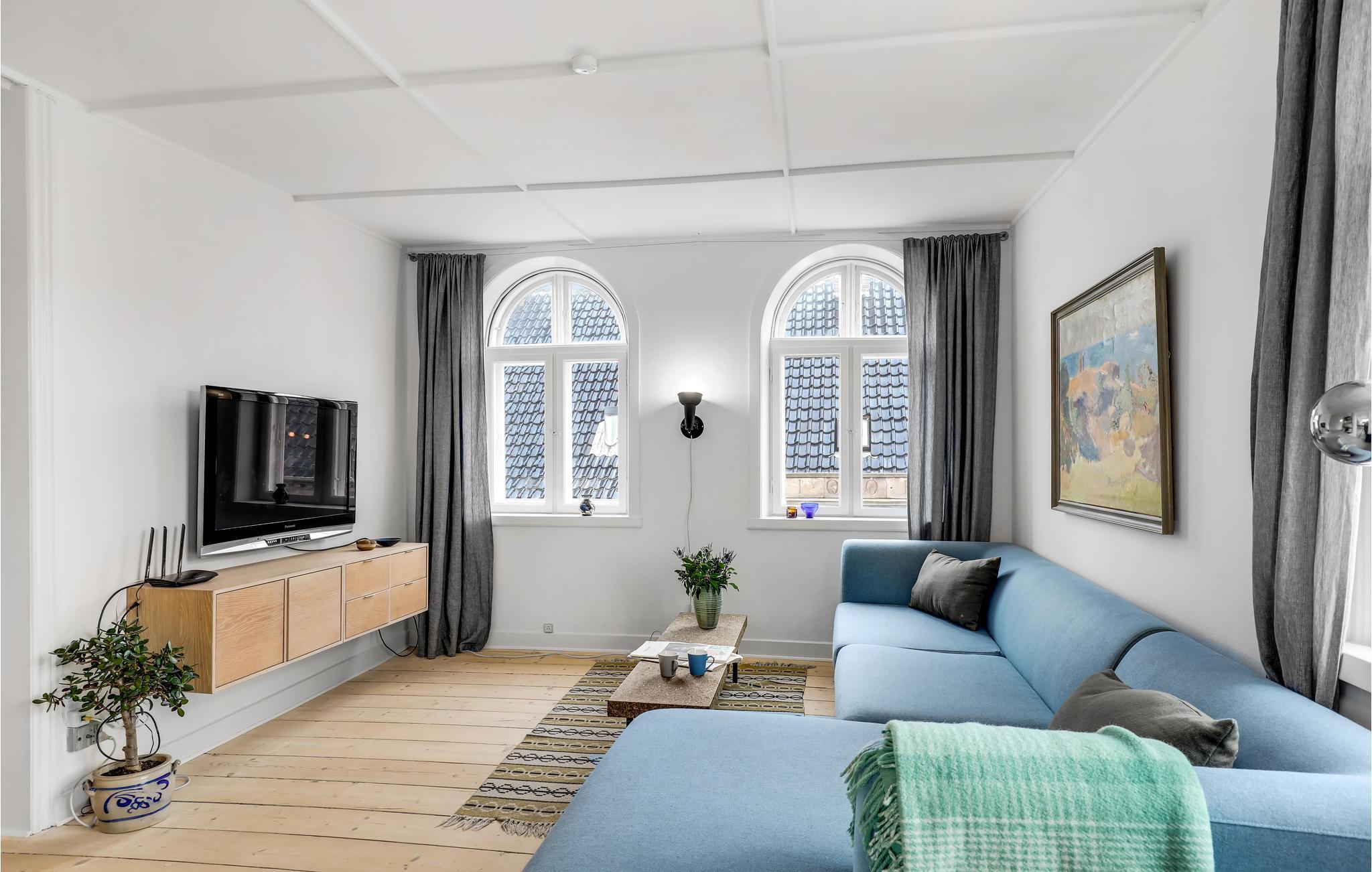 Willkommen in Ihrer stilvollen und luxuriösen Wohnung, die in einem charmanten, alten Gebäude von Rønne gelegen ist. Hier können Sie sich auf exklusive Einrichtungslösungen und eine wunderschöne Terrasse für sonnige Tage freuen. Lehnen Sie sich zurück im stimmungsvollen Wohnzimmer und schauen Sie einen guten Film, wenn Sie nach einem langen Tag voller Erlebnisse nach Hause kommen. Die Wohnung bietet Platz für eine Familie oder mehrere befreundete Paare, die Rønne und das Beste von Bornholm genießen möchten.