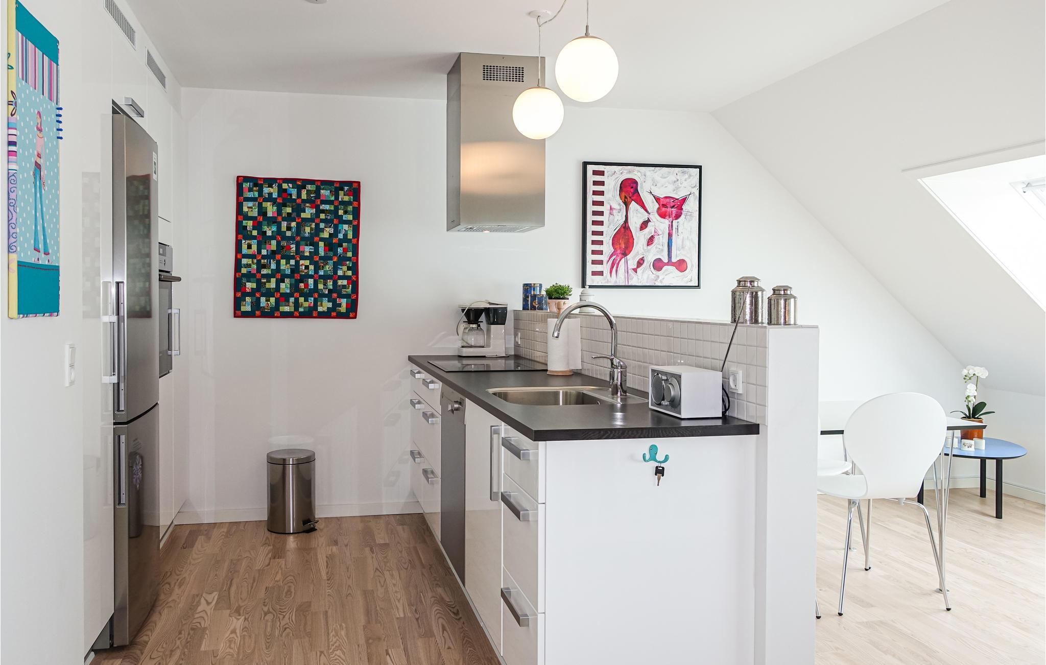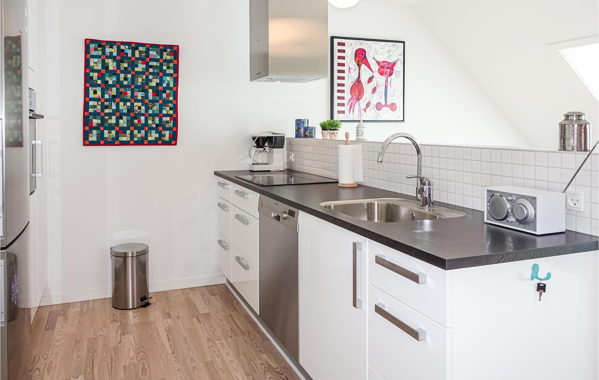 Der Komplex, der 6 ruhige Wohnungen beherbergt, liegt zentral in Rønne, direkt bei einem kleinen See und nur 1,3 km von einem großen, kinderfreundlichen Sandstrand entfernt, an dem Sie viele schöne Stunden beim Schwimmen und Sonnenbaden verbringen können. Die Wohnung besteht aus einem hellen, freundlichen Wohnzimmer mit TV, Radio und Ausblick auf den idyllischen See, einer offenen, gut ausgestatteten Küche mit u. A. Geschirrspüler, einem schönen Badezimmer mit Waschmaschine, Trockner und Fußbodenheizung und zwei bequemen Schlafzimmern. Sie haben Zugang zu einem Garten und einer schönen, sonnigen Gemeinschaftsterrasse mit lauschigen Gartenmöbeln und einem Grill, wo köstliche Urlaubsmahlzeiten zubereitet werden können. In der Wohnung gibt es kostenloses Internet.