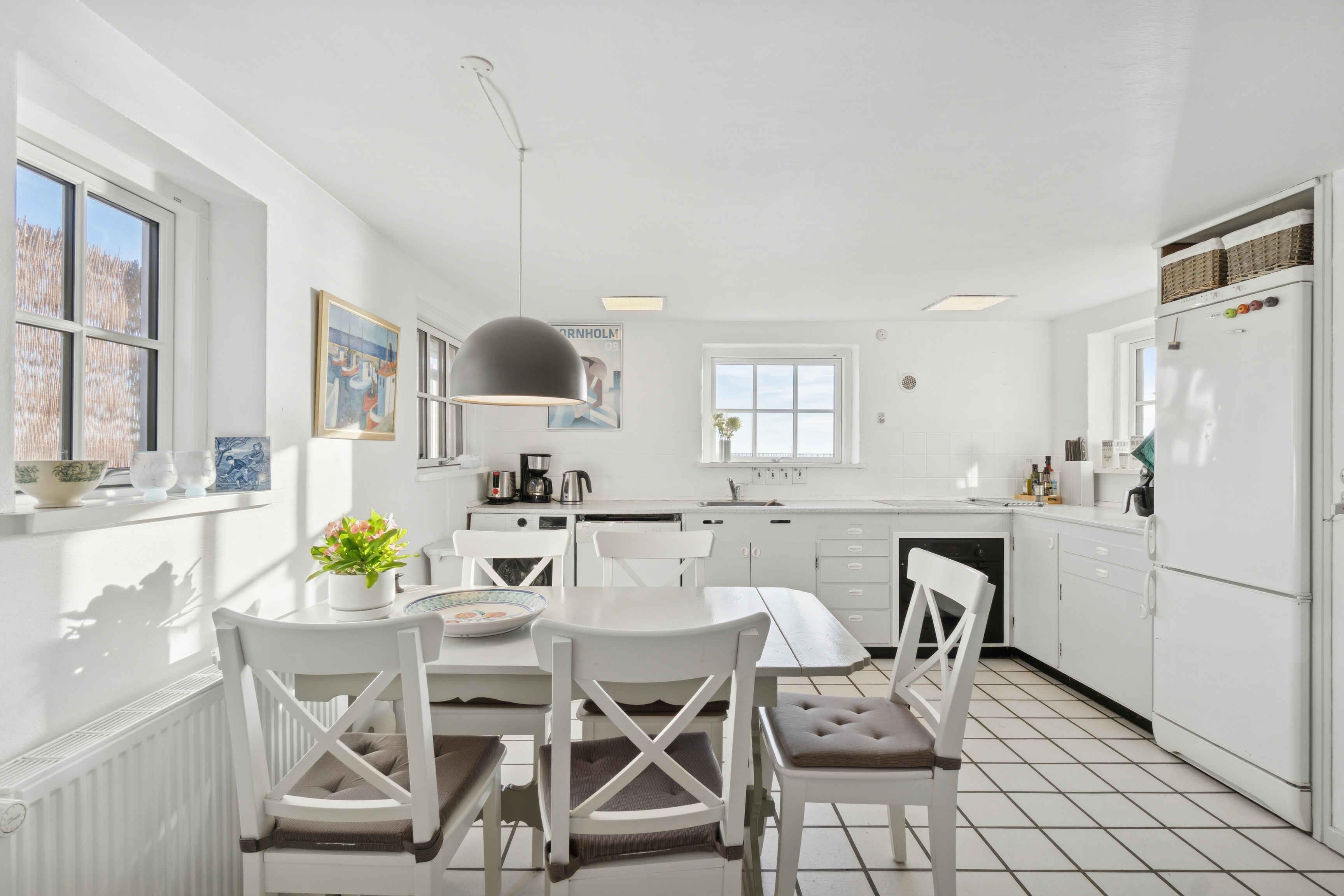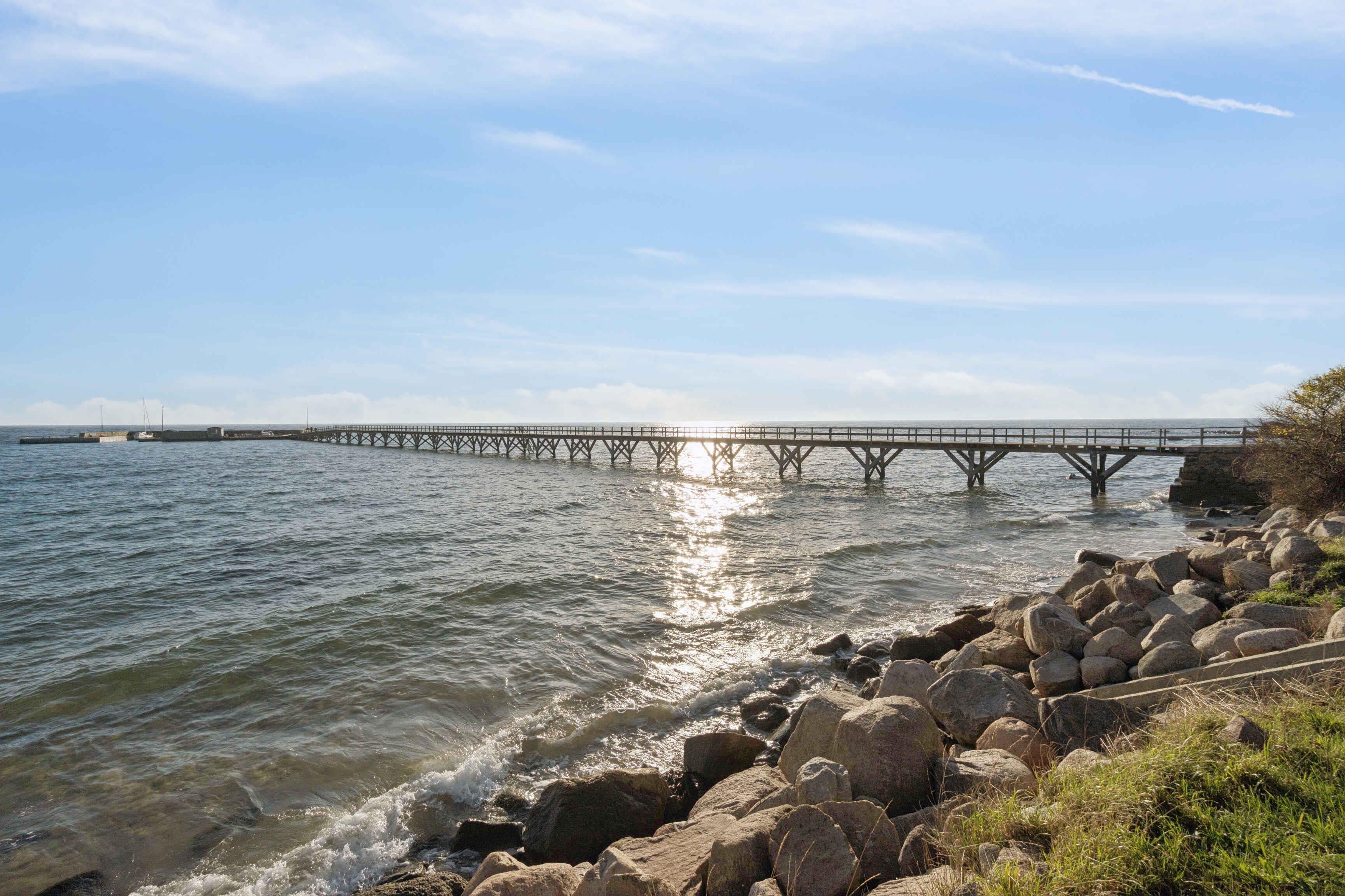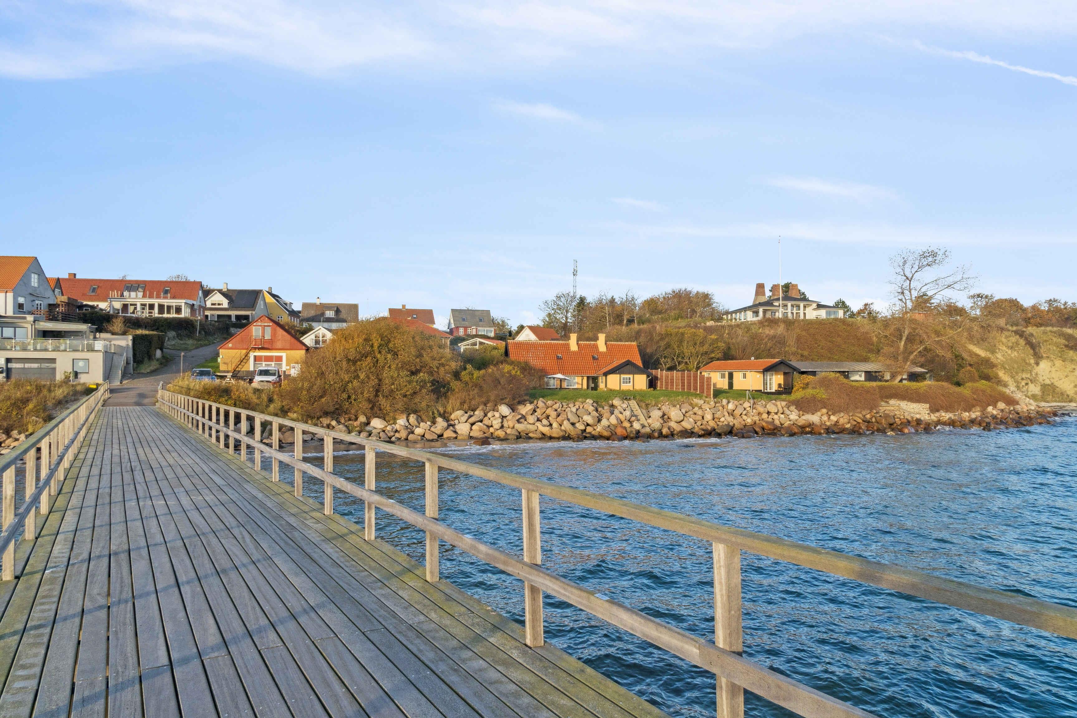 Das Brohuset ist ein großzügiges Ferienhaus mit 120 m², drei Schlafzimmern und fünf Schlafplätzen. Die direkte Lage am Meer schafft eine ruhige Atmosphäre, in der das Rauschen der Wellen zum natürlichen Teil des Aufenthalts wird. Hier verbinden sich Aussicht, Einfachheit und entspanntes Küstenleben. Die funktionale Einrichtung lädt nach einem Tag am Wasser zur Erholung ein. Große Fenster bringen Licht in die Räume und bieten Meerblick. Das Haus eignet sich für Familien und kleine Gruppen, die eine ruhige Basis suchen. Die Terrasse ermöglicht es, von morgens bis abends draußen zu sein. Hier kann man essen, lesen oder das Leben an der Küste beobachten. Die kurze Entfernung zum Strand erleichtert Baden und Spaziergänge. Die Umgebung bietet besondere Urlaubserlebnisse. Arnager ist ein kleines Fischerdorf mit authentischer Hafenatmosphäre. Die lange Holzbrücke führt zur kleinen Hafeninsel und eignet sich gut für einen ruhigen Spaziergang. Der Strand am Brückenfuß ist familienfreundlich und ideal zum Baden. Die Küste lädt zu Wanderungen und Radtouren durch die typische Landschaft Süd-Bornholms ein. In der Nähe liegen Arnager Gamle Røgeri, lokale Wege und eine lebendige maritime Umgebung. Das Brohuset ist ideal für alle, die einen Urlaub nahe dem Meer, der Natur und einem Ort mit lokalem Charakter suchen. Hier findet man den passenden Rahmen für Ruhe, Gemeinsamkeit und Erlebnisse.