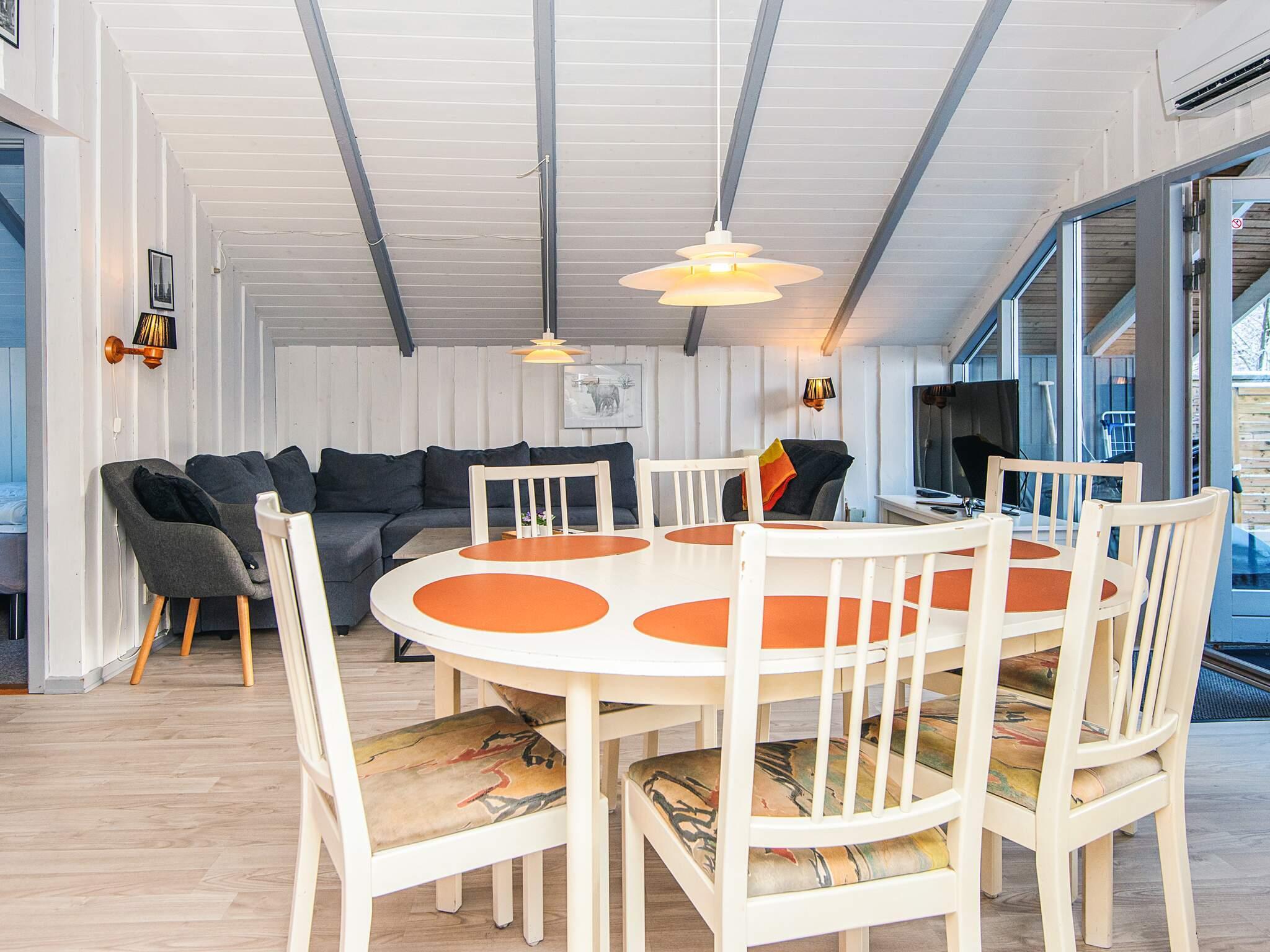 Das Ferienhaus wurde 2020 renoviert und wirkt modern und einladend. Es liegt auf einem großen Grundstück, ideal zum Spielen im Freien für Kinder und Erwachsene. Nur 50 m vom Haus entfernt finden Sie einen Spielplatz, auf dem auch die Möglichkeit zum Grillen besteht, was ihn ideal für gemütliche Sommerabende macht. Das Ferienhaus ist auch für Gäste mit Hunden geeignet, da die Terrasse problemlos komplett abgesperrt werden kann, damit der Hund sicher ist. Als zusätzlichen Bonus gibt es freien Zugang zum Thyregod Badeland/Schwimmhalle, das nur 4 km vom Haus entfernt liegt und die Möglichkeit für Spaß und Entspannung im Wasser bietet.