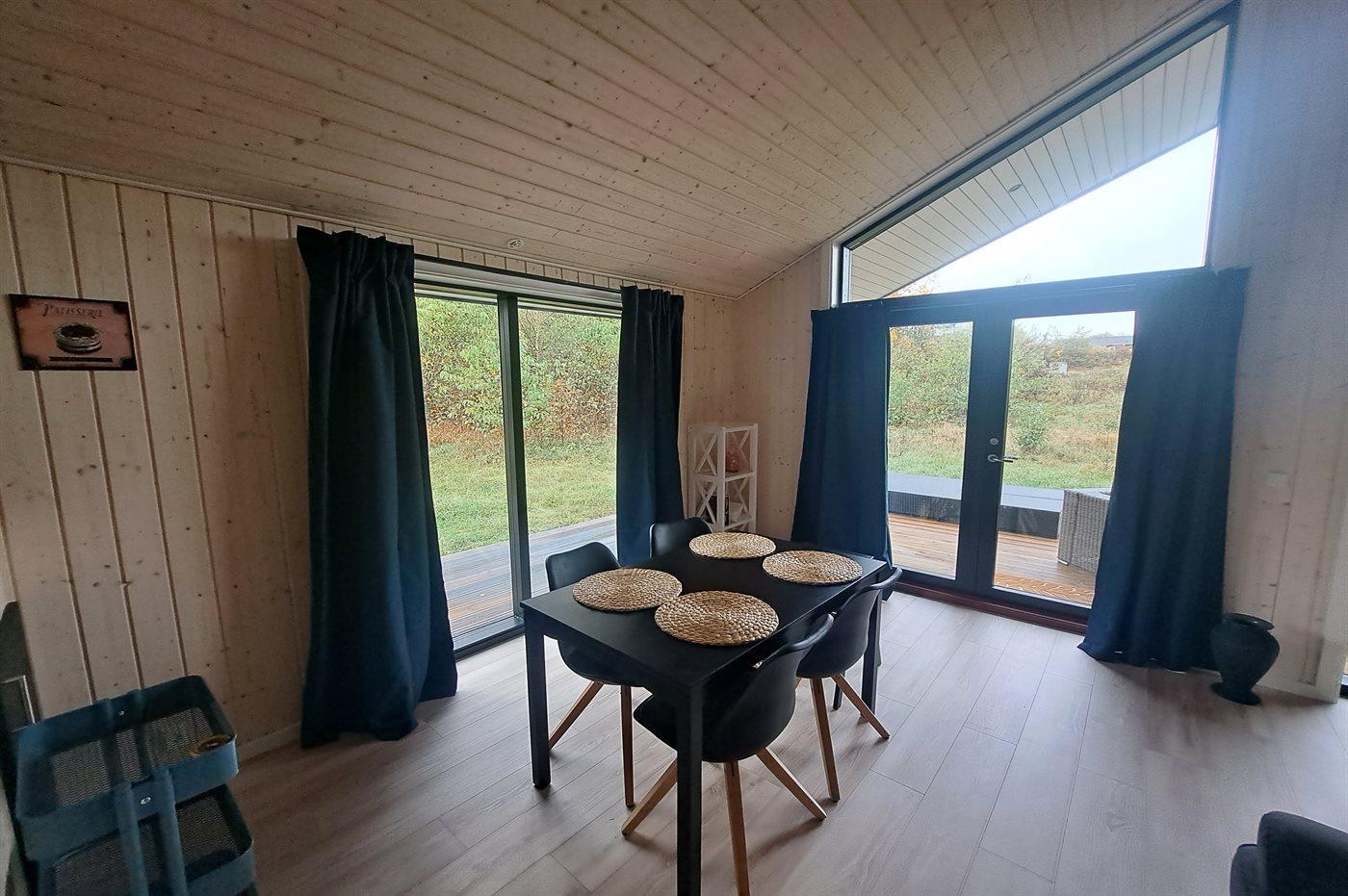 Im Inneren präsentiert sich das Ferienhaus hell und modern mit einem sehr guten Grundriss – genau wie man es von einem Neubau erwartet. Das geräumige Wohnzimmer mit offener Küche bildet den Mittelpunkt des Hauses, in dem die Familie gemütliche Stunden verbringen kann, egal wie das Wetter ist. Mit zwei Schlafzimmern eignet sich das Haus ideal für eine Familie mit Kindern oder ein Paar, das seinen Urlaub in naturschöner Umgebung verbringen möchte.
