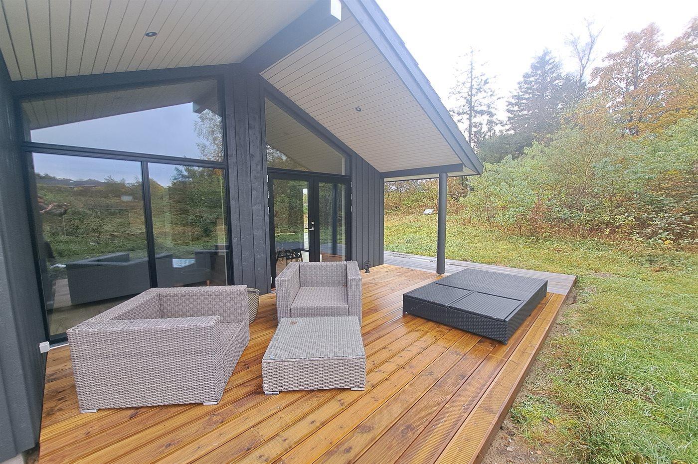 Modernes Ferienhaus am Rørbæk See mit schöner Natur und vielfältigen Freizeitmöglichkeiten.