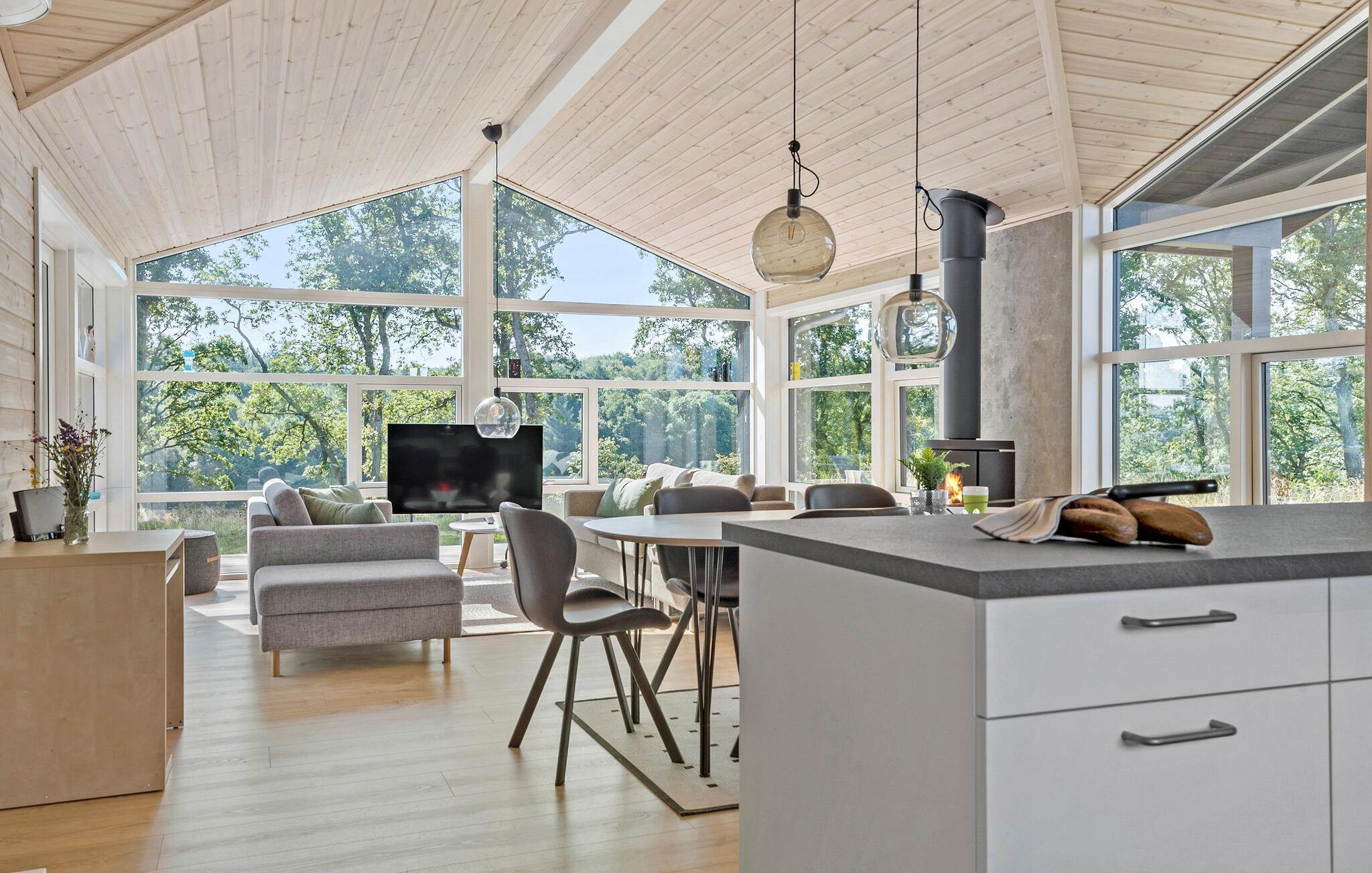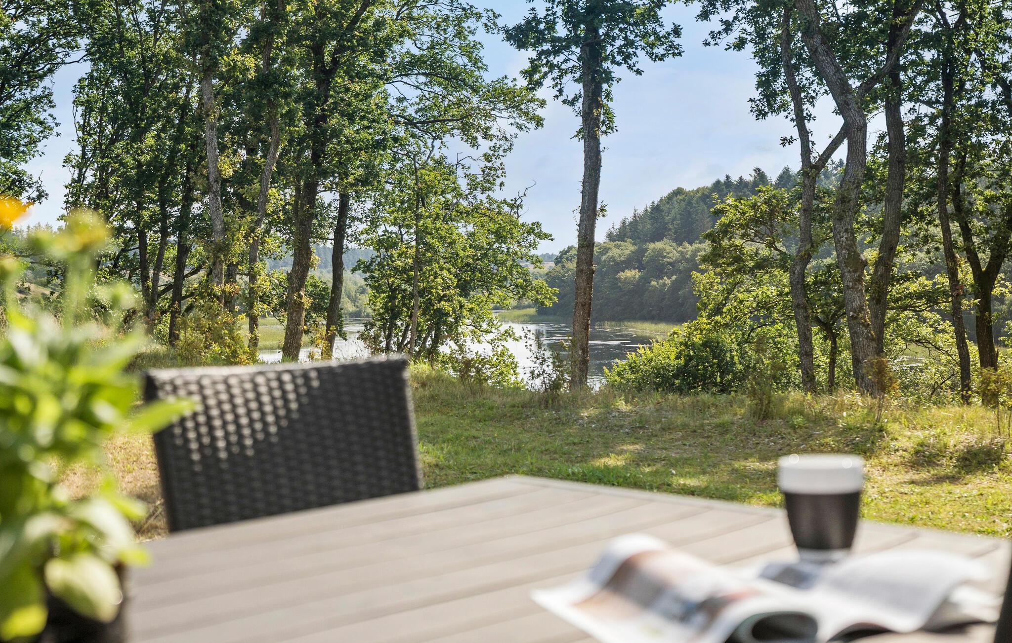 Modernes Ferienhaus am Rørbæk Sø mit Seeblick, Kamin und großer Terrasse für erholsame Tage in der Natur.