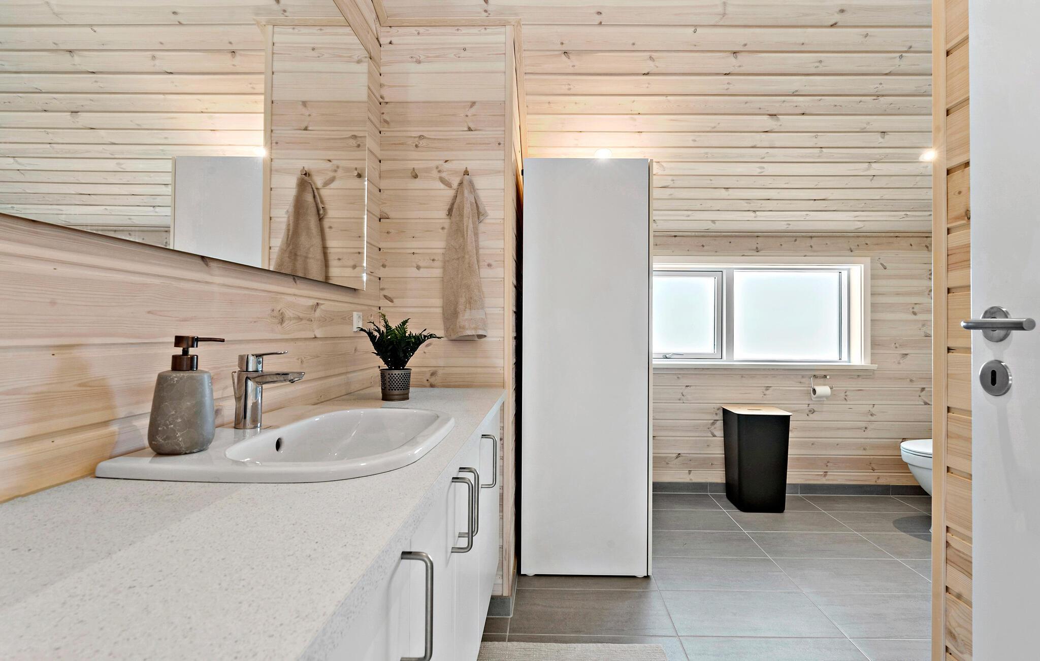 Starten Sie den Tag mit einem Frühstück in der modernen, voll ausgestatteten Küche, die alles bietet, was Sie für die Zubereitung Ihrer Lieblingsspeisen benötigen. Umgeben von der idyllischen Naturkulisse des Sees des Rørbæk Sø bietet dieses moderne Haus den idealen Rückzugsort für Ihren Urlaub. Die großzügigen Panoramafenster im Wohnbereich lassen viel Tageslicht herein und geben Ihnen einen traumhaften Blick auf den See. Lassen Sie den Alltag hinter sich und machen Sie es sich auf den bequemen Sofas gemütlich, während Sie die Aussicht genießen oder sich am Kaminofen wärmen.