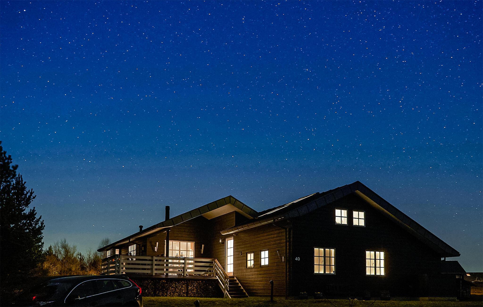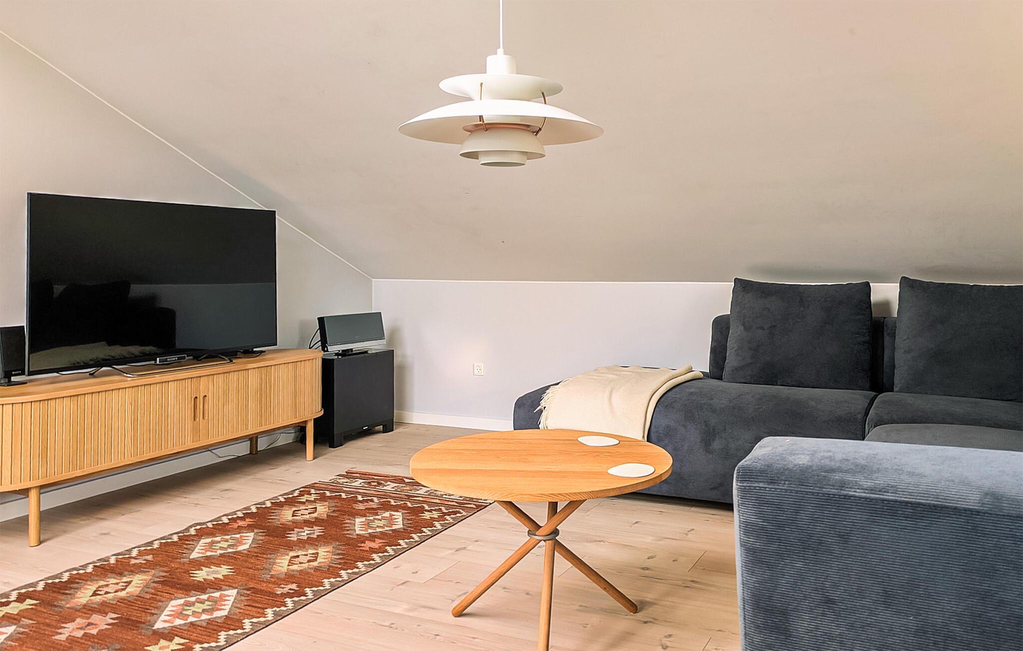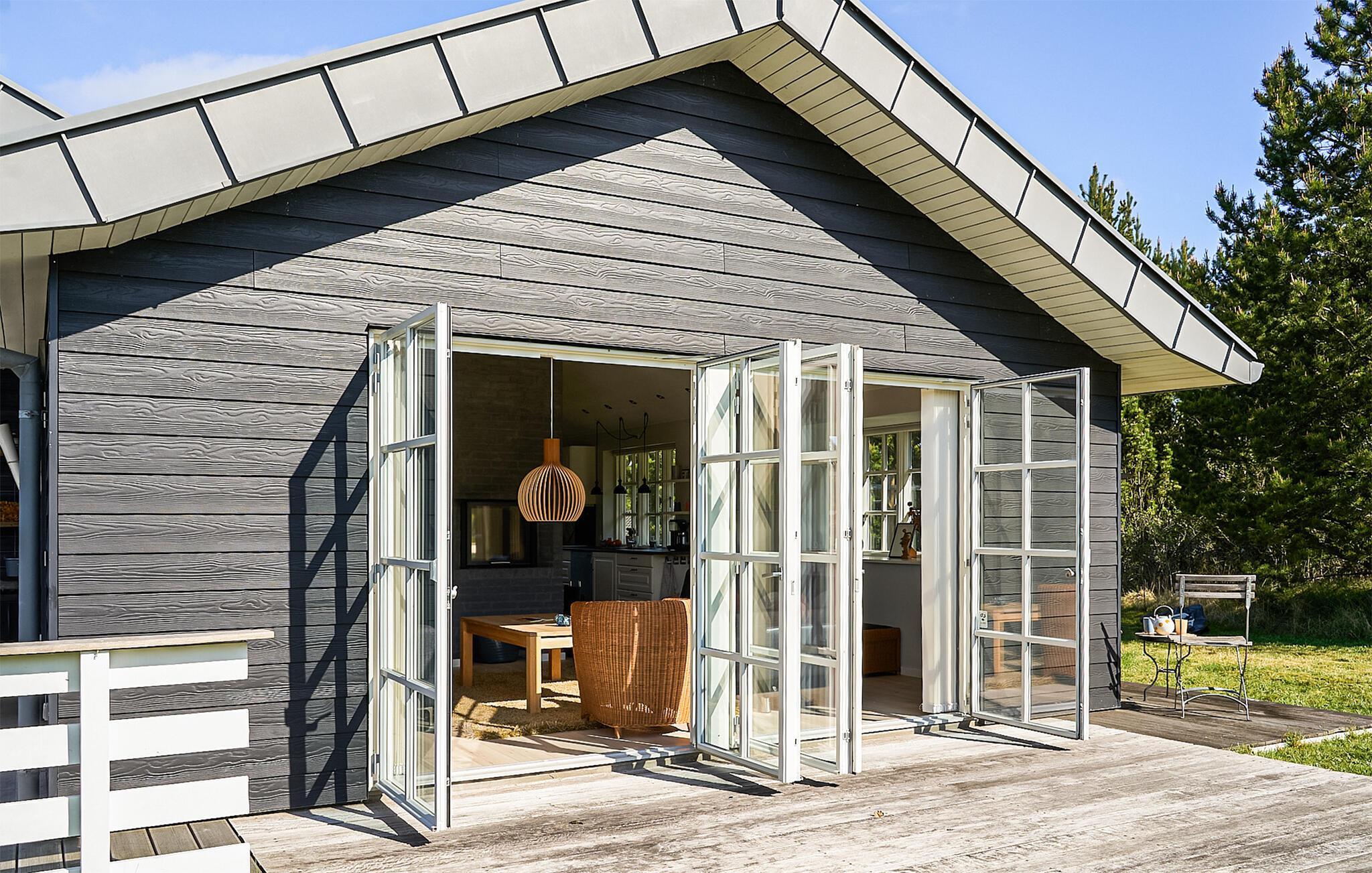 Modernes Ferienhaus mit Kamin und Terrasse am idyllischen Rørbæk Sø in Dänemark, ideal zum Entspannen und für Naturfreunde.