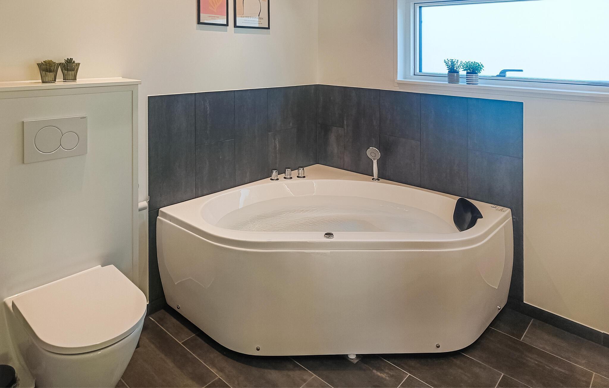 Modernes, lichtdurchflutetes Ferienhaus nahe dem idyllischen Rørbæk Sø mit Terrasse, Garten und Whirlpool für entspannte Urlaubstage.