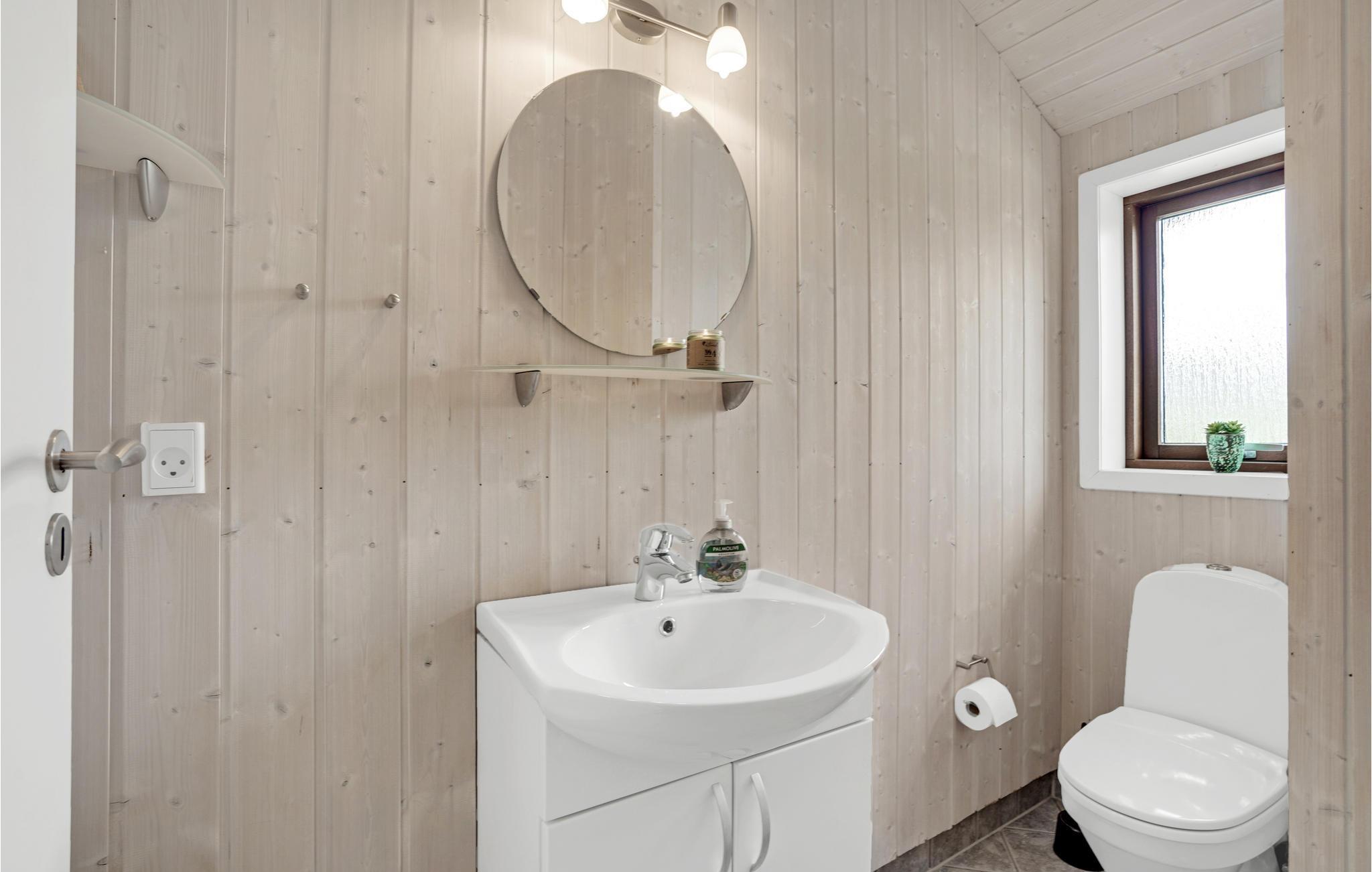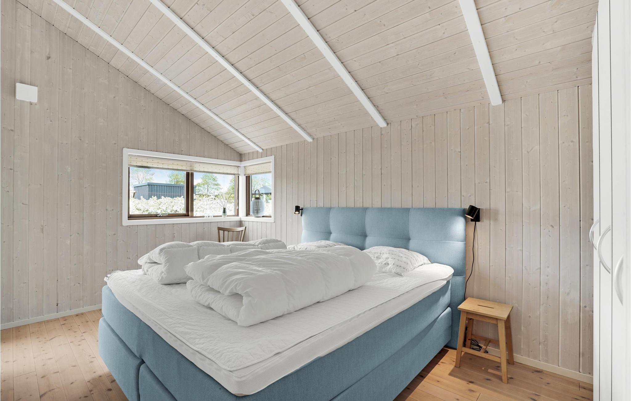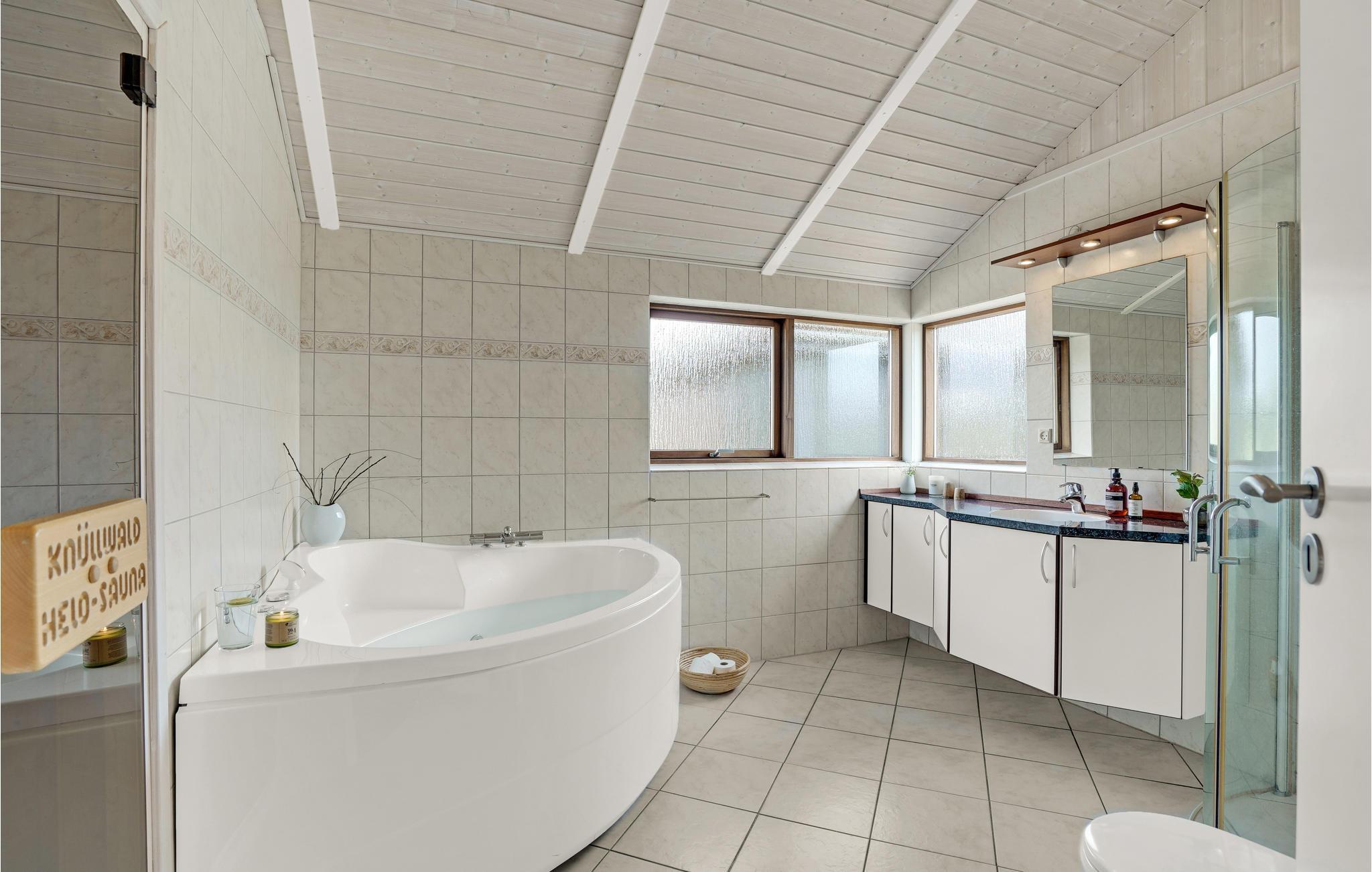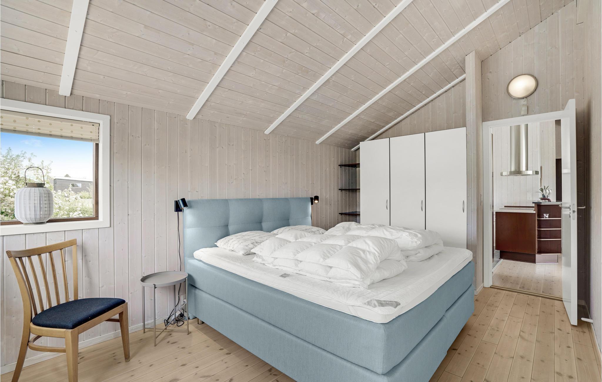 Geräumiges Ferienhaus aus hochwertigen Materialien. Das Haus verfügt über ein großes Wohnzimmer mit einer gemütlichen Sofagruppe und einem großen Essbereich, welche in offener Verbindung mit der Küche liegen. Im Wohnraum lassen ein großes Panoramafenste, das vom Boden bis zur Decke reicht, viel Licht herein. Die Küche ist komplett ausgestattet und bietet mit vielen Schränken und einem guten Tisch sehr gute Voraussetzungen für Köche, die ihrer Kreativität freien Lauf lassen möchten. Es gibt drei Schlafzimmer: ein großes Schlafzimmer mit einem Doppelbett und Platz für ein Kinderbett sowie Zugang zur Terrasse; ein weiteres schönes Schlafzimmer mit einem Doppelbett und ein Schlafzimmer mit einem Einzelbett. Letzteres werden große Teenager oder ein Großelternteil zu schätzen wissen. Es gibt ein schönes, großes Badezimmer mit Whirlpool und Sauna sowie ein Gäste-WC.