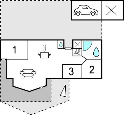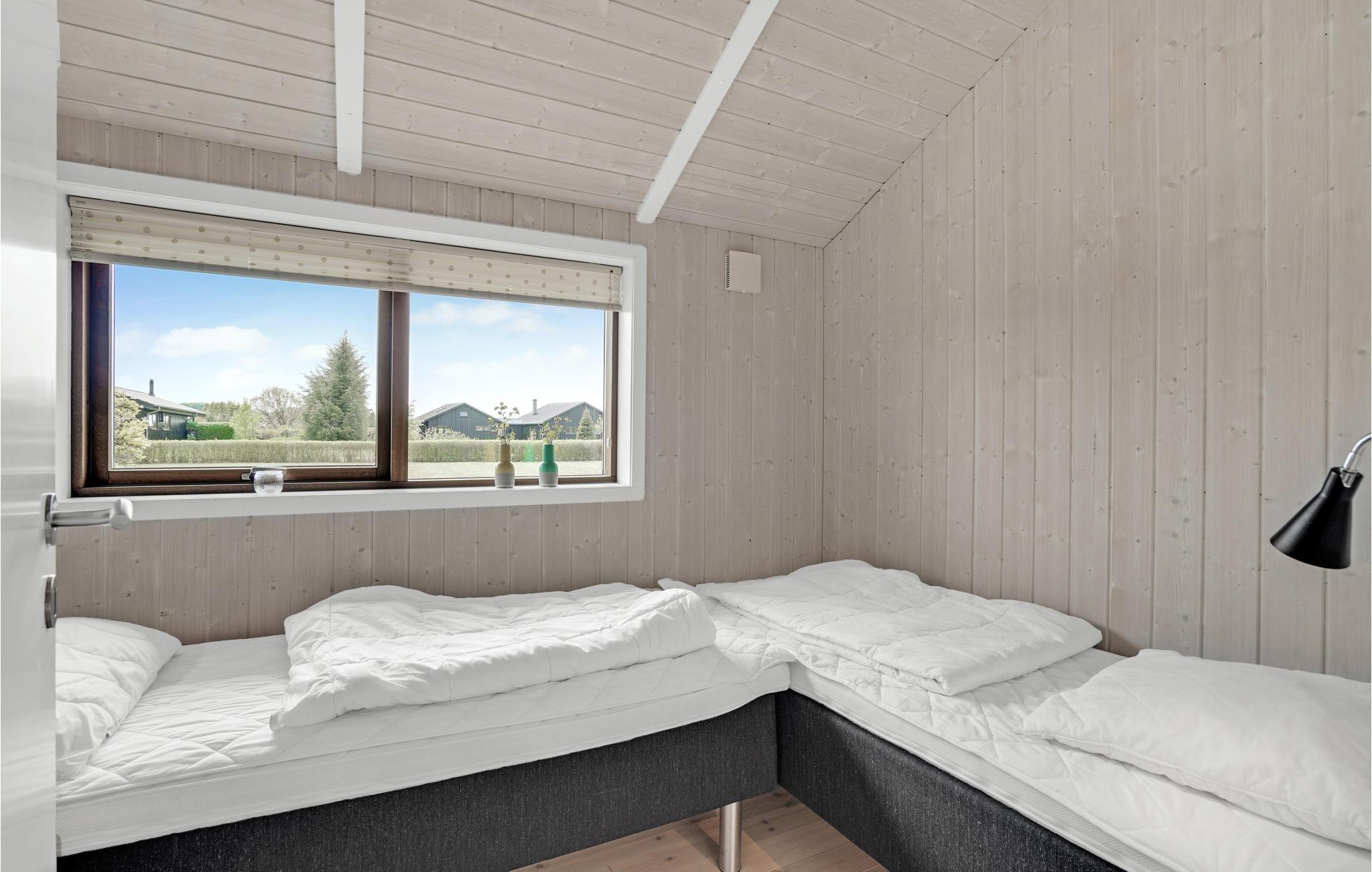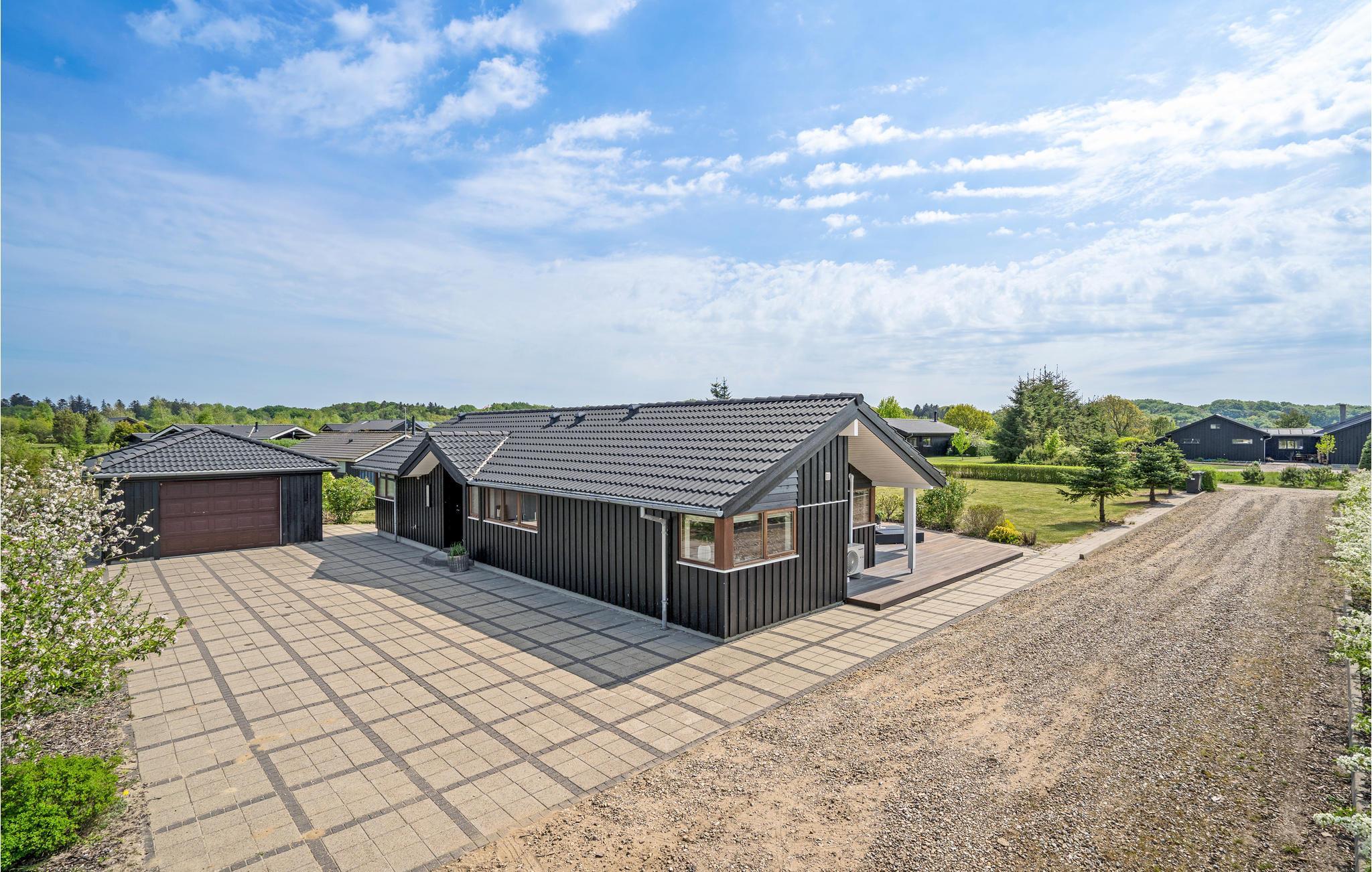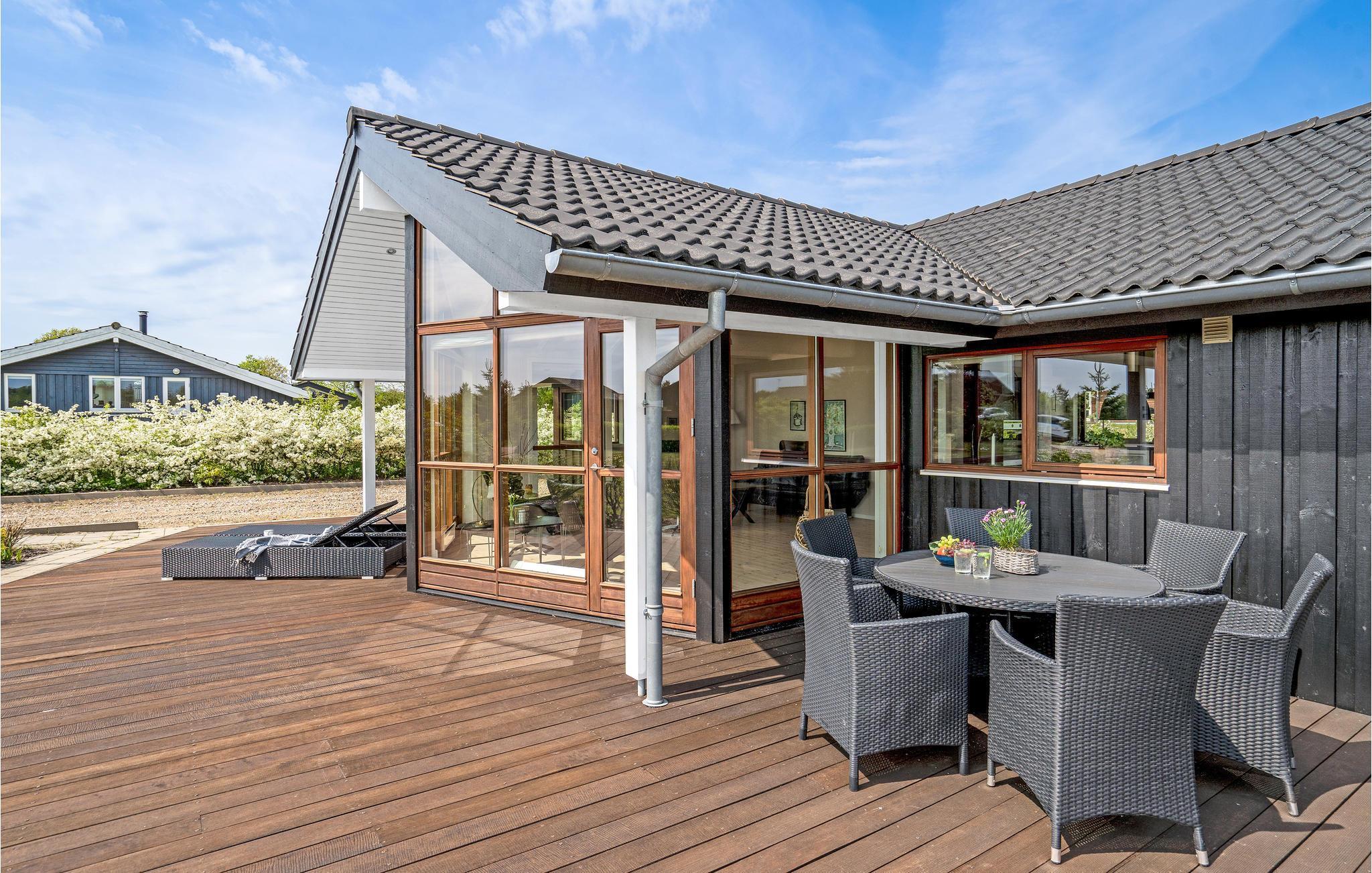 Geräumiges Ferienhaus aus hochwertigen Materialien. Das Haus verfügt über ein großes Wohnzimmer mit einer gemütlichen Sofagruppe und einem großen Essbereich, welche in offener Verbindung mit der Küche liegen. Im Wohnraum lassen ein großes Panoramafenste, das vom Boden bis zur Decke reicht, viel Licht herein. Die Küche ist komplett ausgestattet und bietet mit vielen Schränken und einem guten Tisch sehr gute Voraussetzungen für Köche, die ihrer Kreativität freien Lauf lassen möchten. Es gibt drei Schlafzimmer: ein großes Schlafzimmer mit einem Doppelbett und Platz für ein Kinderbett sowie Zugang zur Terrasse; ein weiteres schönes Schlafzimmer mit einem Doppelbett und ein Schlafzimmer mit einem Einzelbett. Letzteres werden große Teenager oder ein Großelternteil zu schätzen wissen. Es gibt ein schönes, großes Badezimmer mit Whirlpool und Sauna sowie ein Gäste-WC.