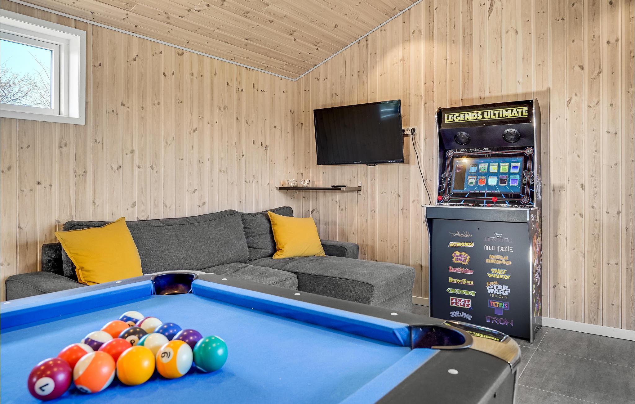 Wenn Sie sich ein sehr bequemes Anglerdomizil wünschen, haben Sie es mit diesem Haus gefunden. Im Inneren erwartet Sie skandinavisches Design mit klaren Linien und viel Behaglichkeit. Das Haus bietet 5 Schlafzimmer, 4 befinden sich im Ferienhaus und 1 im Anbau, wo es auch einen großen Aktivitätsraum mit Billard, einer Arcade-Maschine mit vielen tollen Videospielen und einem zusätzlichem Fernseher sowie ein WC mit Waschbecken gibt. Auch zum Entspannen eignet sich das Haus sehr gut. In einem Bad liegt die Sauna. Im Freien gibt es eine hölzerne Badetonne und eine Außendusche. Zu fischreichen Angelplätzen haben Sie nur ein paar Schritte und Ihren Fang können Sie bequem am Filetierplatz im Freien reinigen, außerdem gibt es einen Ofen zm Räuchern der Fische. Das Haus liegt in der Nähe von interessanten Freizeitangeboten, wie z. B. Legoland. Herning ist auch eine beliebte Messenstadt. Im See Rørbæk Sø können Sie in einem Teil angeln, dort können Sie dann auch die Angellizenz erwerben. Der Gebrauch eines Ruderbootes ist auf Perioden begrenzt.