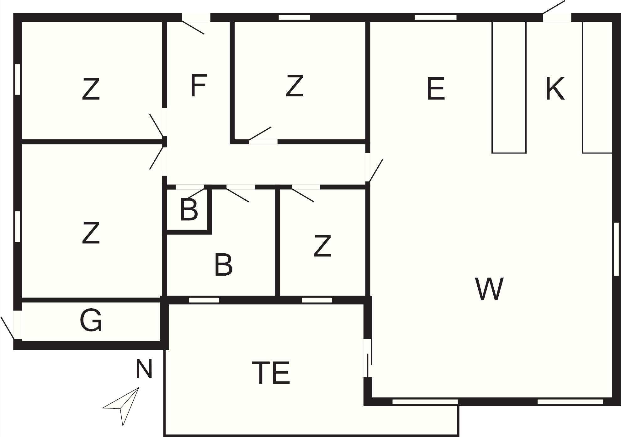 Das Ferienhaus eignet sich durch seine Einrichtung prima für Familien mit Kindern. Es stehen drei Schlafzimmer mit jeweils einem Doppelbett sowie ein viertes Zimmer mit Etagenbett zur Verfügung. Im geräumigen, hellen Wohnraum mit Holzofen und Wärmepumpe sind Küche und Essecke offen intergriert. WLAN ist vorhanden.