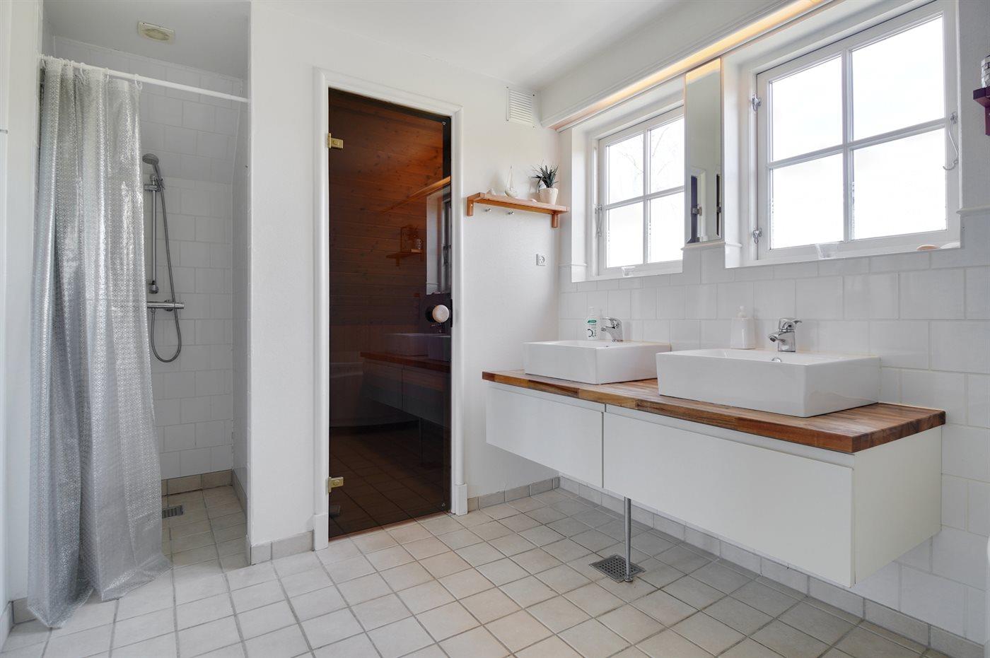 Es gibt 2 Badezimmer mit Duschnische und 2 Toiletten. Fußbodenheizung in 1 Badezimmer. Es steht eine Sauna zur Verfügung in der Sie sich so richtig entspannen können.
