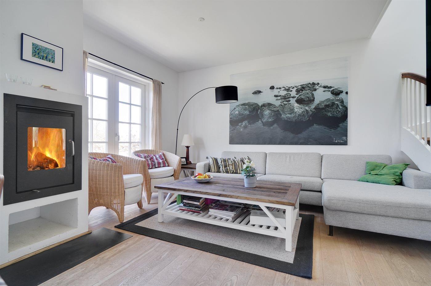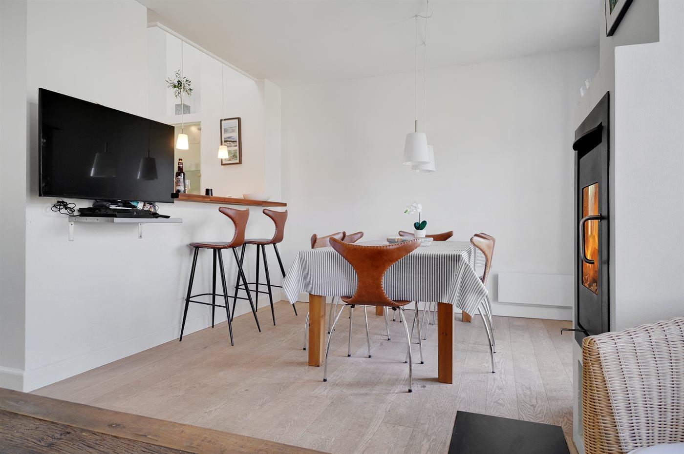 . Die Entfernung zum Meer beträgt 1500 m. Die Entfernung zum Fjord beträgt 1000 m. Die nächste Einkaufsmöglichkeit liegt 500 m entfernt. In einem Abstand von 9900 m gibt es einen Golfplatz. Es steht ein 23 m² Terrassenareal zur Verfügung. Außerdem gibt es 2 m² überdachte Terrasse.Balkon im Obergeschoss. Geräteraum. Schaukel. Petanque. Parkplatz auf dem Grundstück.