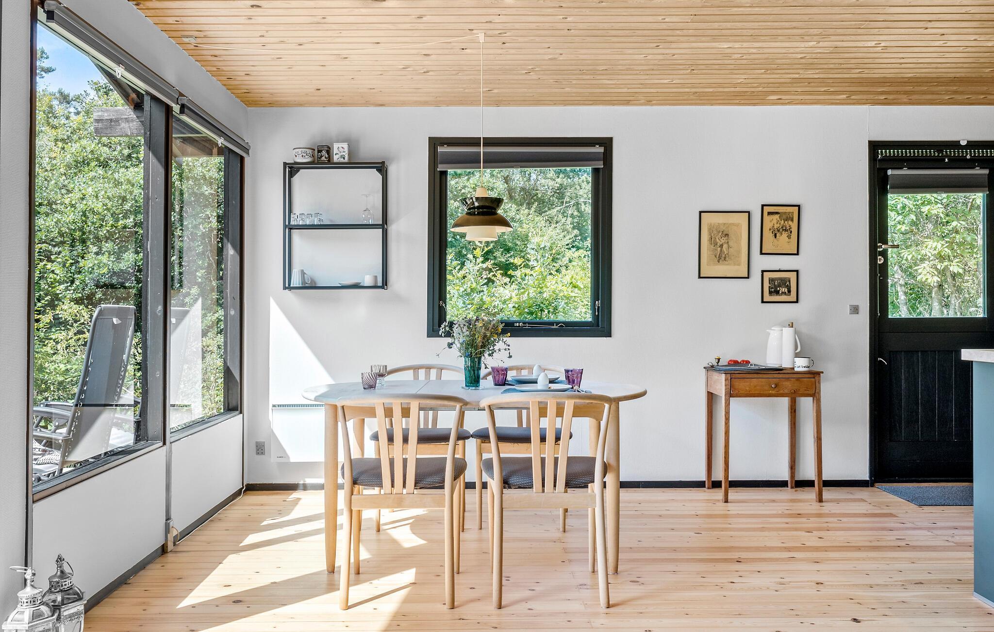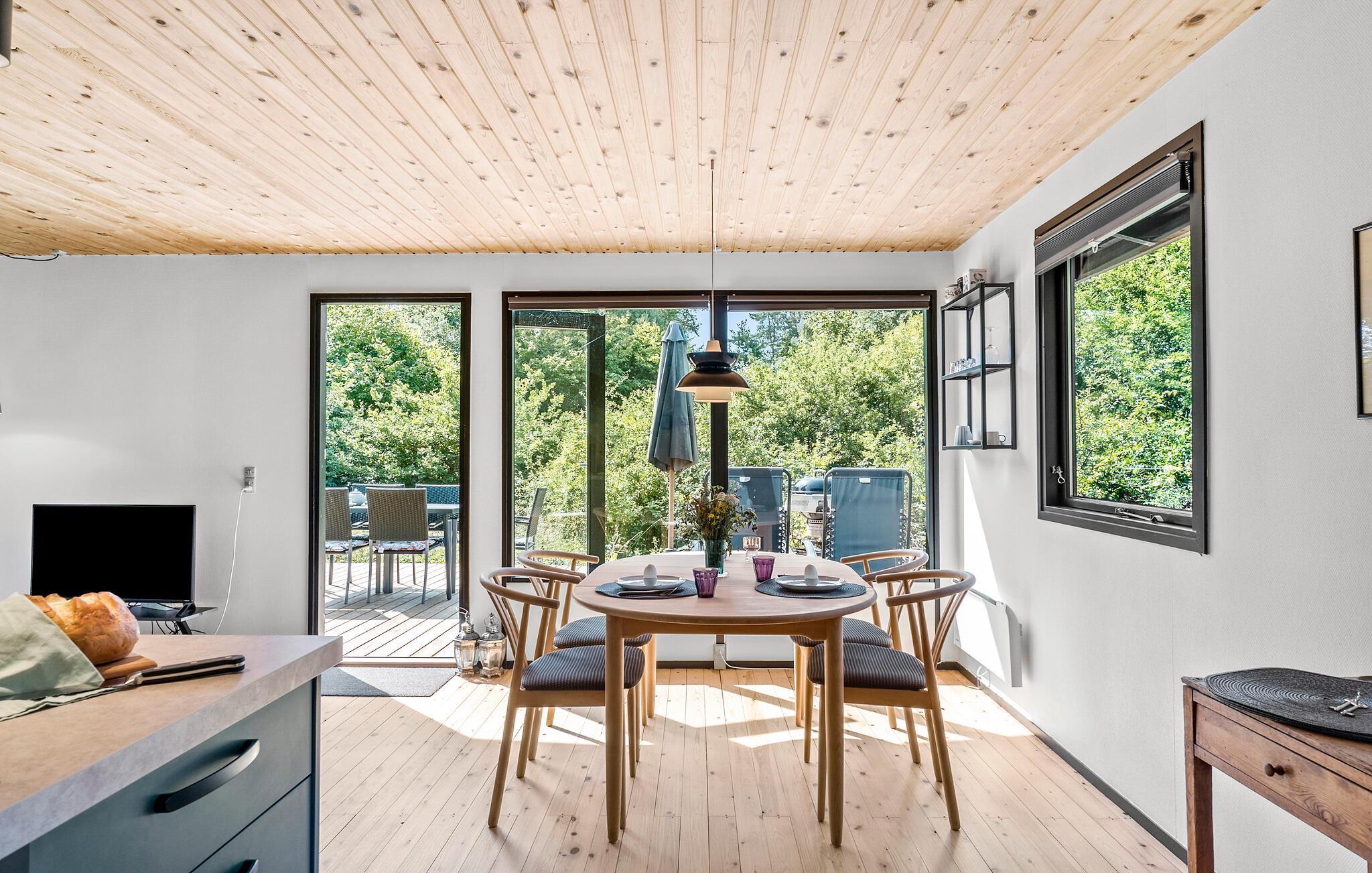 Die großzügige Holzterrasse lädt Sie zu sonnigen Stunden in dem bewaldeten Ferienhausgebiet ein. Ein kurzer Spaziergang führt Sie zu den Stränden des Isefjords, wo Sie das Meeresrauschen und die frische Luft genießen können.