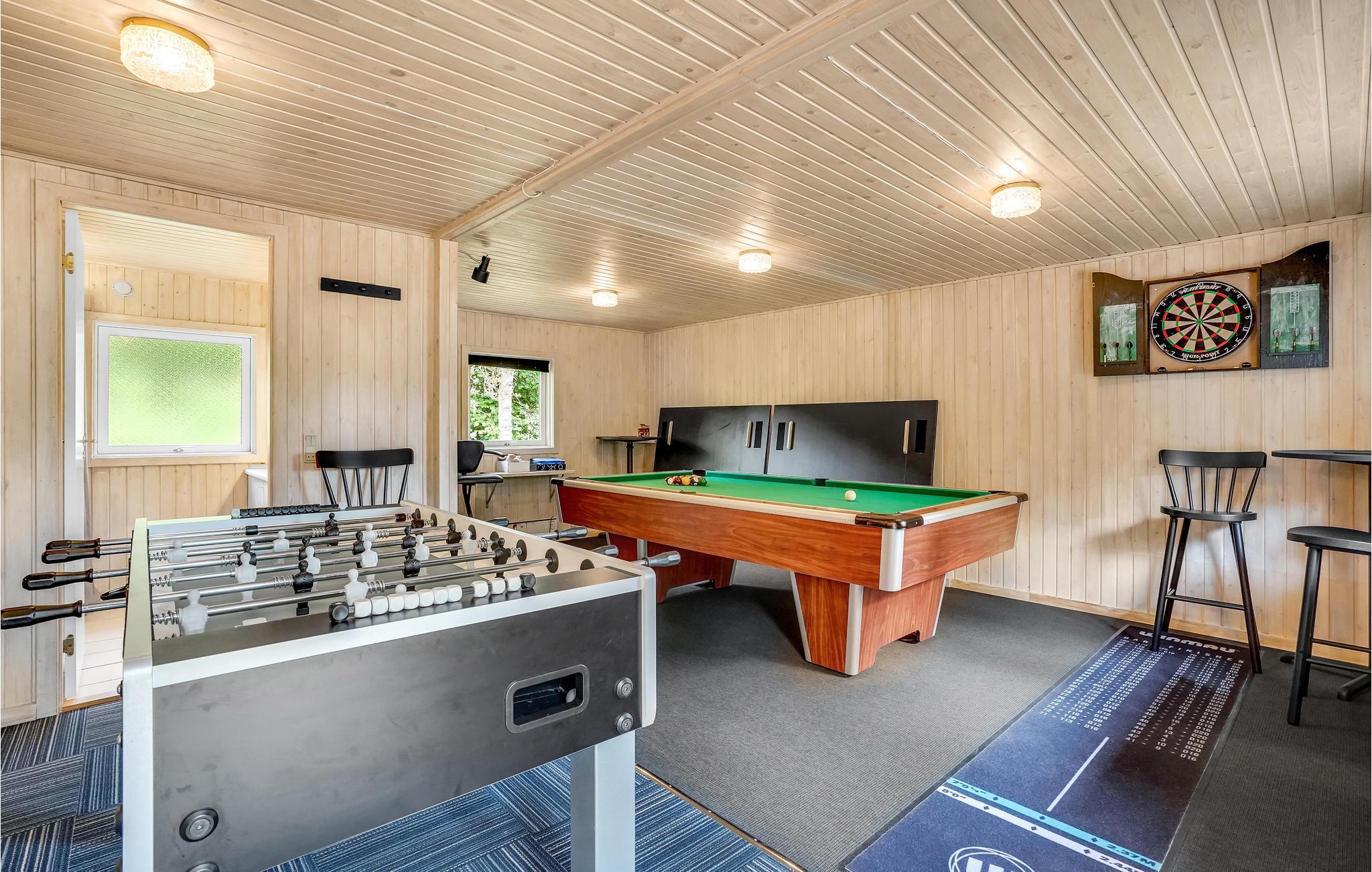 Ihre Unterkunft in Rørvig besteht aus zwei separaten Häusern, ideal für zwei befreundete Familien. Es erwartet Sie alles, was Sie für Ihren Komfort und Ihre Entspannung benötigen. Genießen Sie gesellige Stunden im großzügigen Aktivitätsraum mit Billard, Darts und Tischfußball. Kochen Sie in der modernen Küche, die bestens ausgestattet ist, und nehmen Sie Ihre Mahlzeiten am langen, eleganten Esstisch oder auf der sonnigen Terrasse ein. Entspannen Sie im Finnischen Holzbad im Garten oder machen Sie es sich in der gemütlichen Sitzecke mit einem Buch bequem.