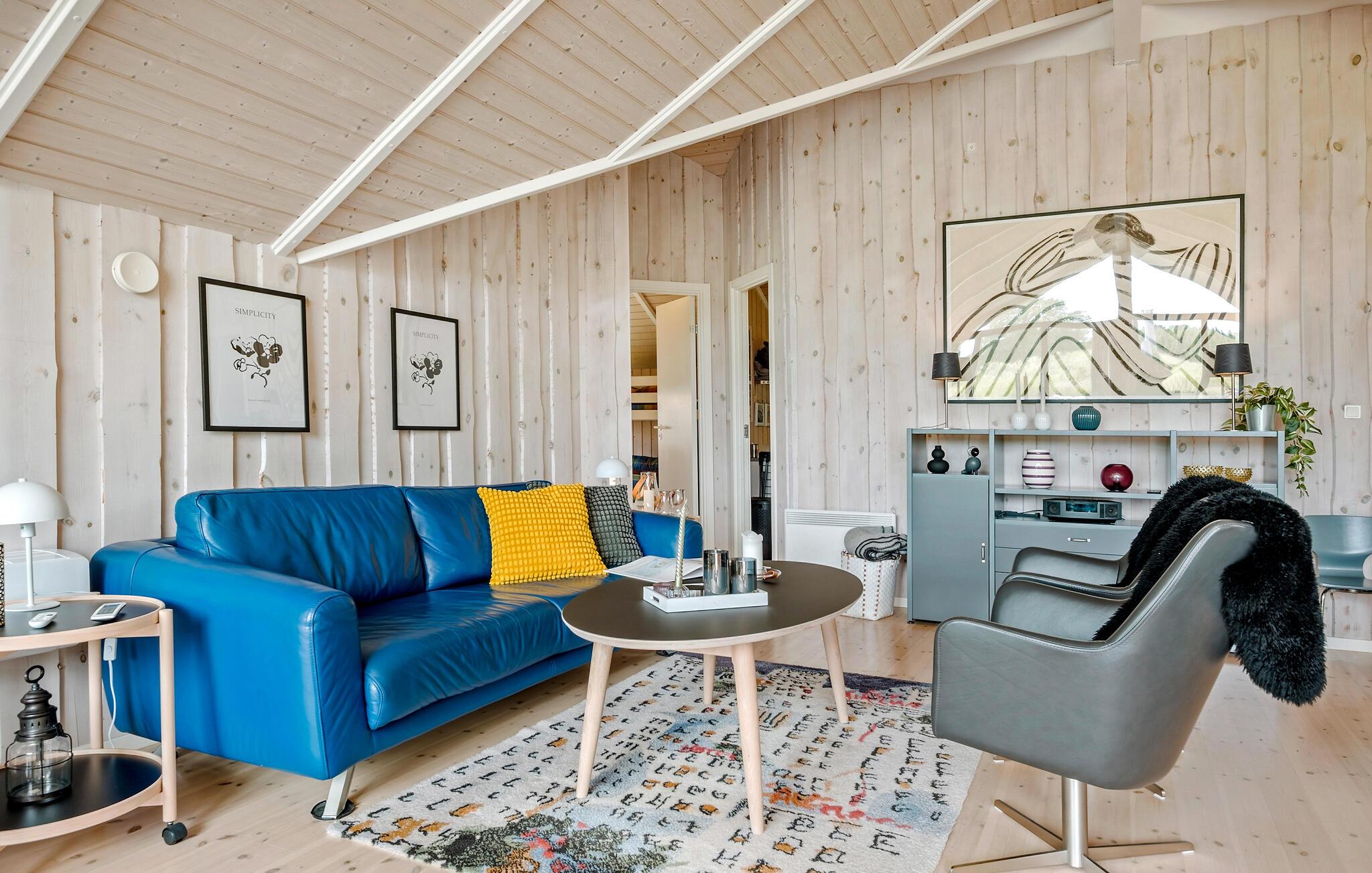 Das Haus hart eine offene Küche, die zum Wohnzimmer mit Holzofen übergeht. Es gibt 3 Schlafzimmer, eine Alkove in der Stube und ein Badezimmer mit Dusche.
